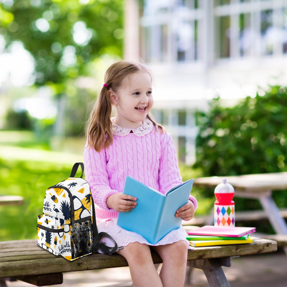 <p><b>Age</b>: 3-8 years old</p><p><b>Perfect Size</b>: 10(L)x4(w)x12(H) inches/25.4cm(L)x10.2cm(W)x30.5cm(H)</p><p> </p><p><b>Features</b></p><p>1 main zipper compartment have 1 inner pockets allows to reasonable organizer the kids stuff </p><p>1 front zipper pocket can hold the snacks or school supplies </p><p>2 side mesh pockets fit for holding milk and water bottle </p><p>Adjustable padded strap, comfortable and breathable, easy to carry </p><p> </p><p><b>Multifunctional Backpack</b></p><p>1.The backpack designed with multi stylish pattern for girls,boys,child,teens daily life.</p><p>2.Perfect backbag for daycare, infant program, toddler program, kindergarten, preschool.</p><p>3.Backpack Awesome for picnic, family party,day-care center activity and travel, etc.</p><p> </p><p><b>Service</b></p><p>If you are satisfied with our service, please leave us a positive comment, your support is our greatest motivation.</p><p>If you have any other requirement, please tell us by e-mail when you order or receive this item. We will reply within 24 hours.</p>