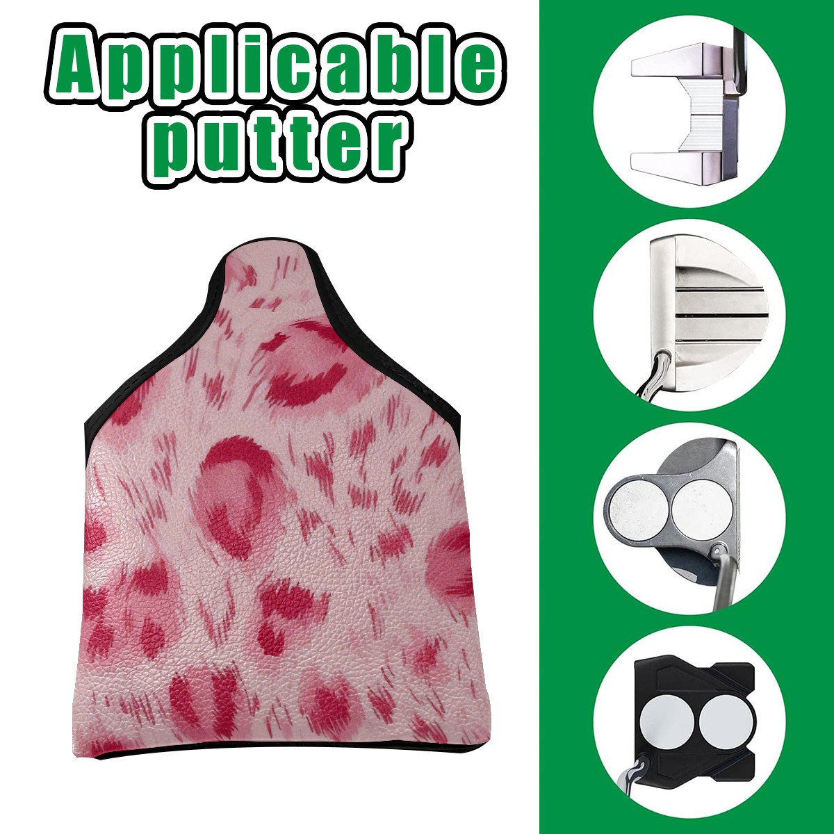 Golf Mallet Putter Cover Premium Leather Golf Putter Head Cover with Magnetic Closure Golf Cover for Men and Women Pink Leopard Print
