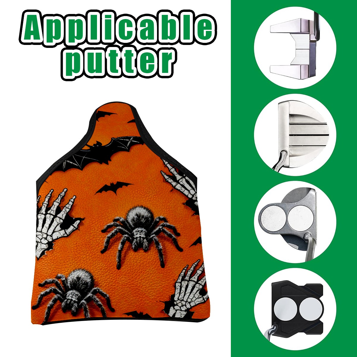 Golf Mallet Putter Cover Premium Leather Golf Putter Head Cover with Magnetic Closure Golf Cover for Men and Women Skeleton Bat