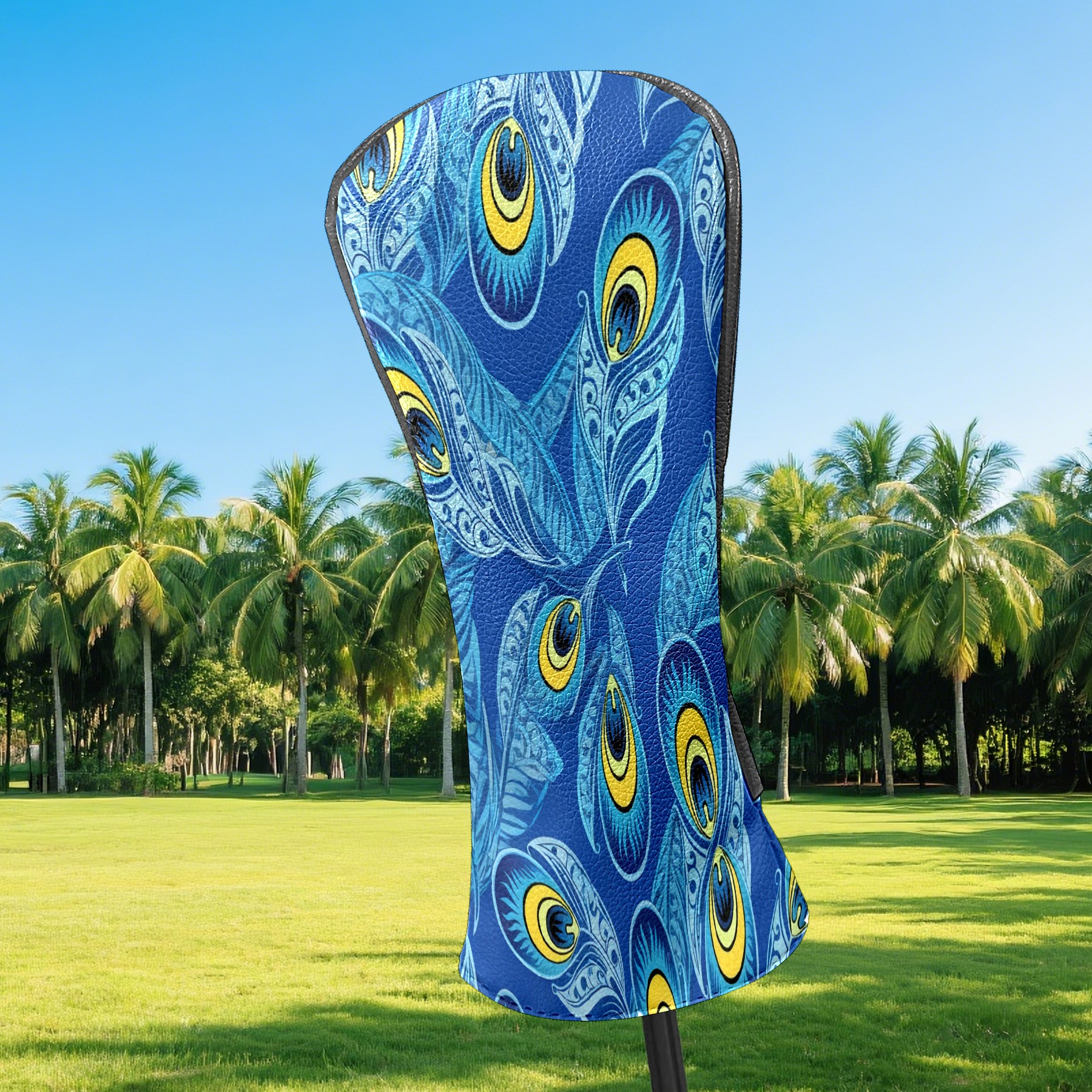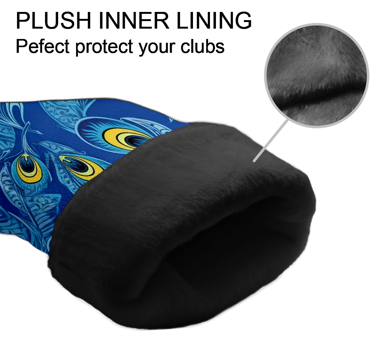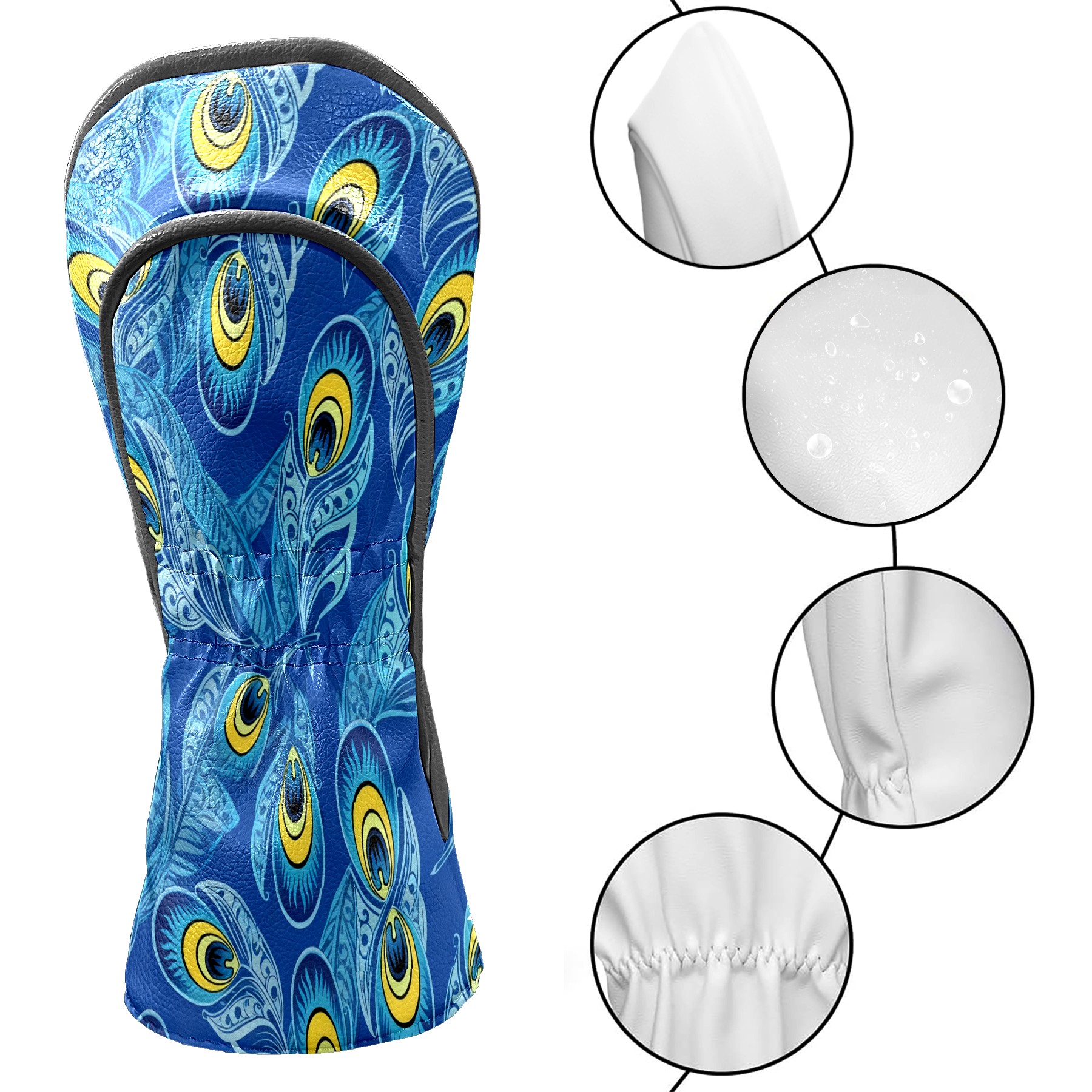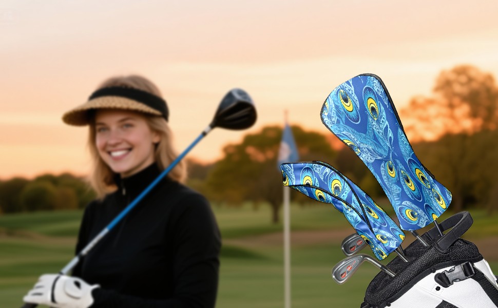Golf Club Covers PU Leather Waterproof Golf Club Head Covers for Fairway Woods and Hybrids Blue Peacock Feathers Unisex Suitable for Most Brands