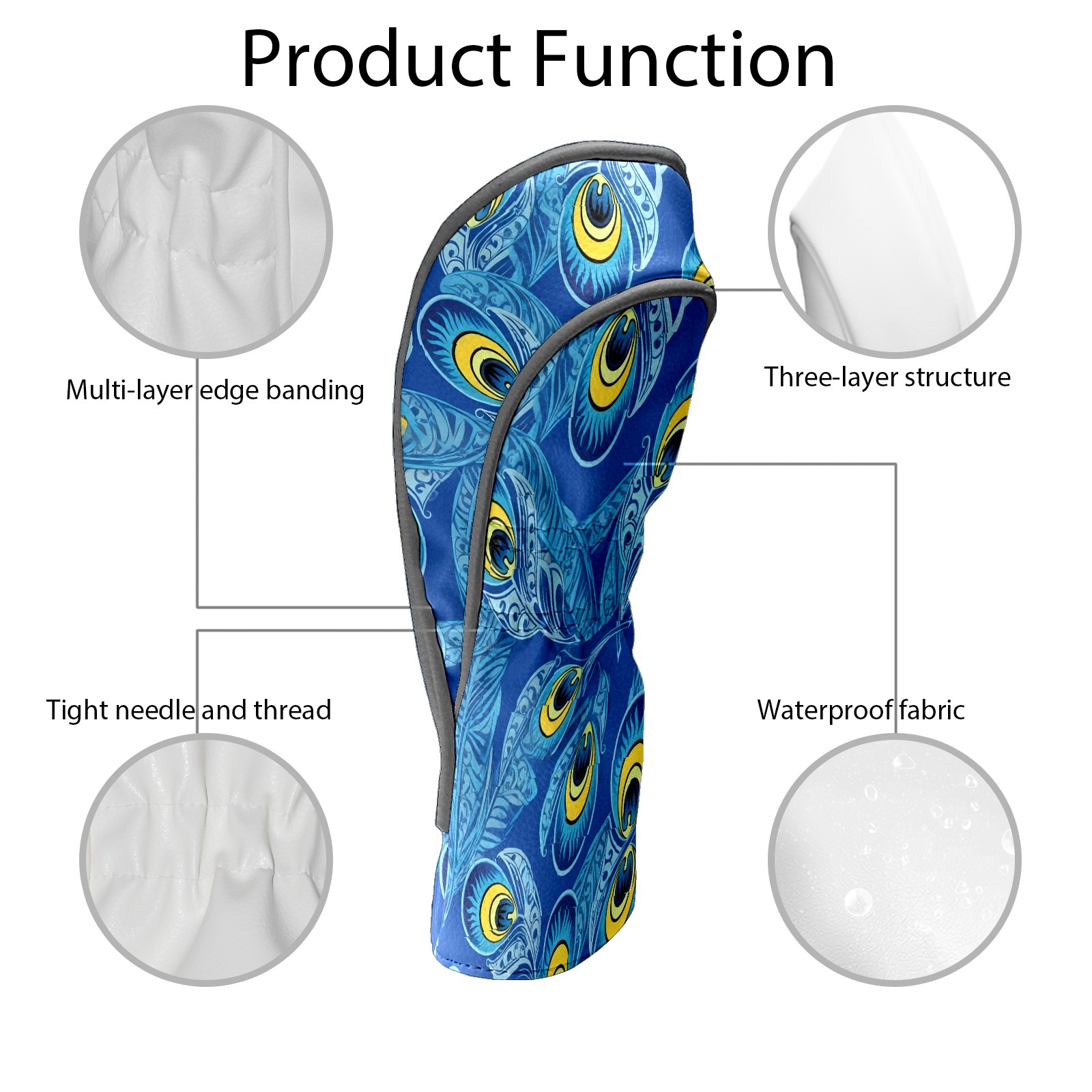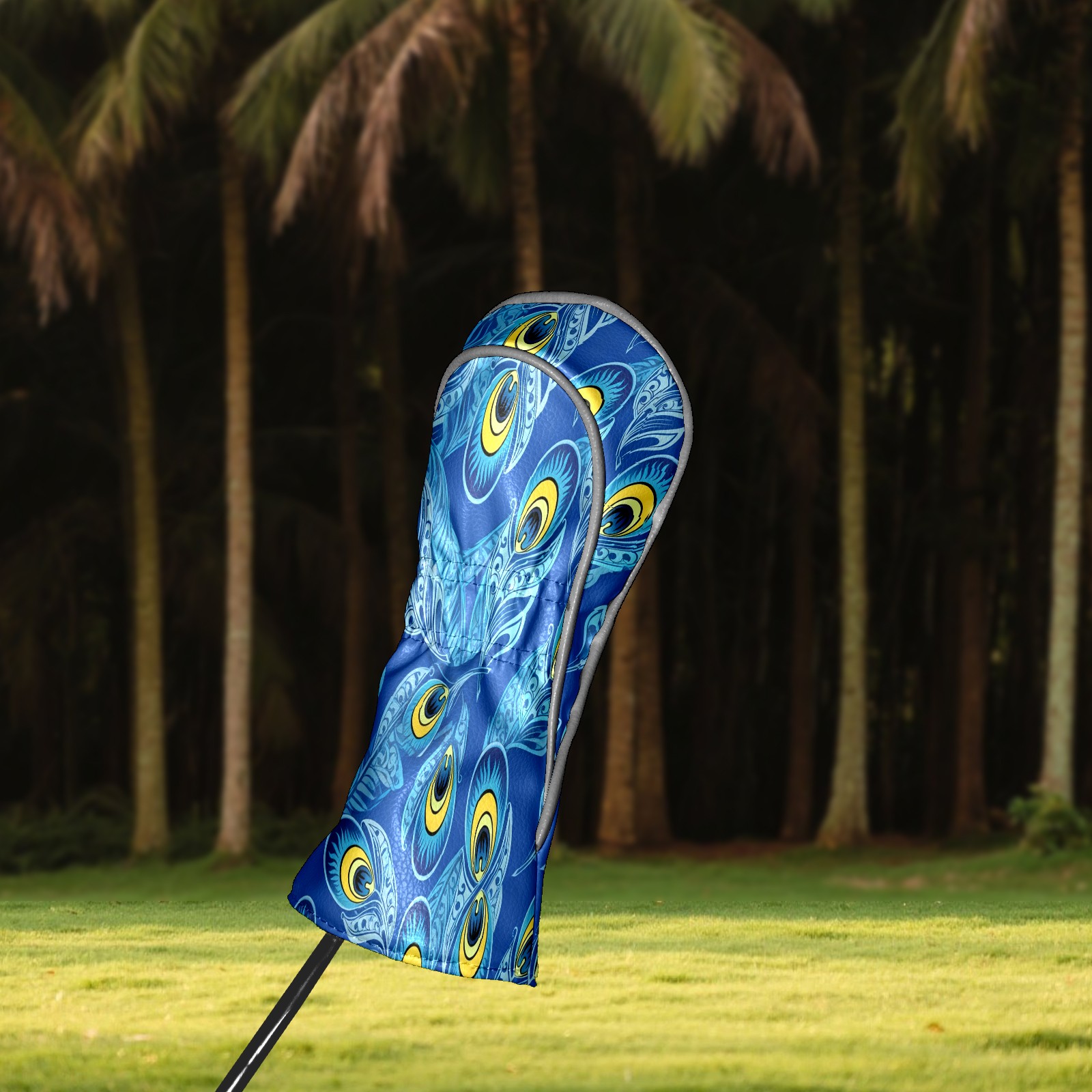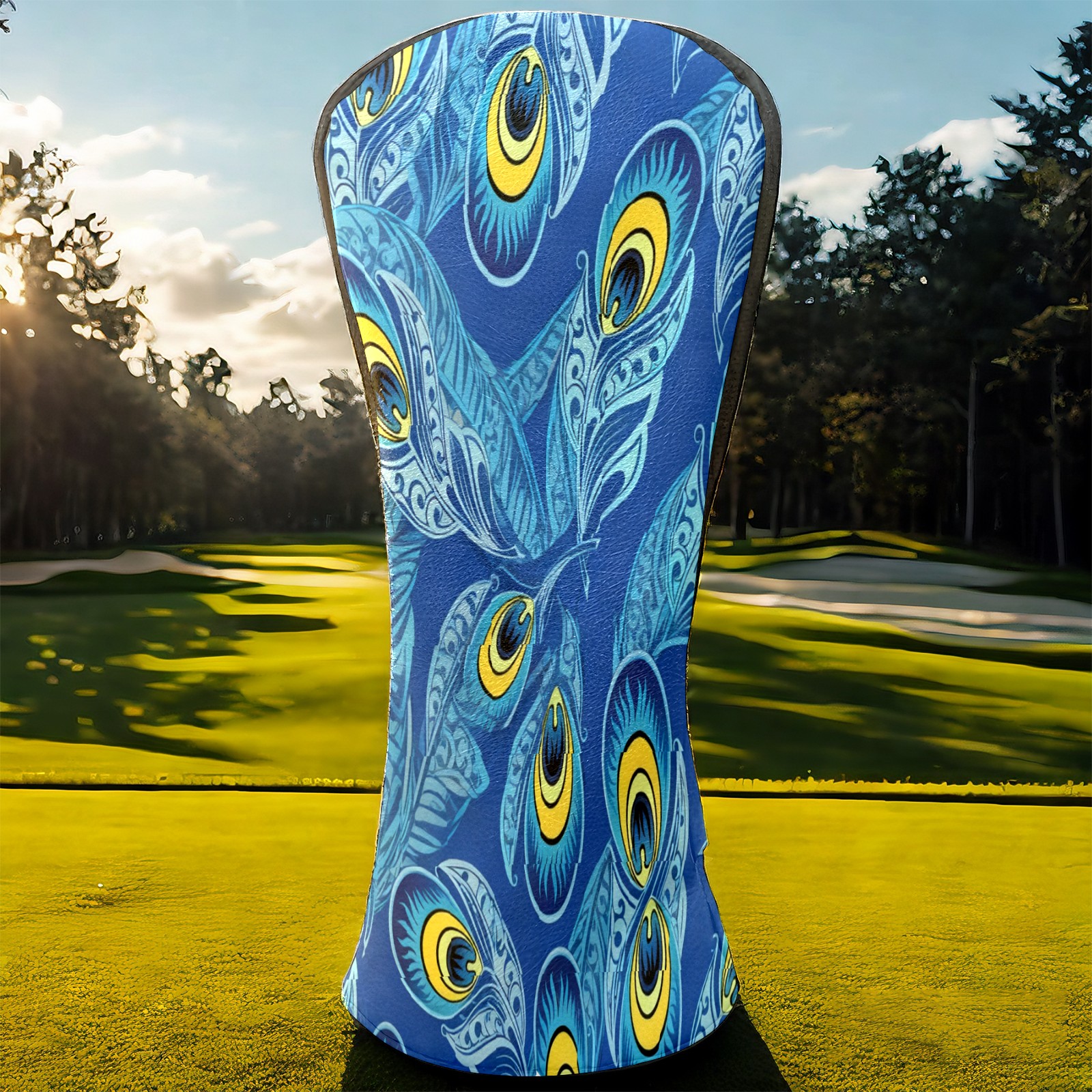 Golf Club Covers PU Leather Waterproof Golf Club Head Covers for Fairway Woods and Hybrids Blue Peacock Feathers Unisex Suitable for Most Brands