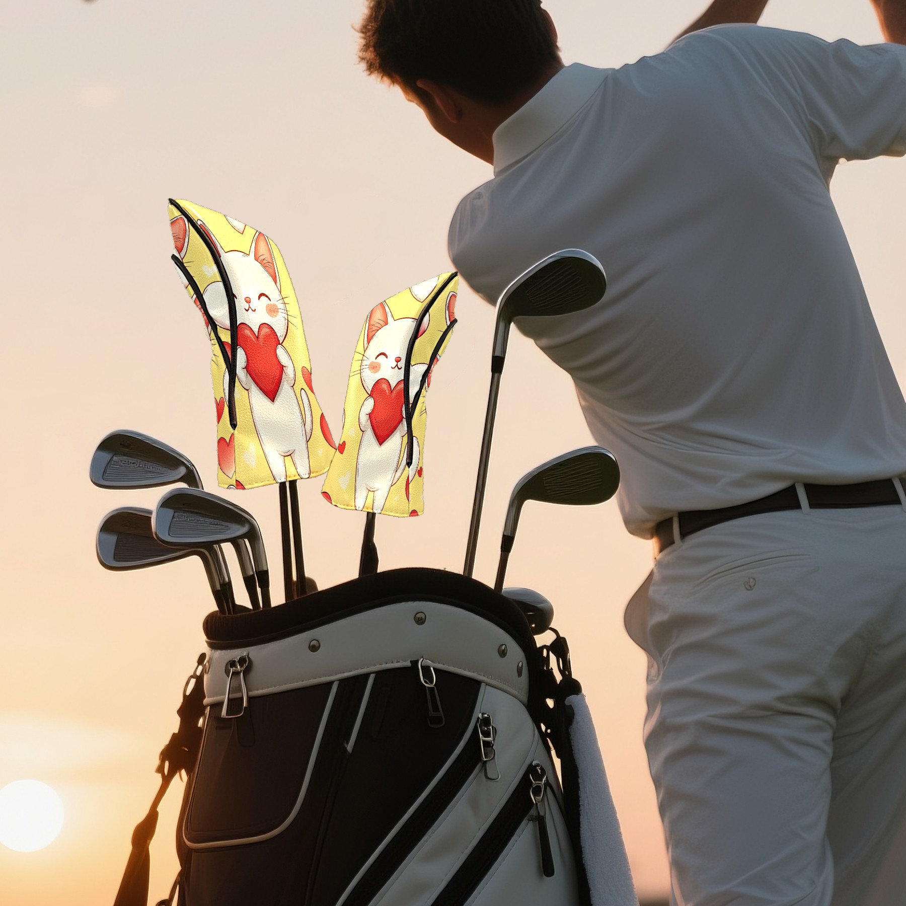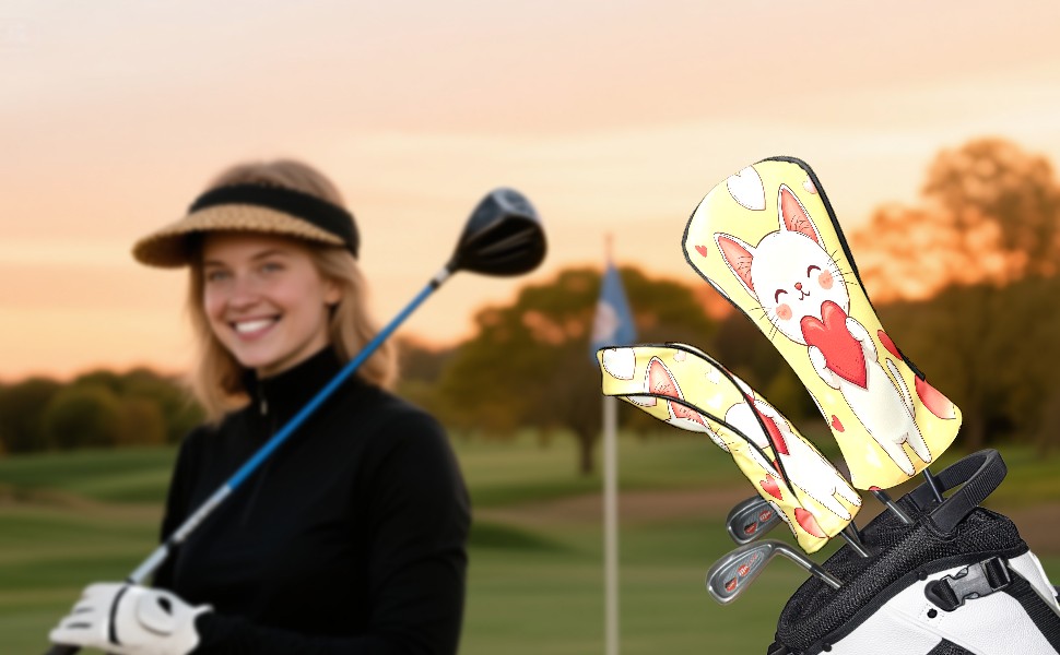 Golf Club Covers PU Leather Waterproof Golf Club Head Covers for Fairway Woods and Hybrids Kitten Love Unisex Suitable for Most Brands