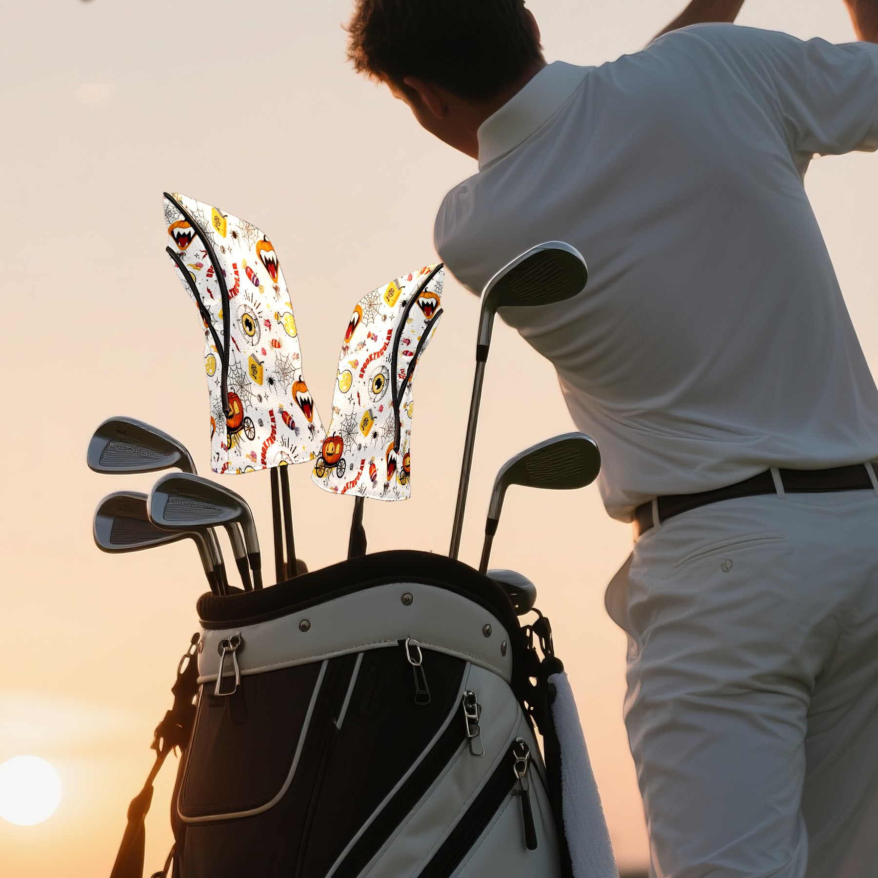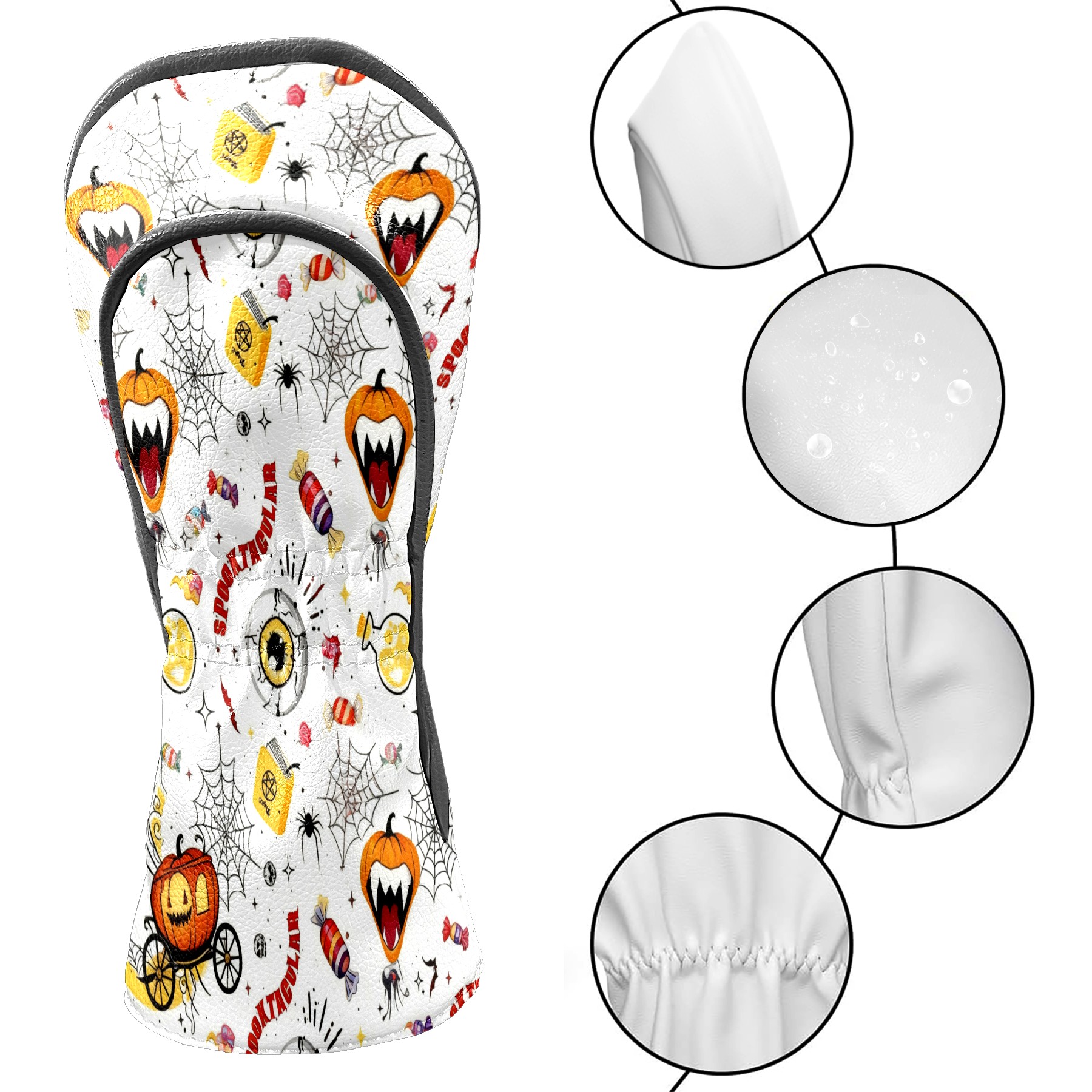 Golf Club Covers PU Leather Waterproof Golf Club Head Covers for Fairway Woods and Hybrids Cartoon Halloween Unisex Suitable for Most Brands