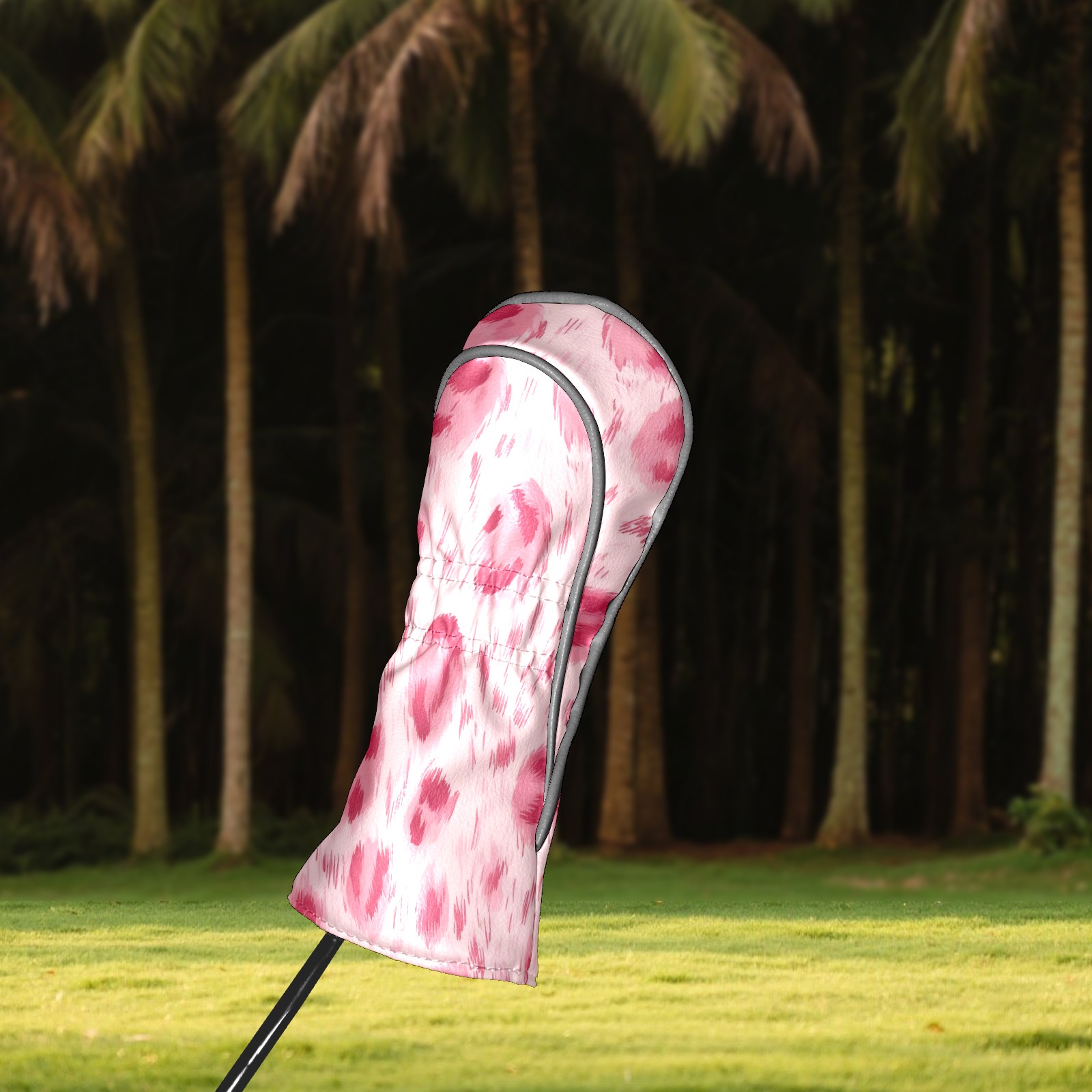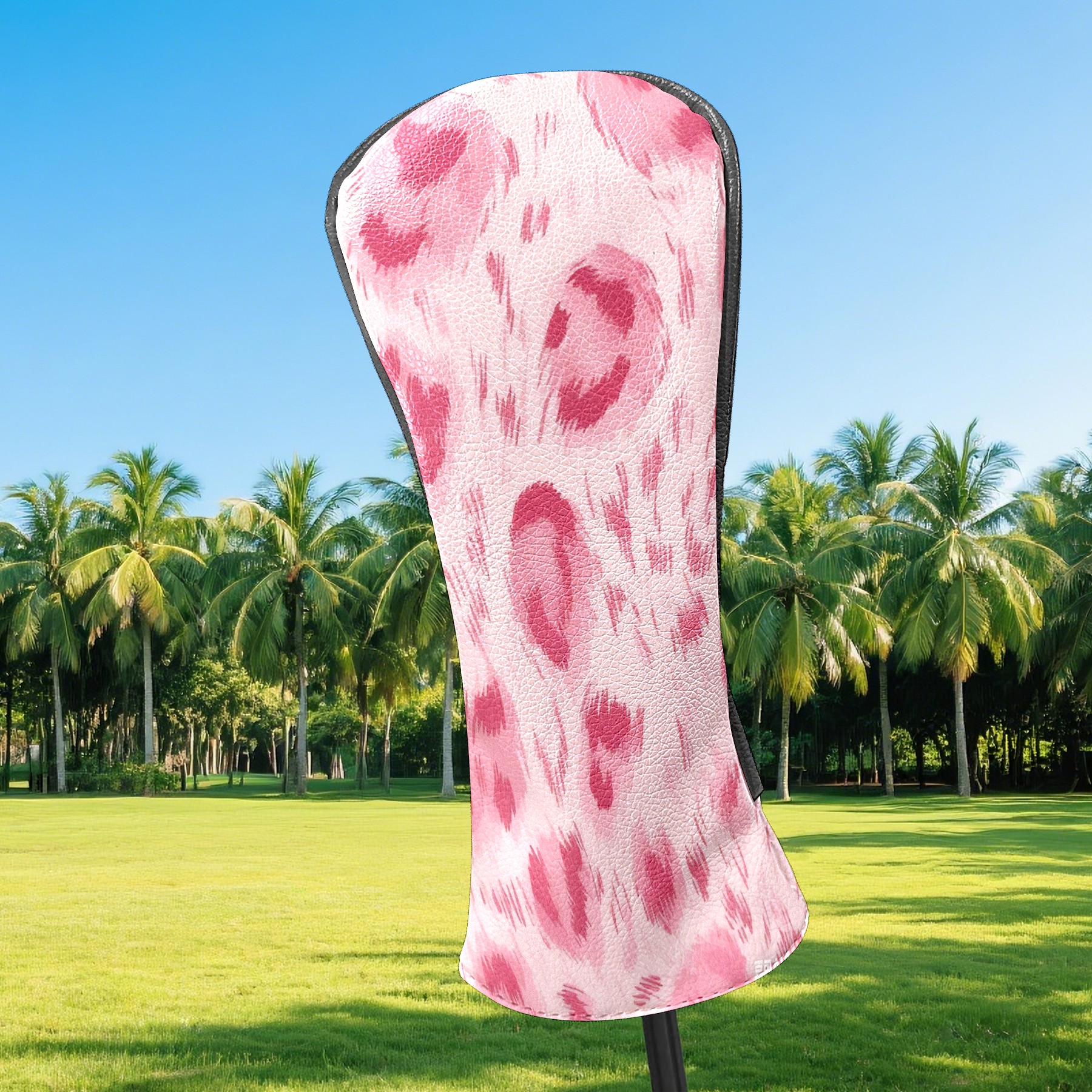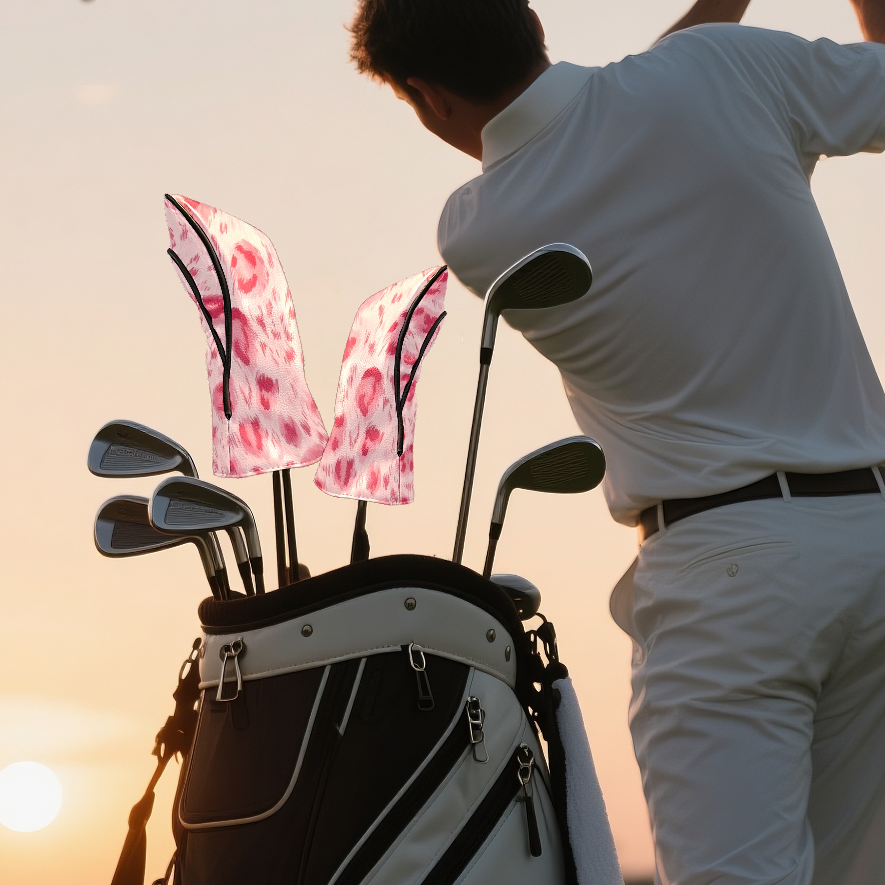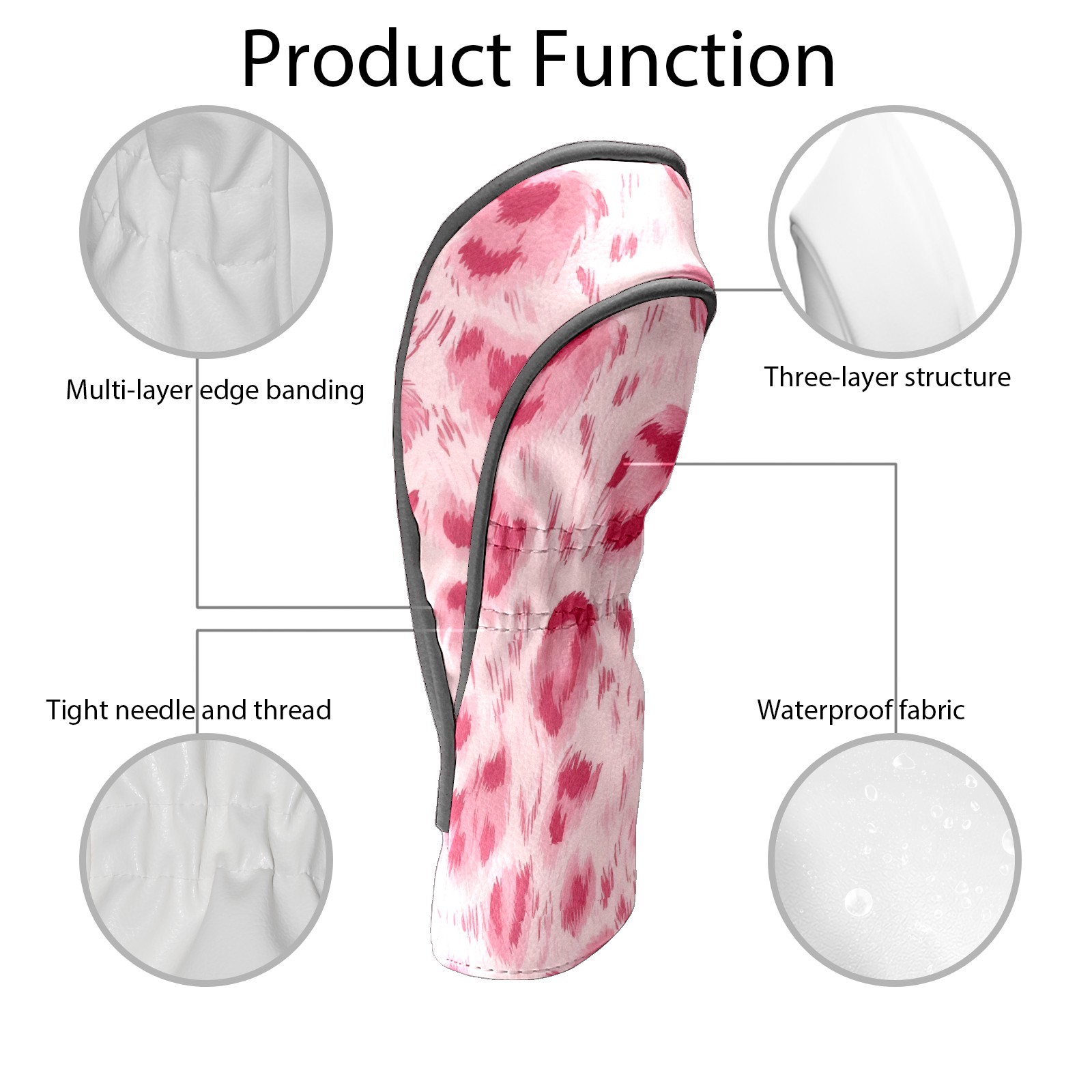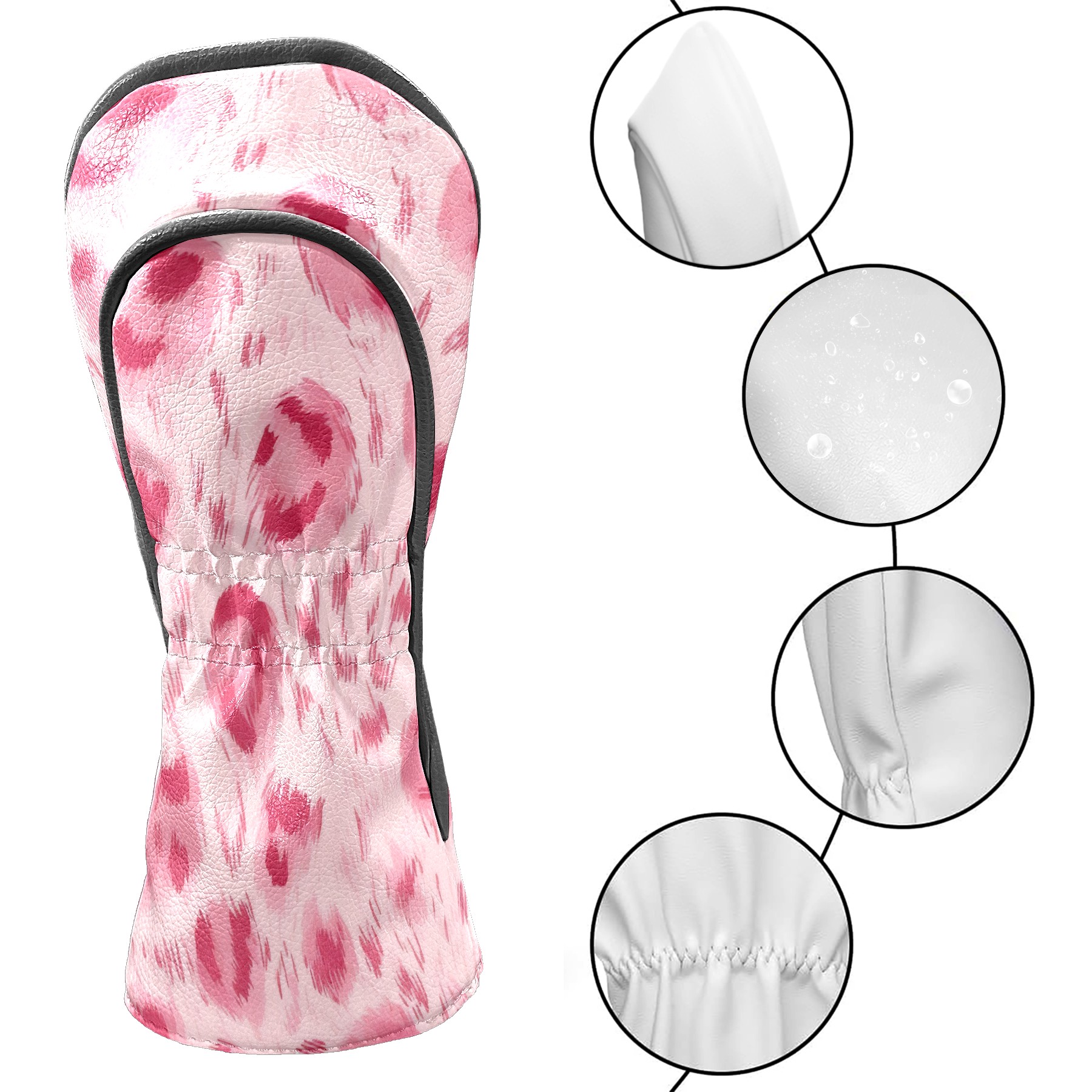 Golf Club Covers PU Leather Waterproof Golf Club Head Covers for Fairway Woods and Hybrids Pink Leopard Print Unisex Suitable for Most Brands