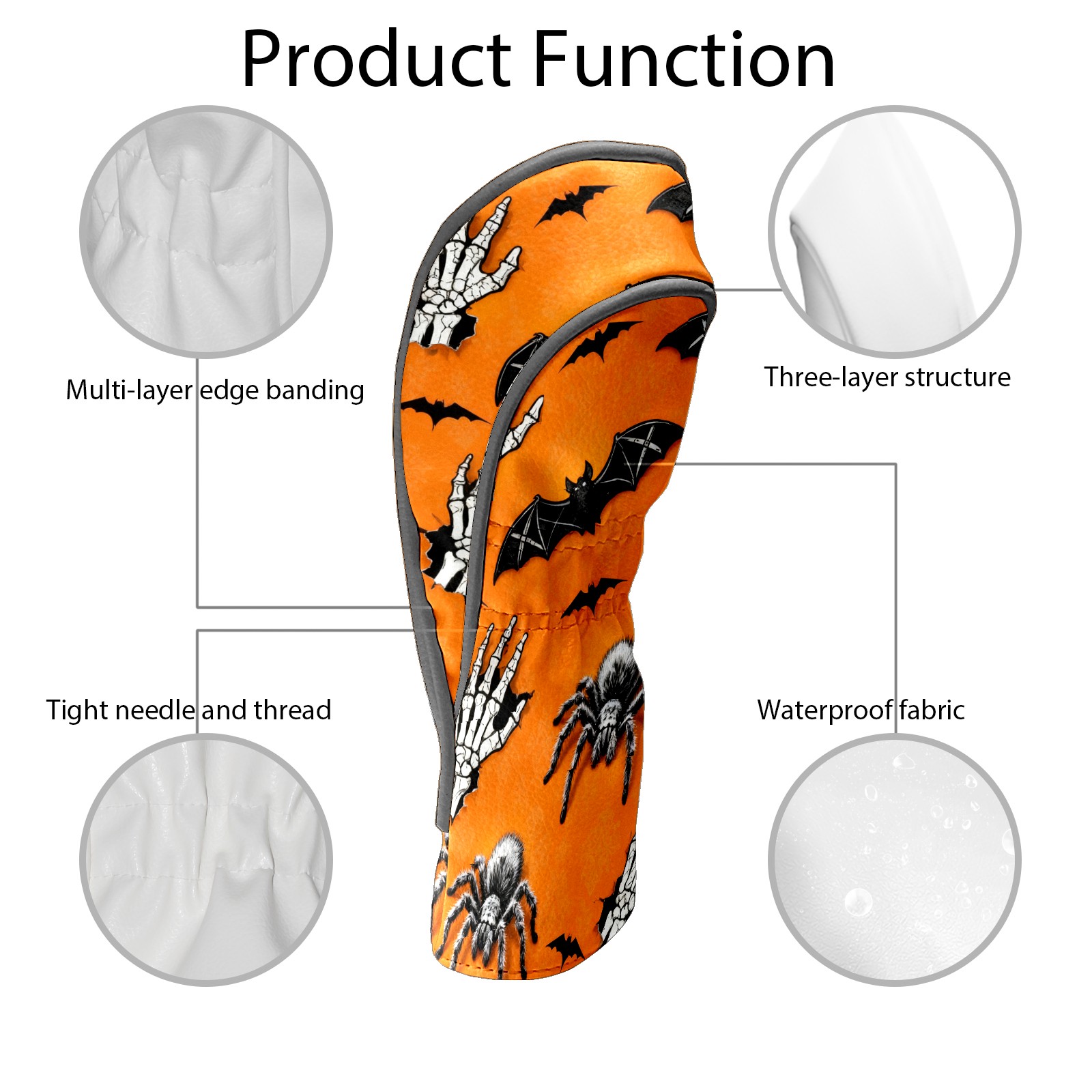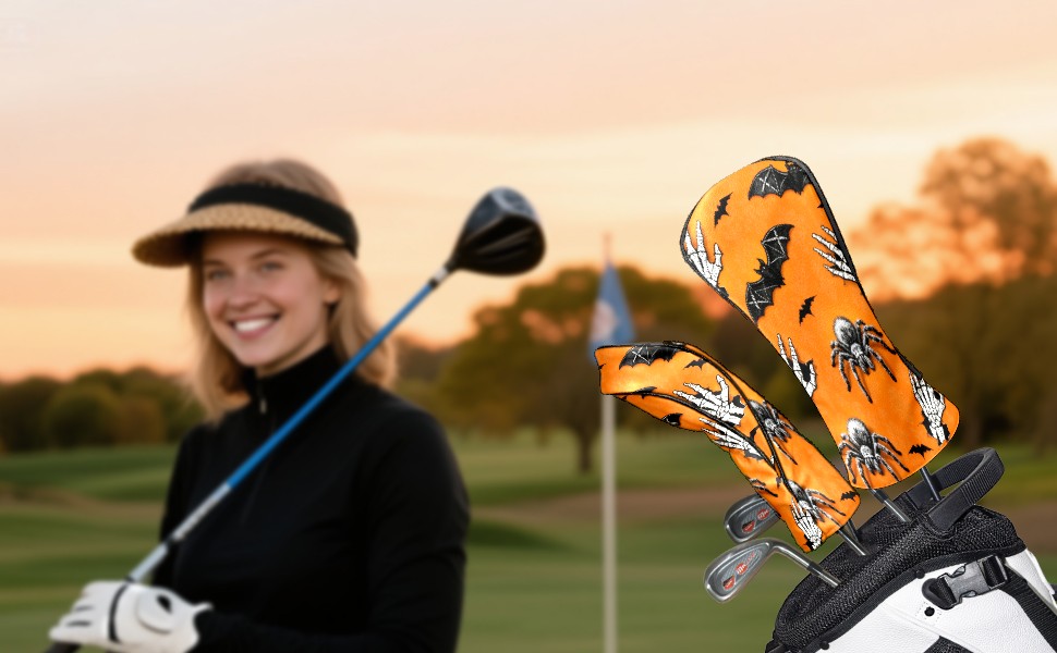 Golf Club Covers PU Leather Waterproof Golf Club Head Covers for Fairway Woods and Hybrids Skeleton Bat Unisex Suitable for Most Brands