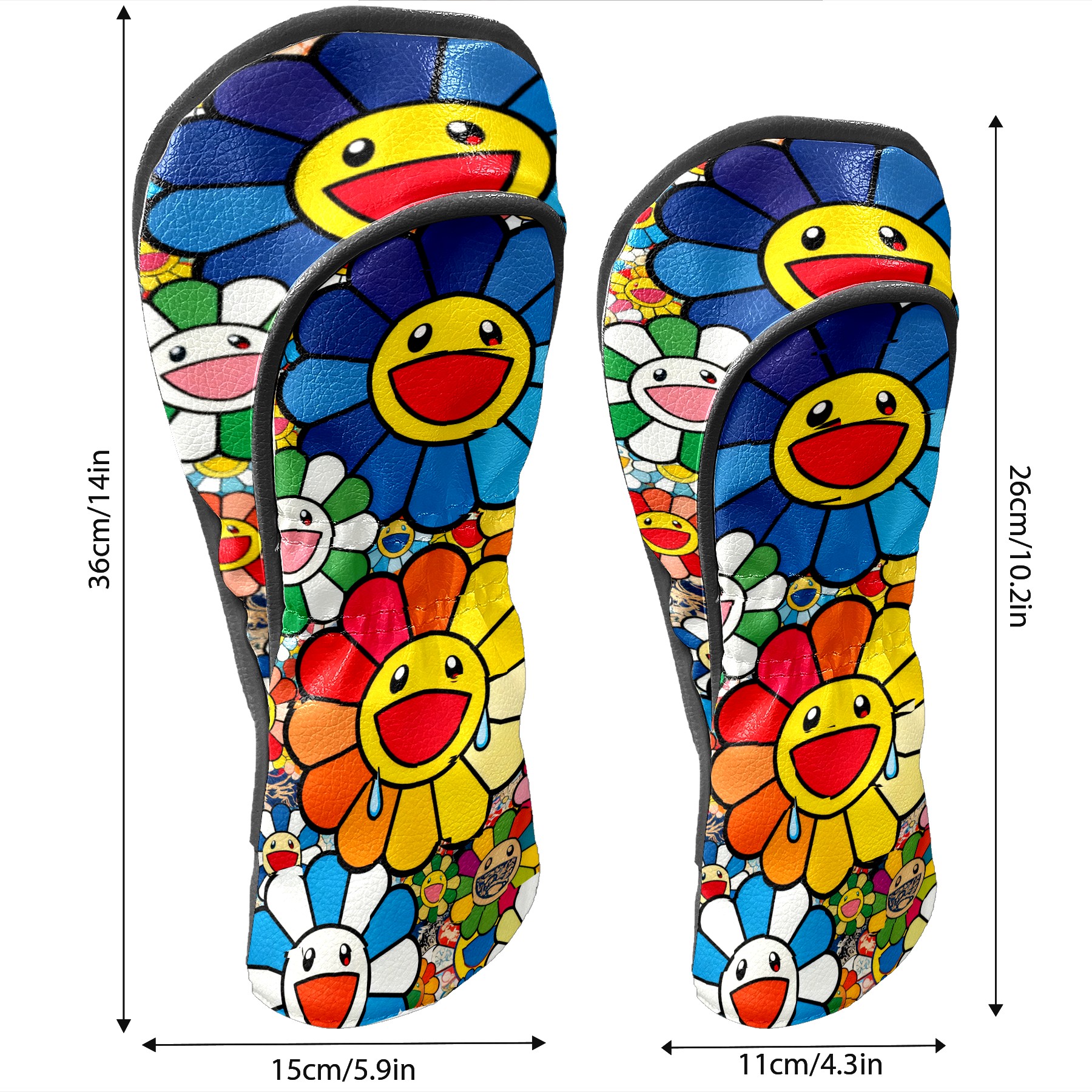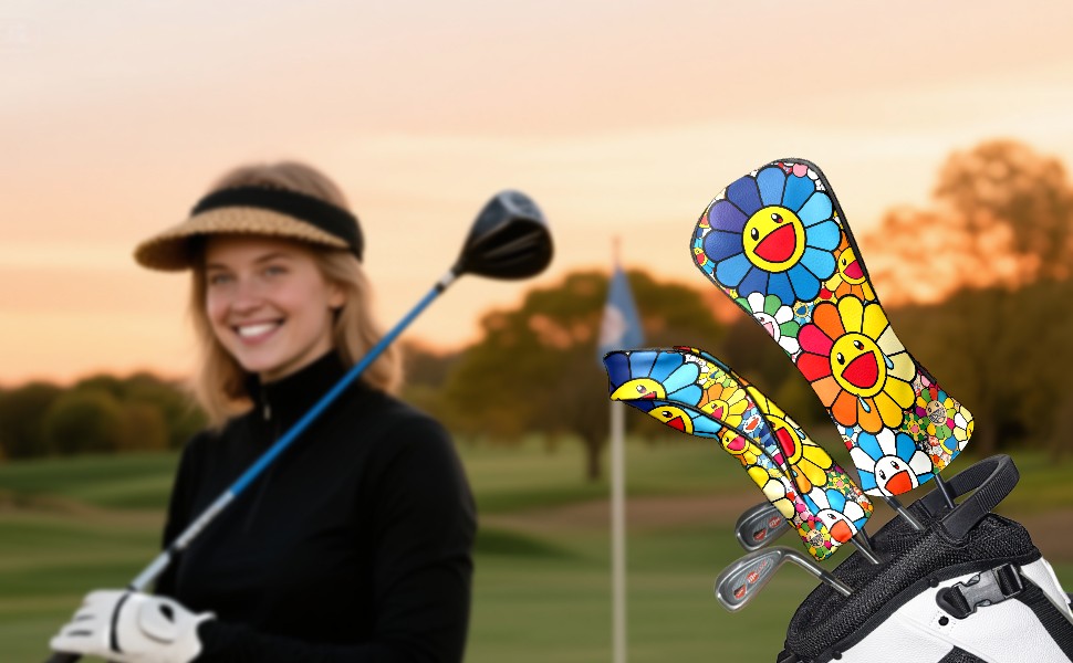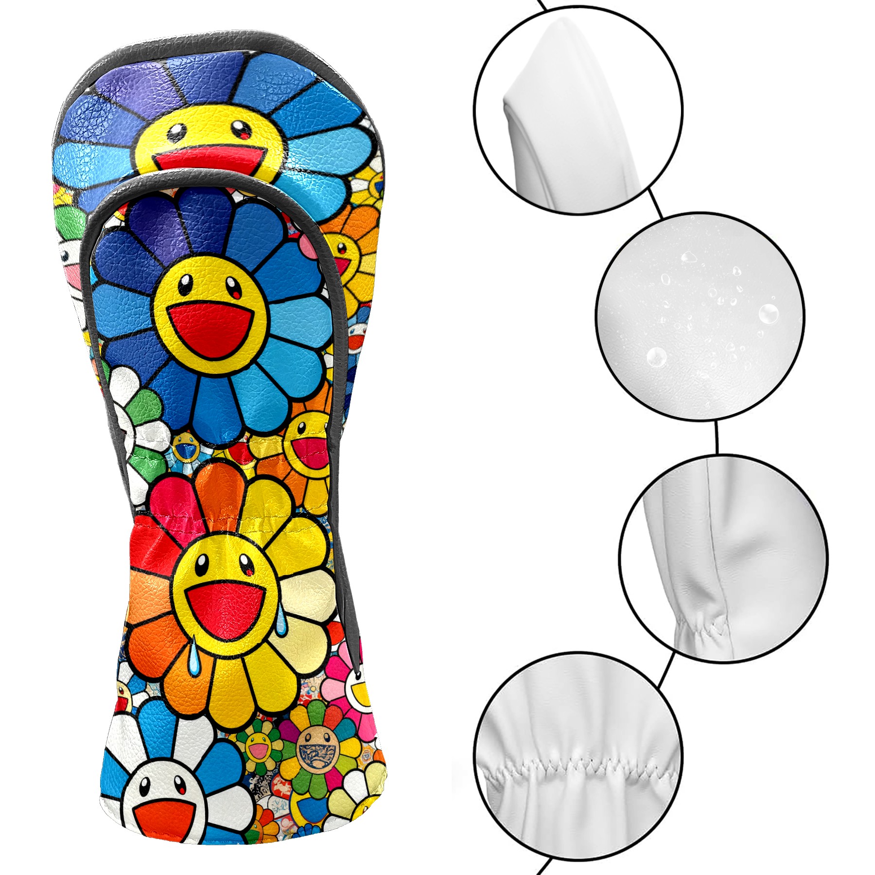 Golf Club Covers PU Leather Waterproof Golf Club Head Covers for Fairway Woods and Hybrids Sunflower Unisex Suitable for Most Brands