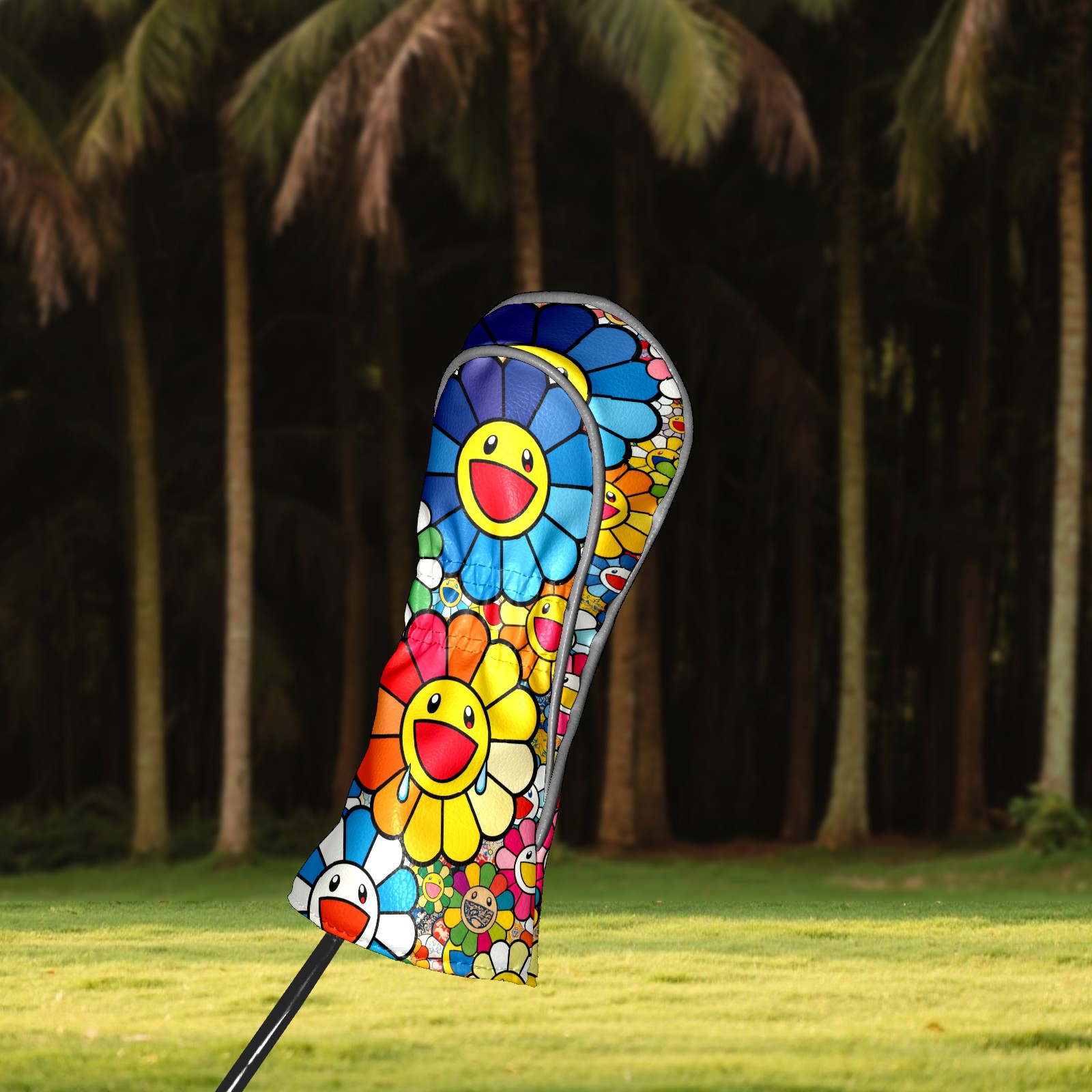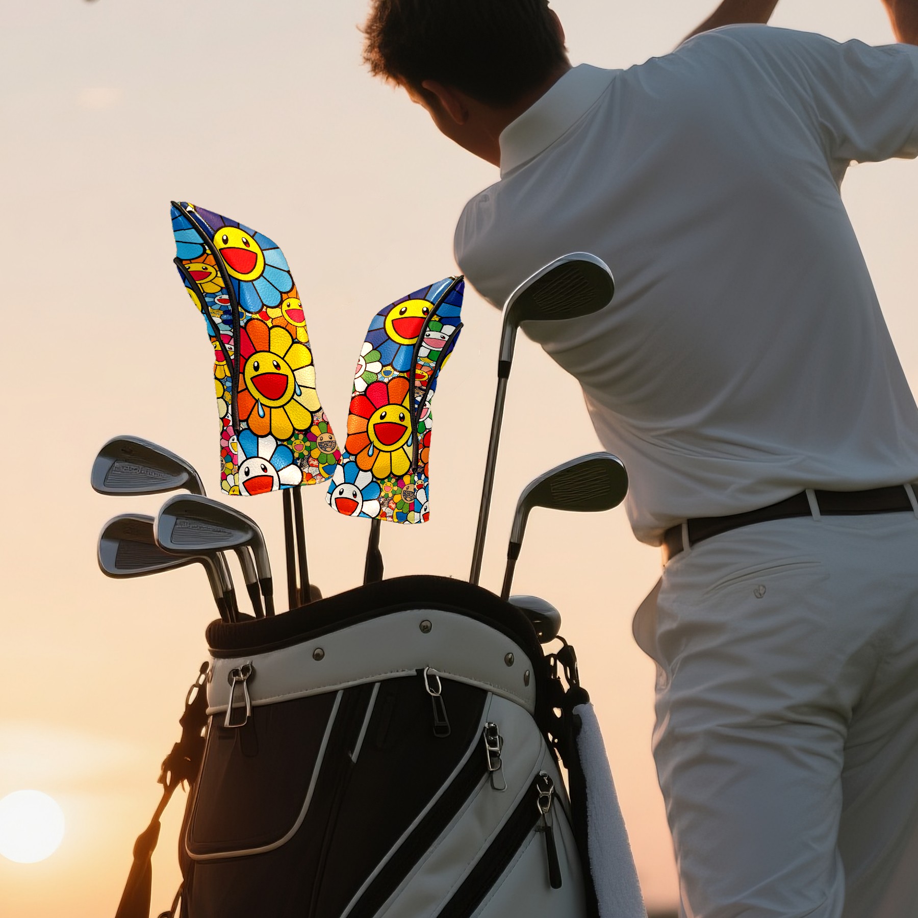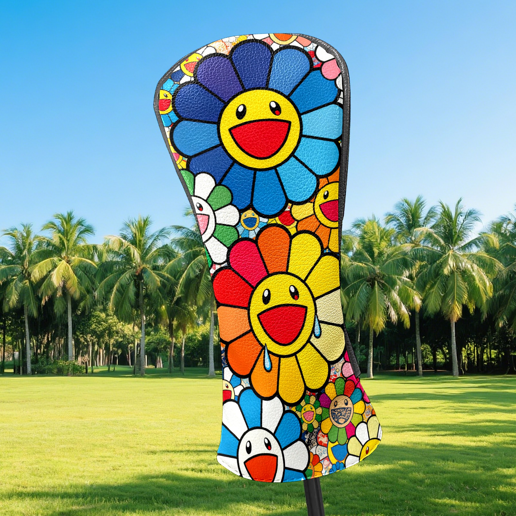 Golf Club Covers PU Leather Waterproof Golf Club Head Covers for Fairway Woods and Hybrids Sunflower Unisex Suitable for Most Brands