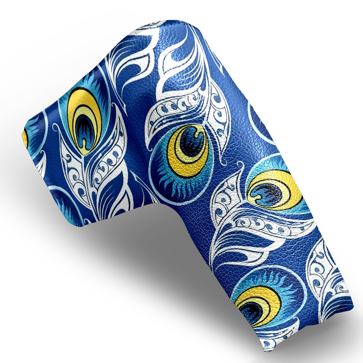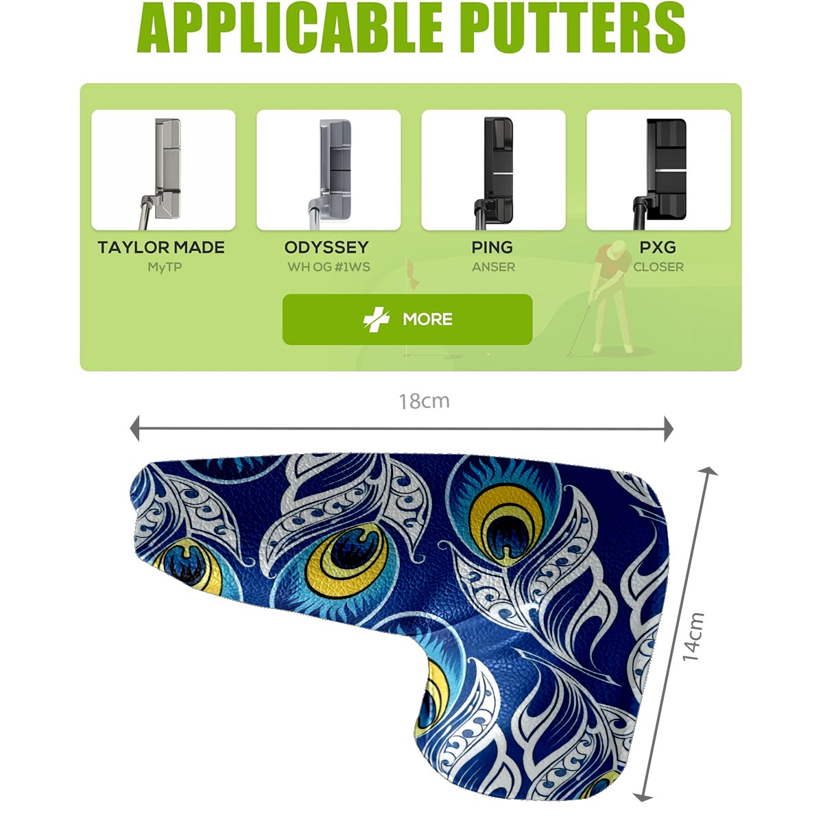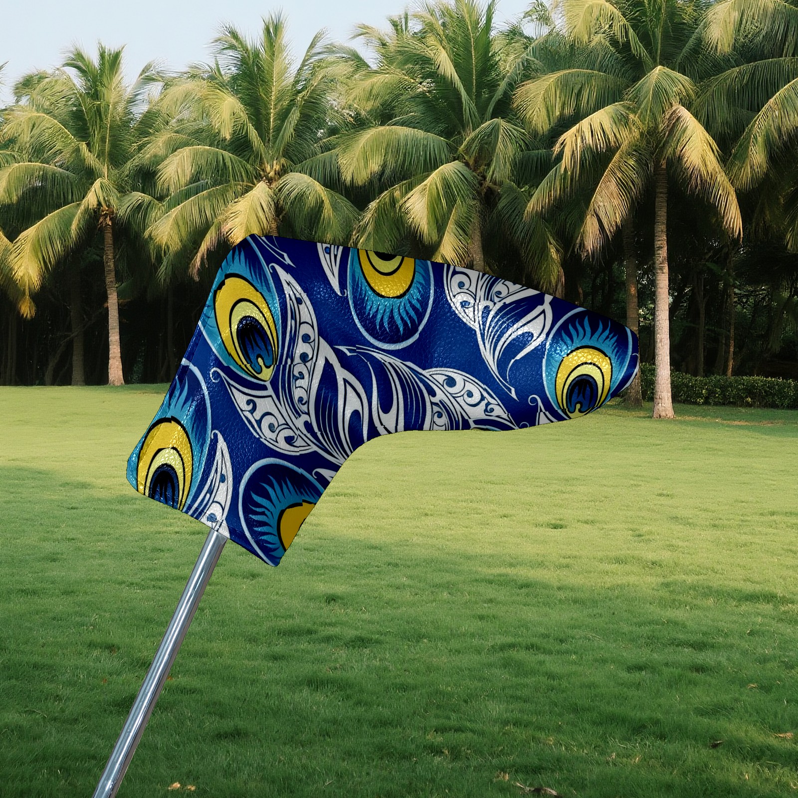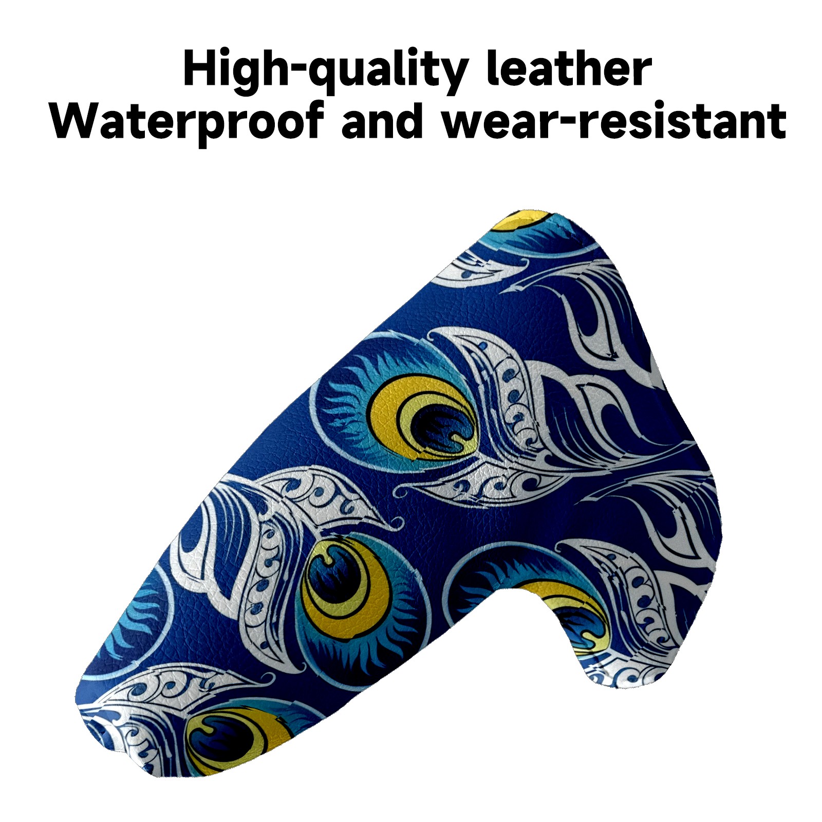 PU Leather Waterproof Golf Club Head Cover with Velvet Lining Golf Head Cover Suitable for Putters Golf Accessories for Men and Women Blue Peacock Feathers