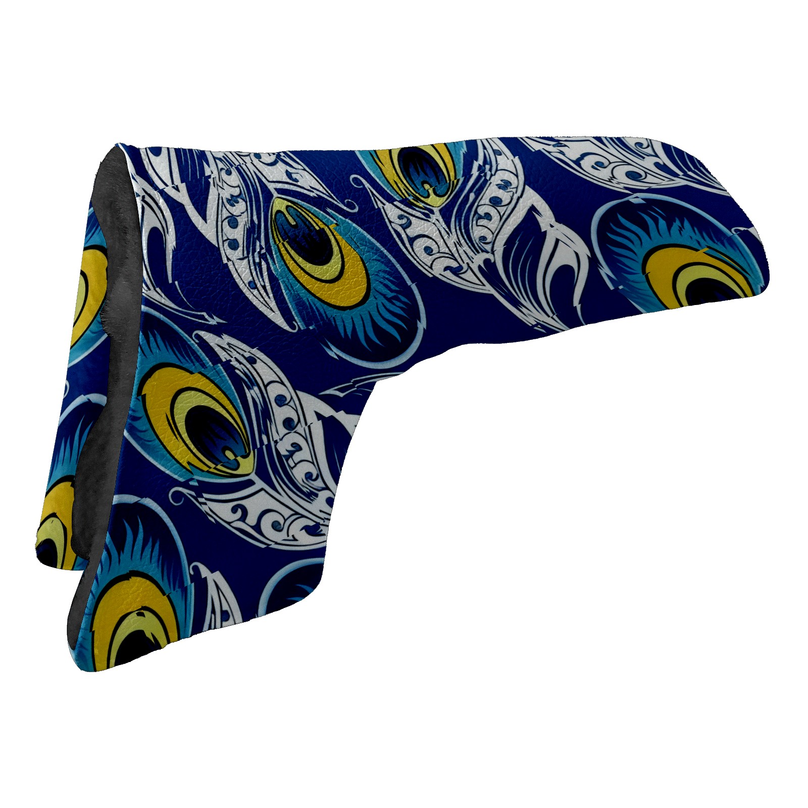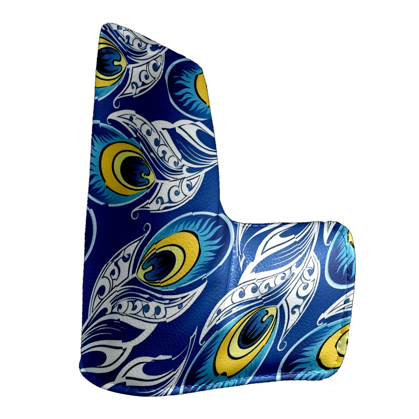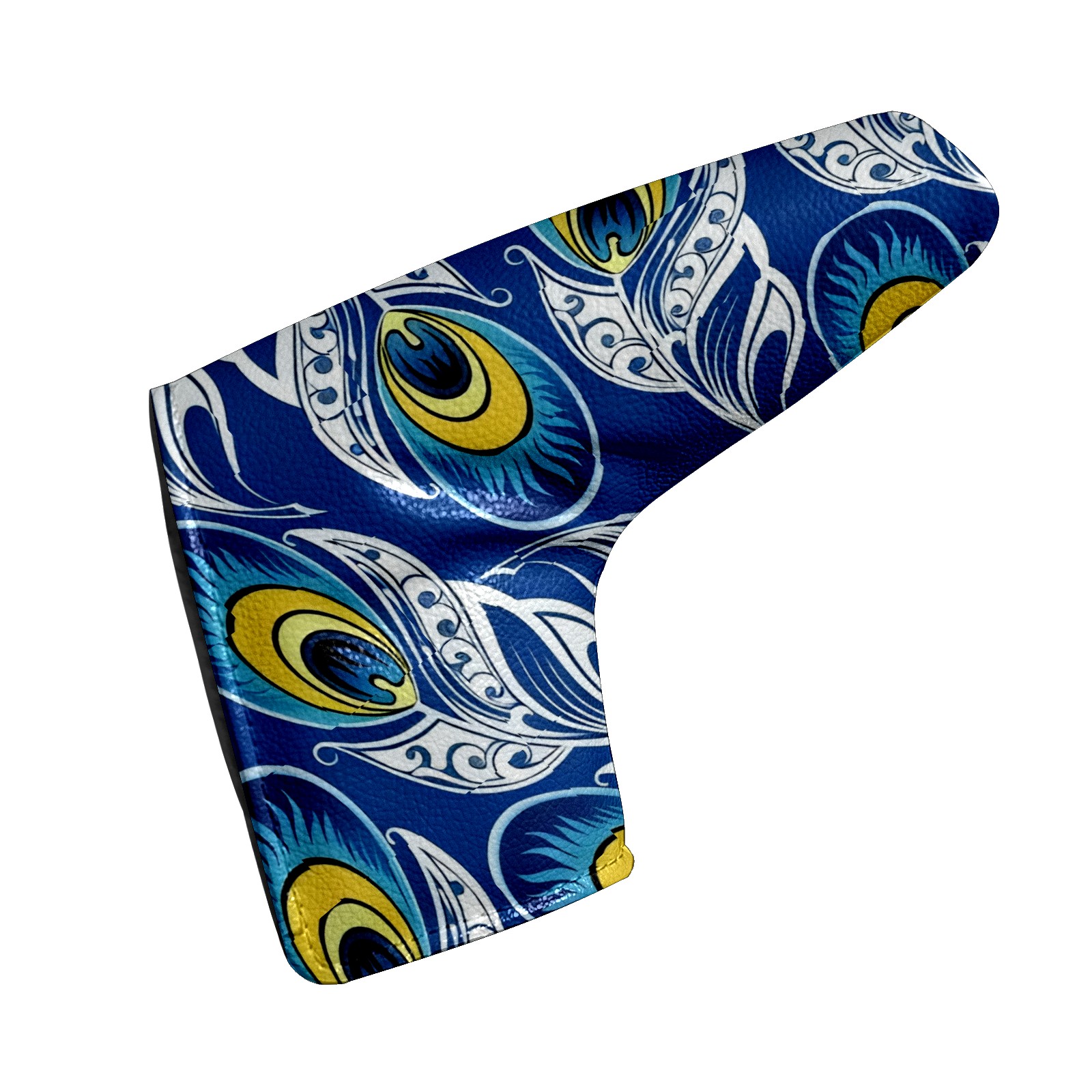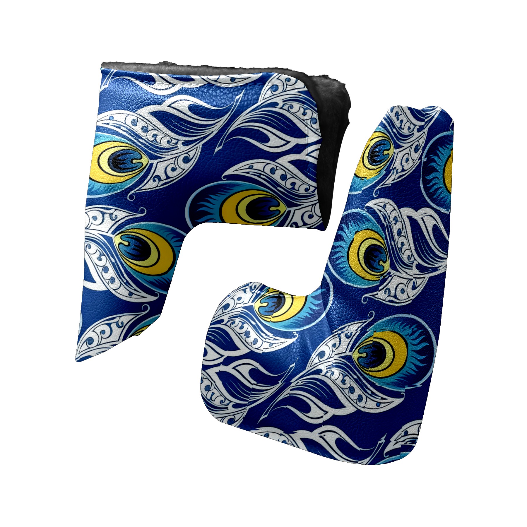 PU Leather Waterproof Golf Club Head Cover with Velvet Lining Golf Head Cover Suitable for Putters Golf Accessories for Men and Women Blue Peacock Feathers