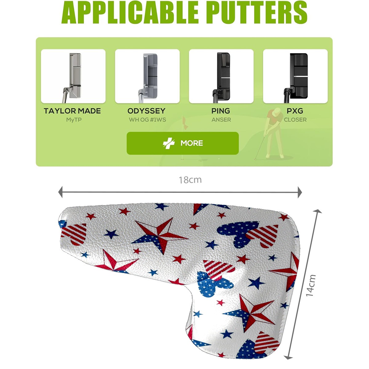 • <p>Golf putter head covers Made of high-quality PU leather They are eye-catching key protective equipment on the golf course, easy to clean, Suitable for most golf clubs. Not only waterproof and stain-proof, but also outlines a delicate texture with smooth lines.</p> <p>Whether it is given to a golf enthusiast with a sense of humor, or as a choice to reward yourself for upgrading your sports equipment, this club cover is an ideal gift that combines practicality and fun.</p>