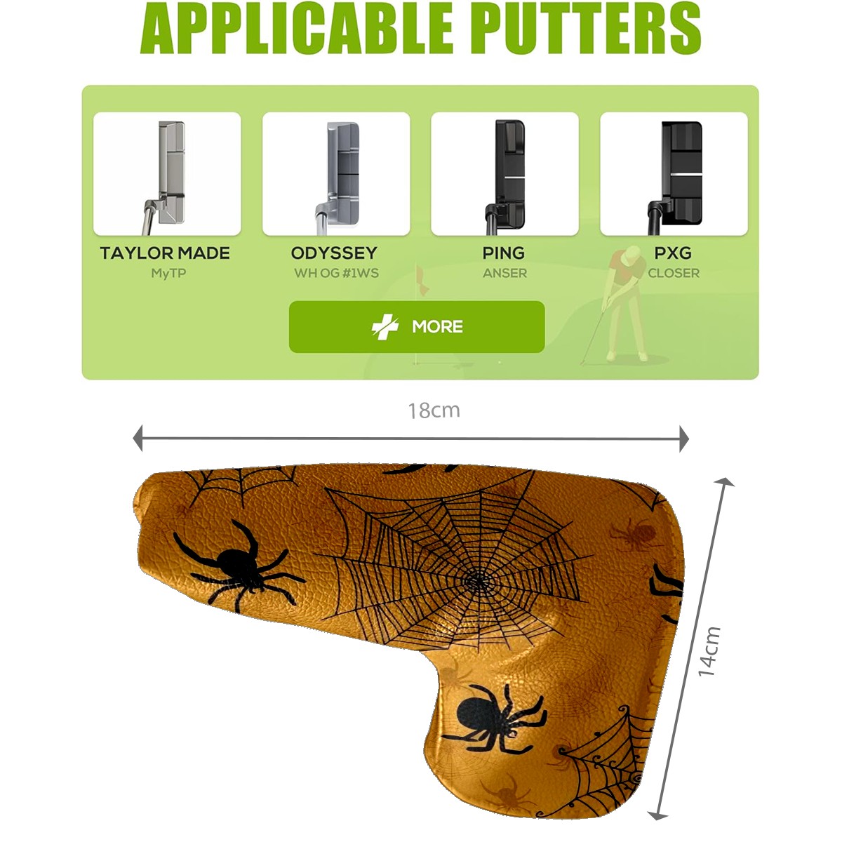 PU Leather Waterproof Golf Club Head Cover with Velvet Lining Golf Head Cover Suitable for Putters Golf Accessories for Men and Women Cobweb