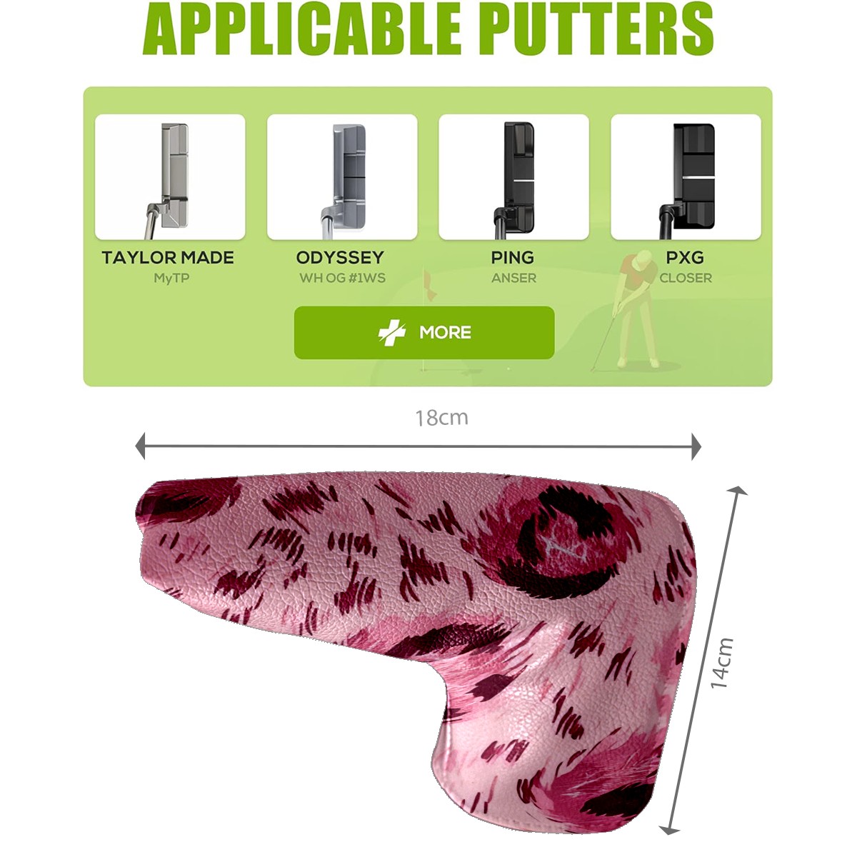 PU Leather Waterproof Golf Club Head Cover with Velvet Lining Golf Head Cover Suitable for Putters Golf Accessories for Men and Women Pink Leopard Print