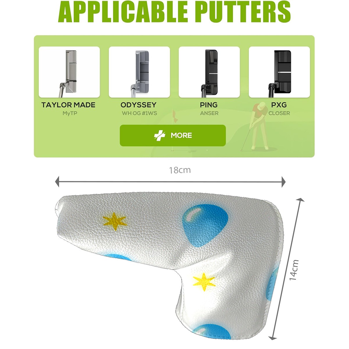 • <p>Golf putter head covers Made of high-quality PU leather They are eye-catching key protective equipment on the golf course, easy to clean, Suitable for most golf clubs. Not only waterproof and stain-proof, but also outlines a delicate texture with smooth lines.</p> <p>Whether it is given to a golf enthusiast with a sense of humor, or as a choice to reward yourself for upgrading your sports equipment, this club cover is an ideal gift that combines practicality and fun.</p>