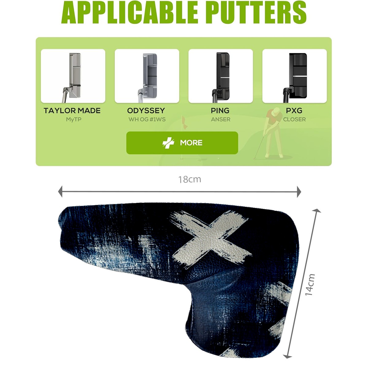 • <p>Golf putter head covers Made of high-quality PU leather They are eye-catching key protective equipment on the golf course, easy to clean, Suitable for most golf clubs. Not only waterproof and stain-proof, but also outlines a delicate texture with smooth lines.</p> <p>Whether it is given to a golf enthusiast with a sense of humor, or as a choice to reward yourself for upgrading your sports equipment, this club cover is an ideal gift that combines practicality and fun.</p>