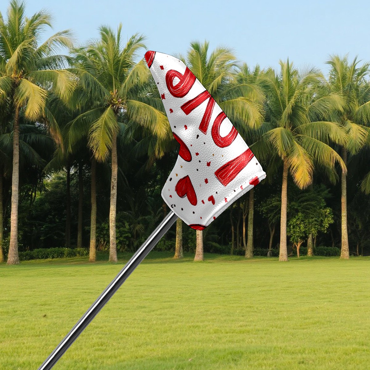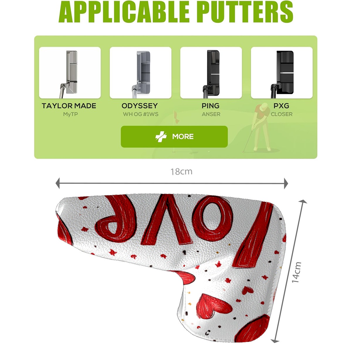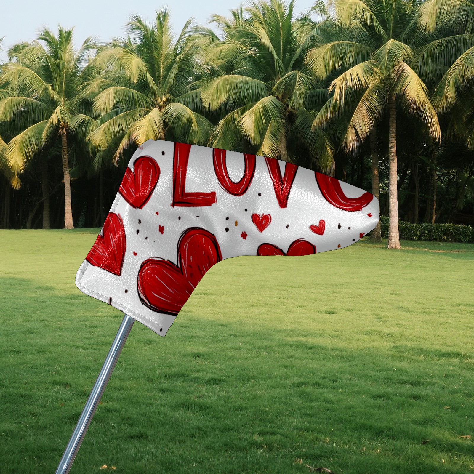 PU Leather Waterproof Golf Club Head Cover with Velvet Lining Golf Head Cover Suitable for Putters Golf Accessories for Men and Women Red Love Heart