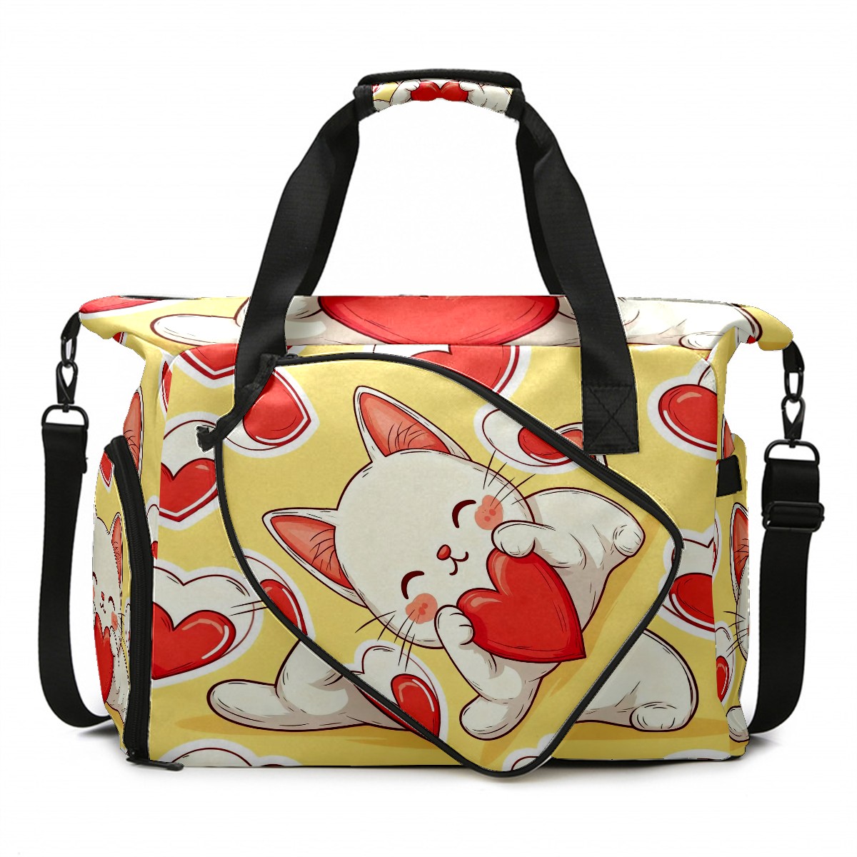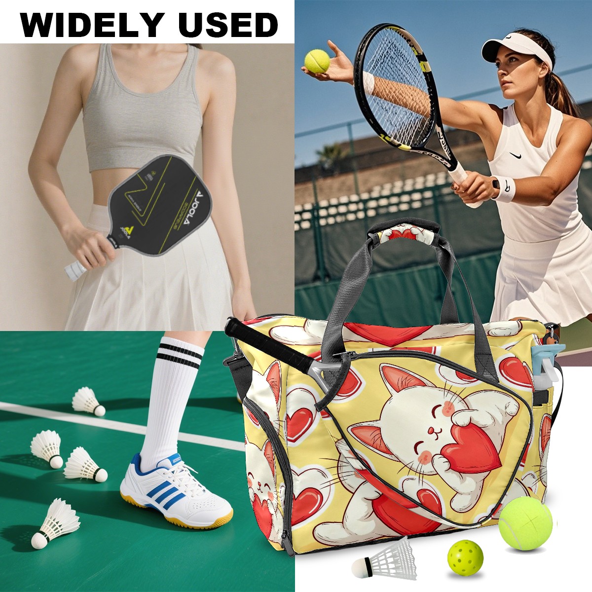 Pickleball Bag for Men and Women,with Water Bottle Holder and Separate Shoe Compartment, Kitten Love Great Best Gift for Pickleball Enthusiasts