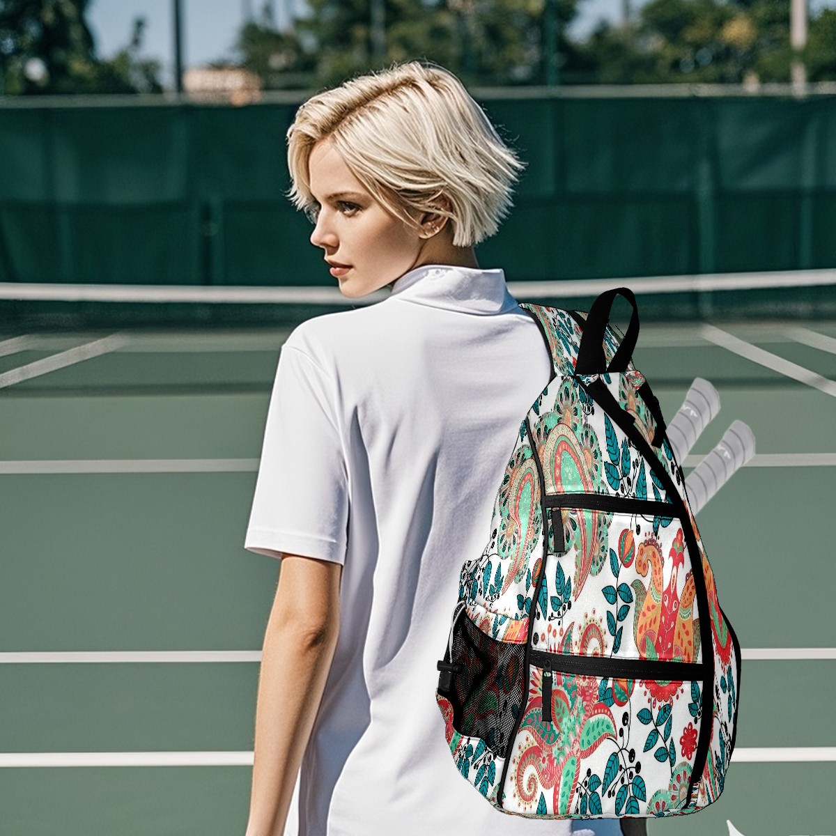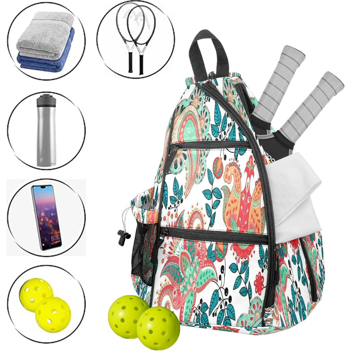 Pickleball Bag,Adjustable Shoulder Bag,Waterproof and Large Capacity,Pickleball Backpack for Men and Women Paisley Pattern