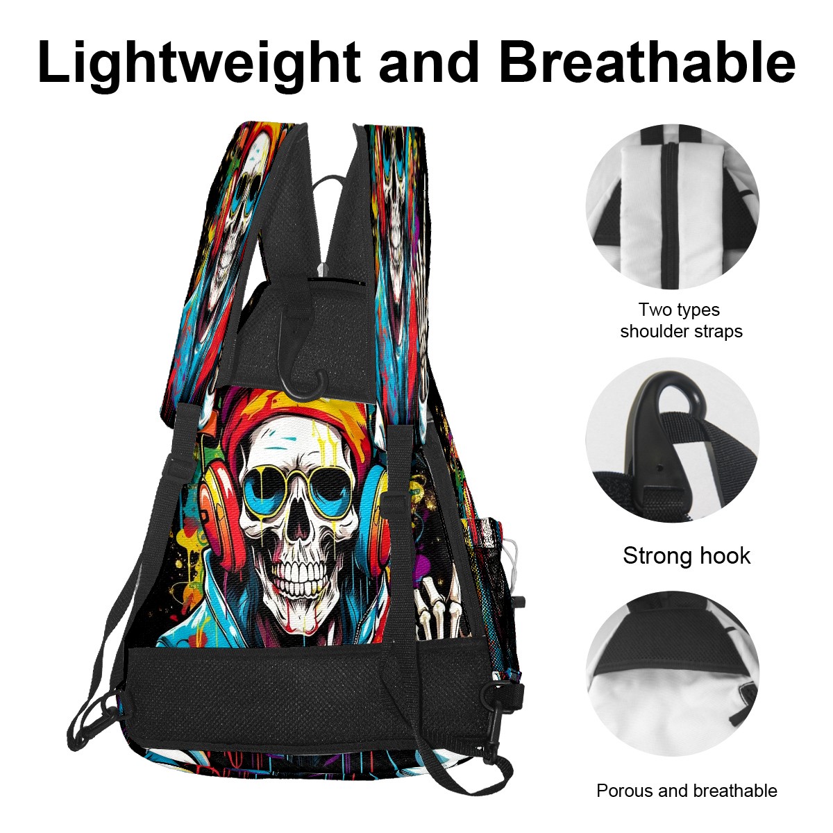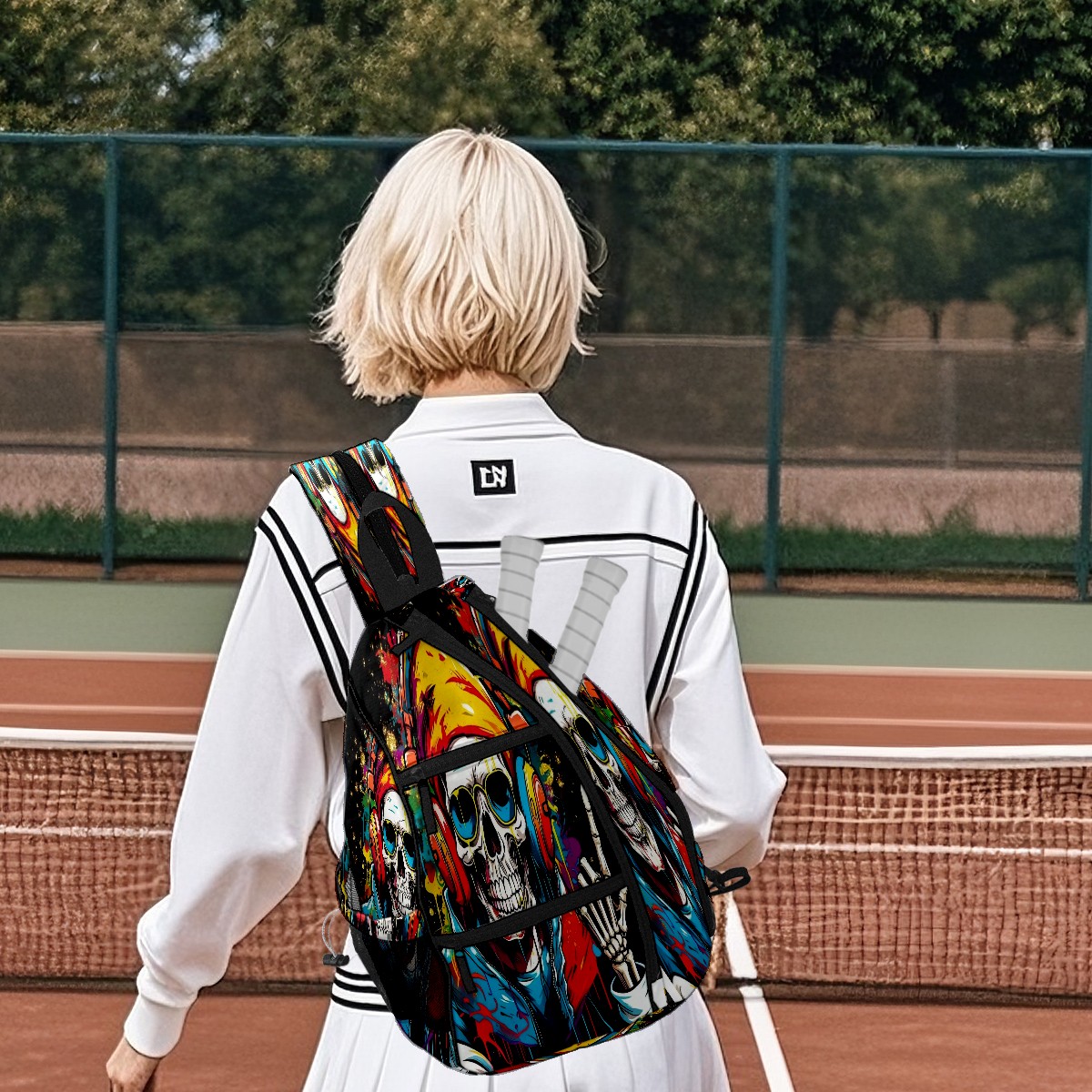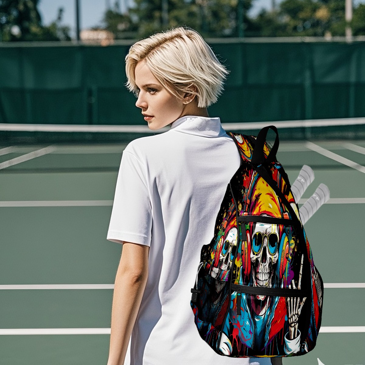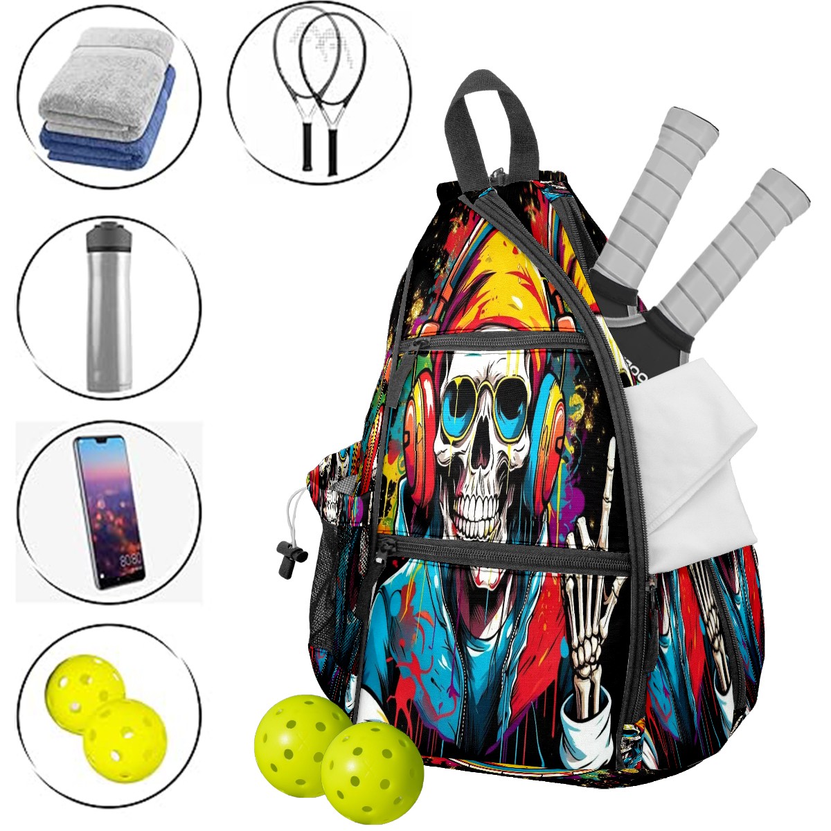 Pickleball Bag,Adjustable Shoulder Bag,Waterproof and Large Capacity,Pickleball Backpack for Men and Women Trendy Skull