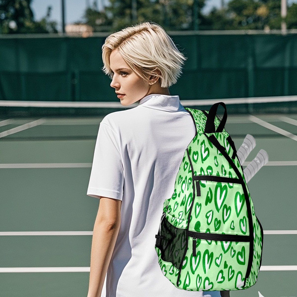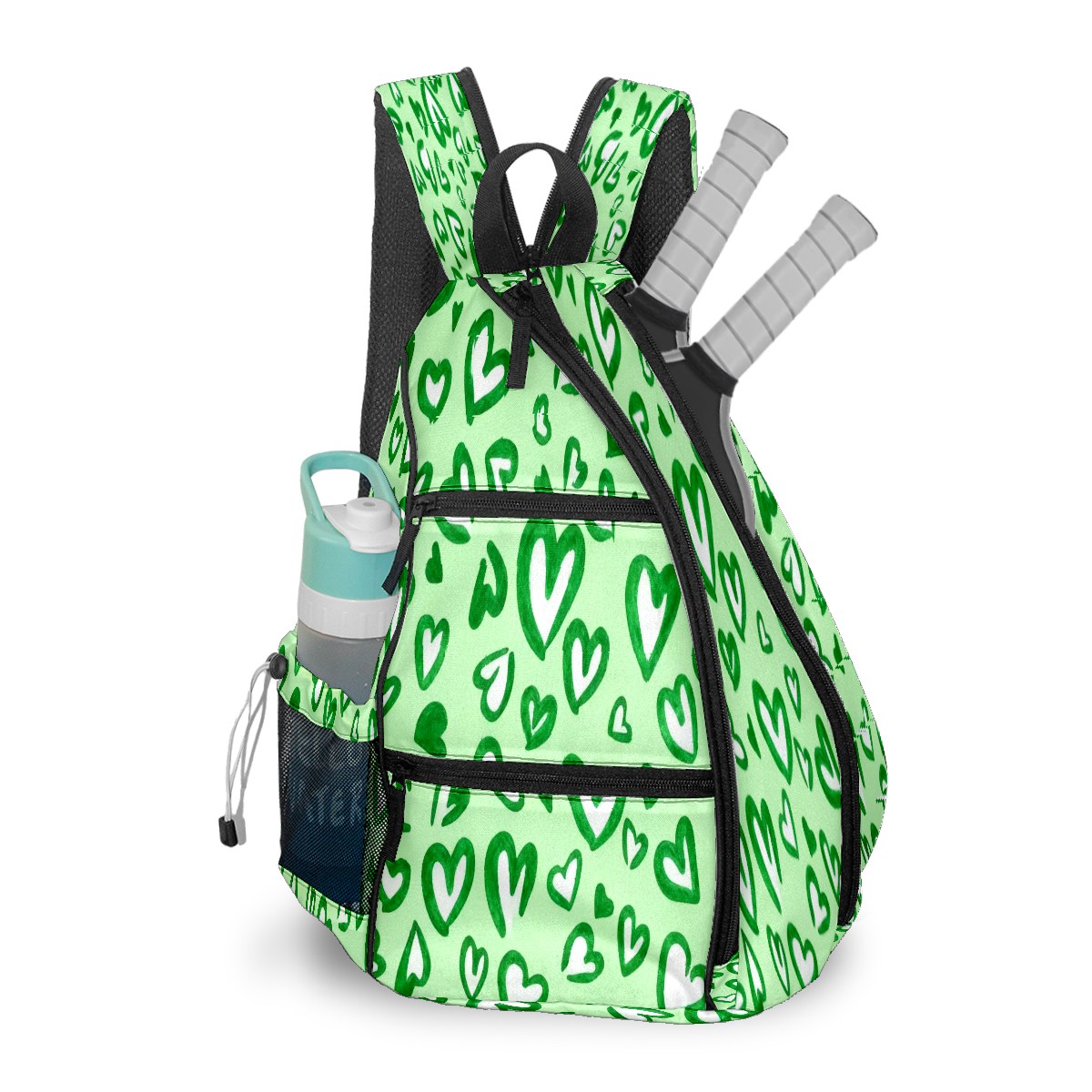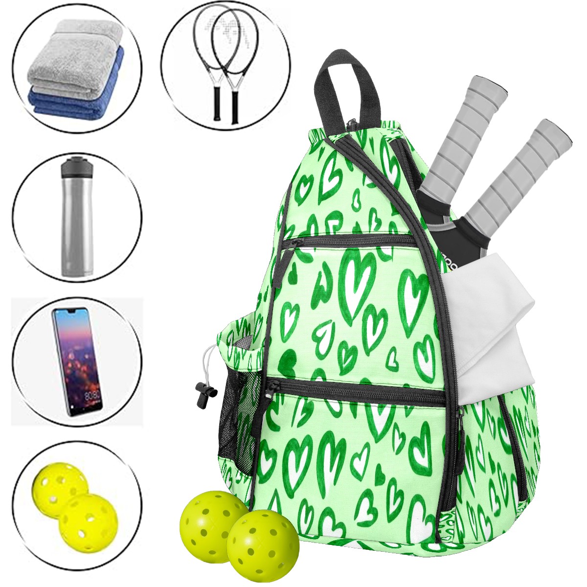 Pickleball Bag,Adjustable Shoulder Bag,Waterproof and Large Capacity,Pickleball Backpack for Men and Women Green Love Heart
