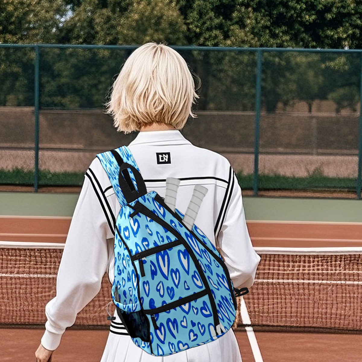 Pickleball Bag,Adjustable Shoulder Bag,Waterproof and Large Capacity,Pickleball Backpack for Men and Women Blue Love Heart