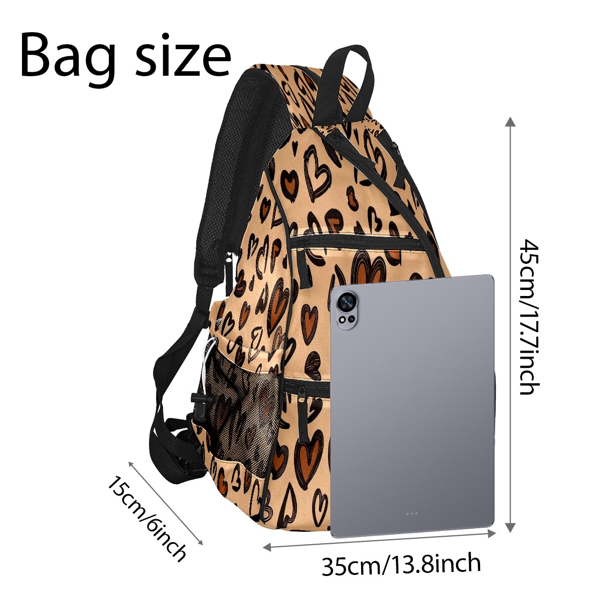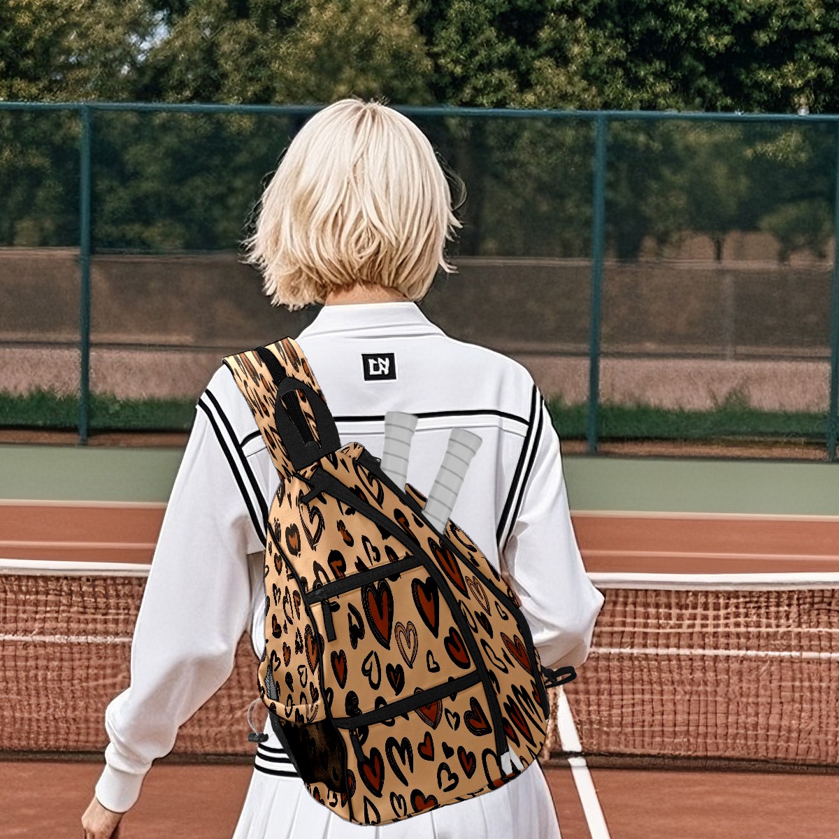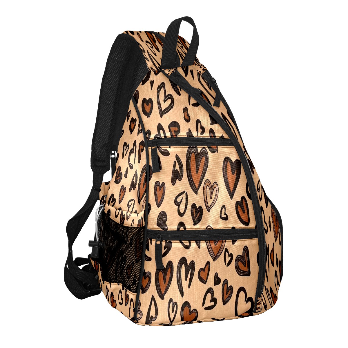 Pickleball Bag,Adjustable Shoulder Bag,Waterproof and Large Capacity,Pickleball Backpack for Men and Women Brown Love Heart