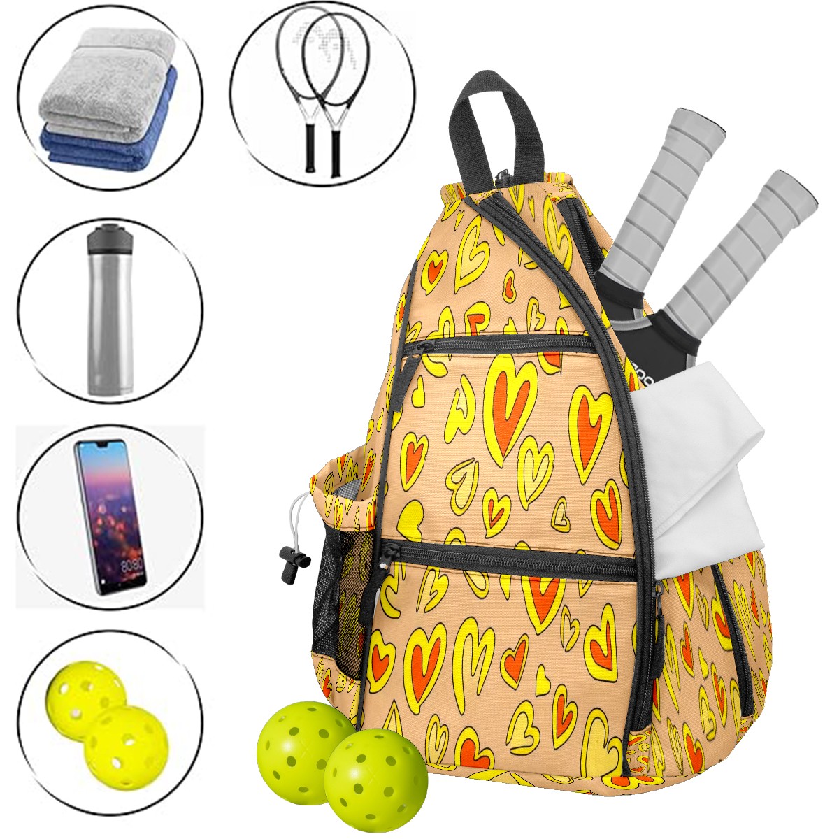 Pickleball Bag,Adjustable Shoulder Bag,Waterproof and Large Capacity,Pickleball Backpack for Men and Women Yellow Love Heart