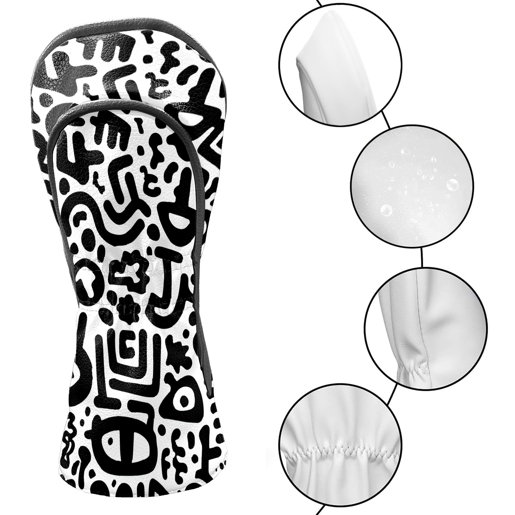 Golf Headcovers for Driver & Fairway Woods,Premium Plush Velvet Lining, Waterproof Black Doodle Golf Club Head Covers for Scratch Protection | Accessories Gifts for Men Women