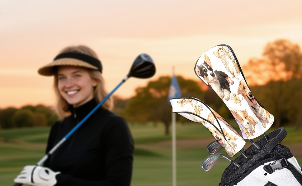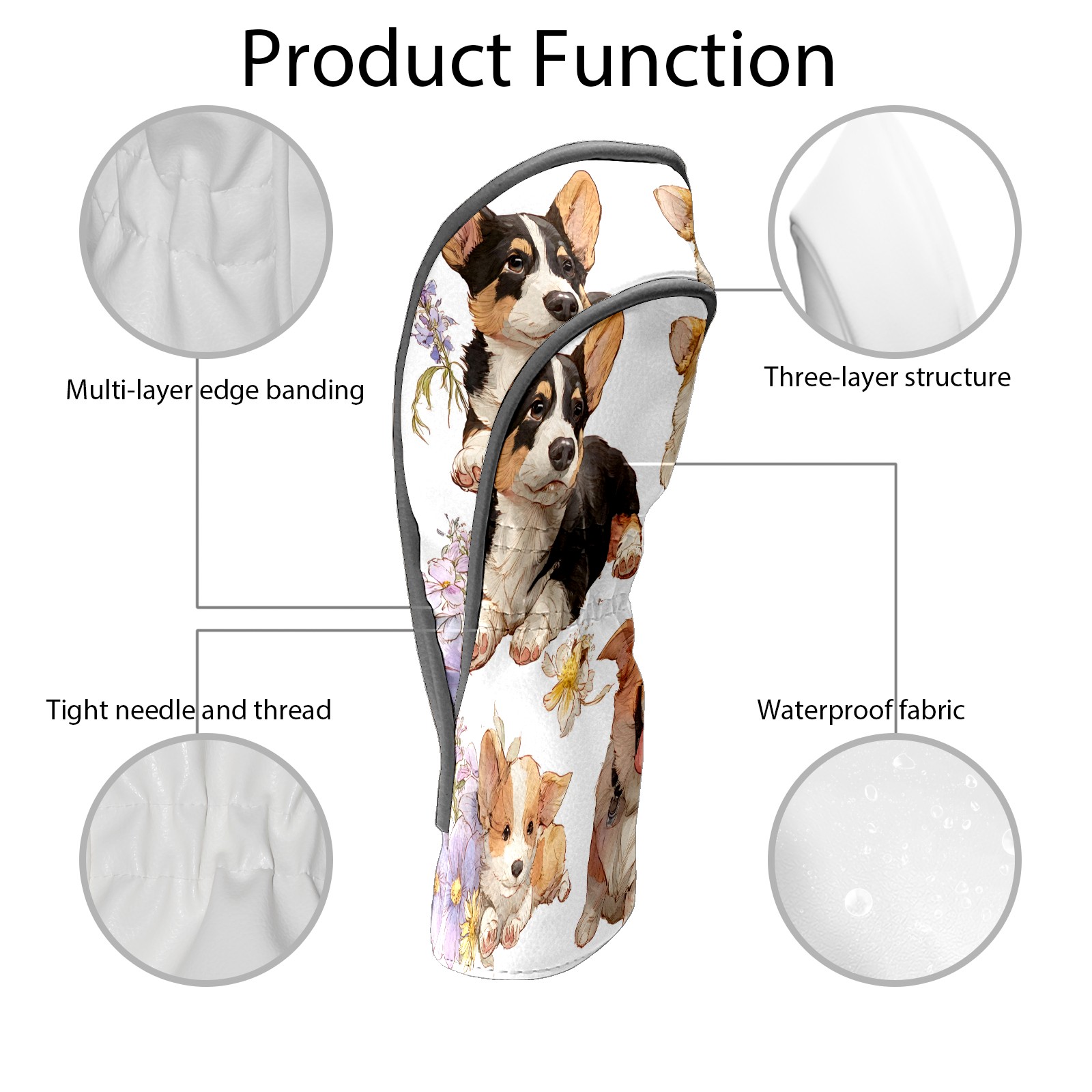 Golf Headcovers for Driver & Fairway Woods,Premium Plush Velvet Lining, Waterproof Brown CorgiGroup Golf Club Head Covers for Scratch Protection | Accessories Gifts for Men Women