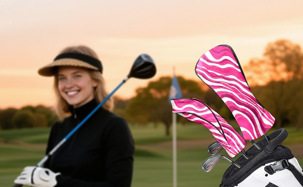 Golf Headcovers for Driver & Fairway Woods,Premium Plush Velvet Lining, Waterproof Pink Wave Golf Club Head Covers for Scratch Protection | Accessories Gifts for Men Women