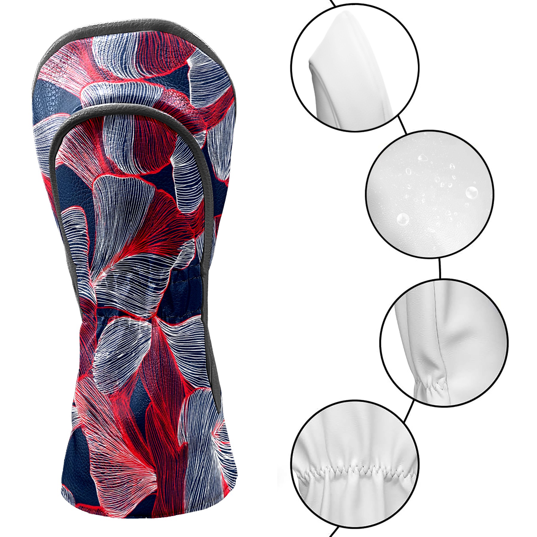 Golf Headcovers for Driver & Fairway Woods,Premium Plush Velvet Lining, Waterproof Red Leaf Golf Club Head Covers for Scratch Protection | Accessories Gifts for Men Women