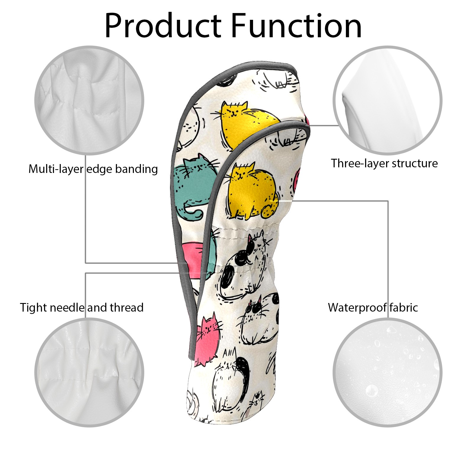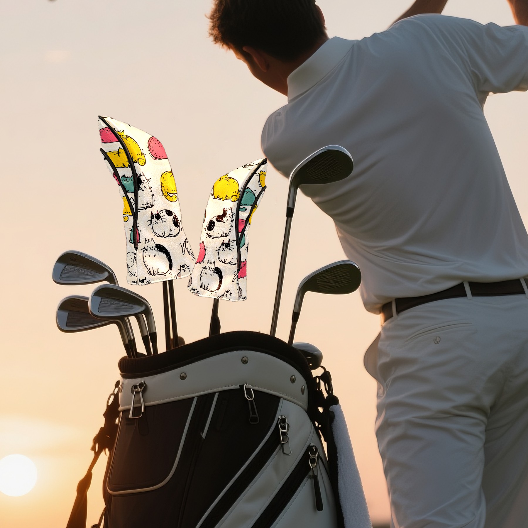 Golf Headcovers for Driver & Fairway Woods,Premium Plush Velvet Lining, Waterproof White Cat Golf Club Head Covers for Scratch Protection | Accessories Gifts for Men Women