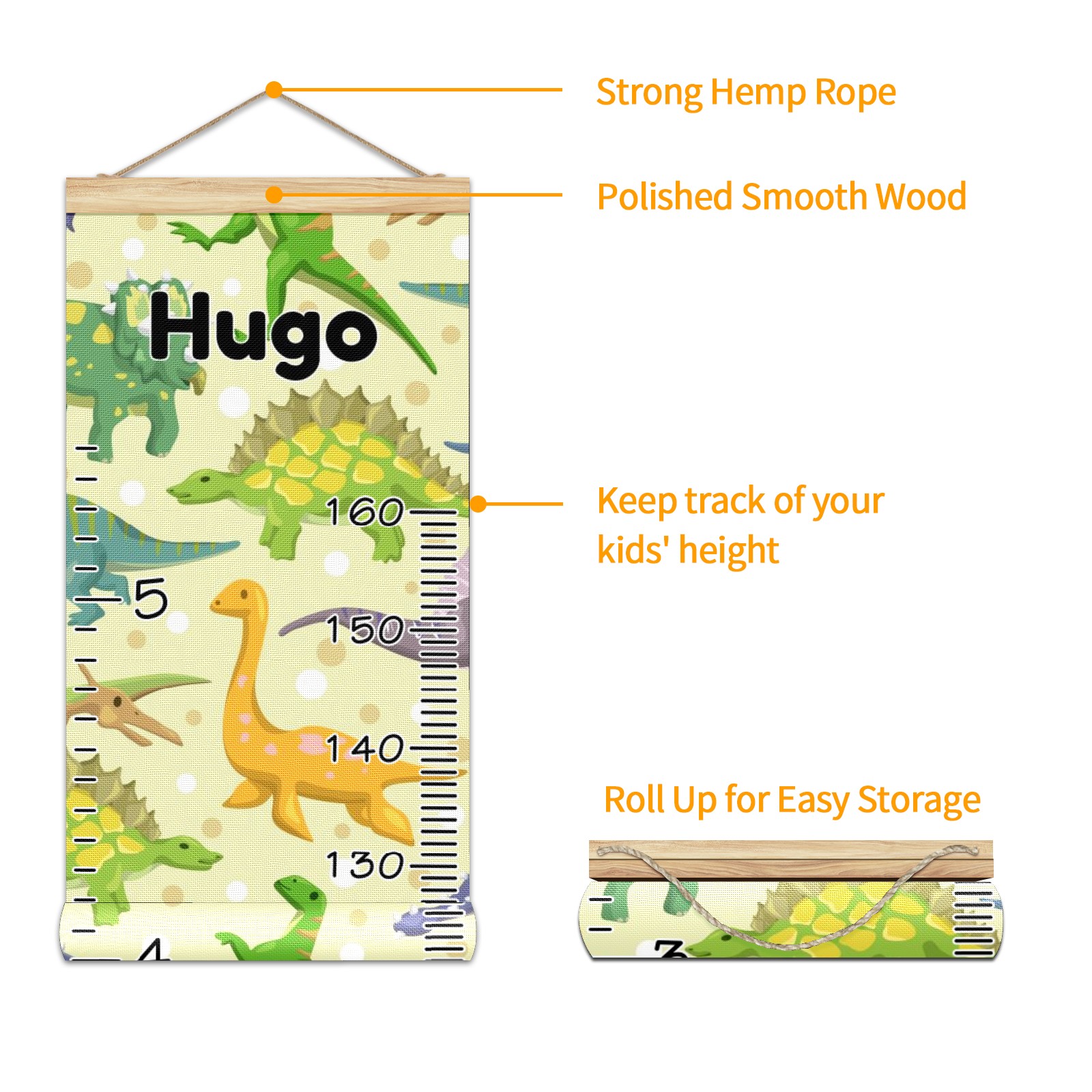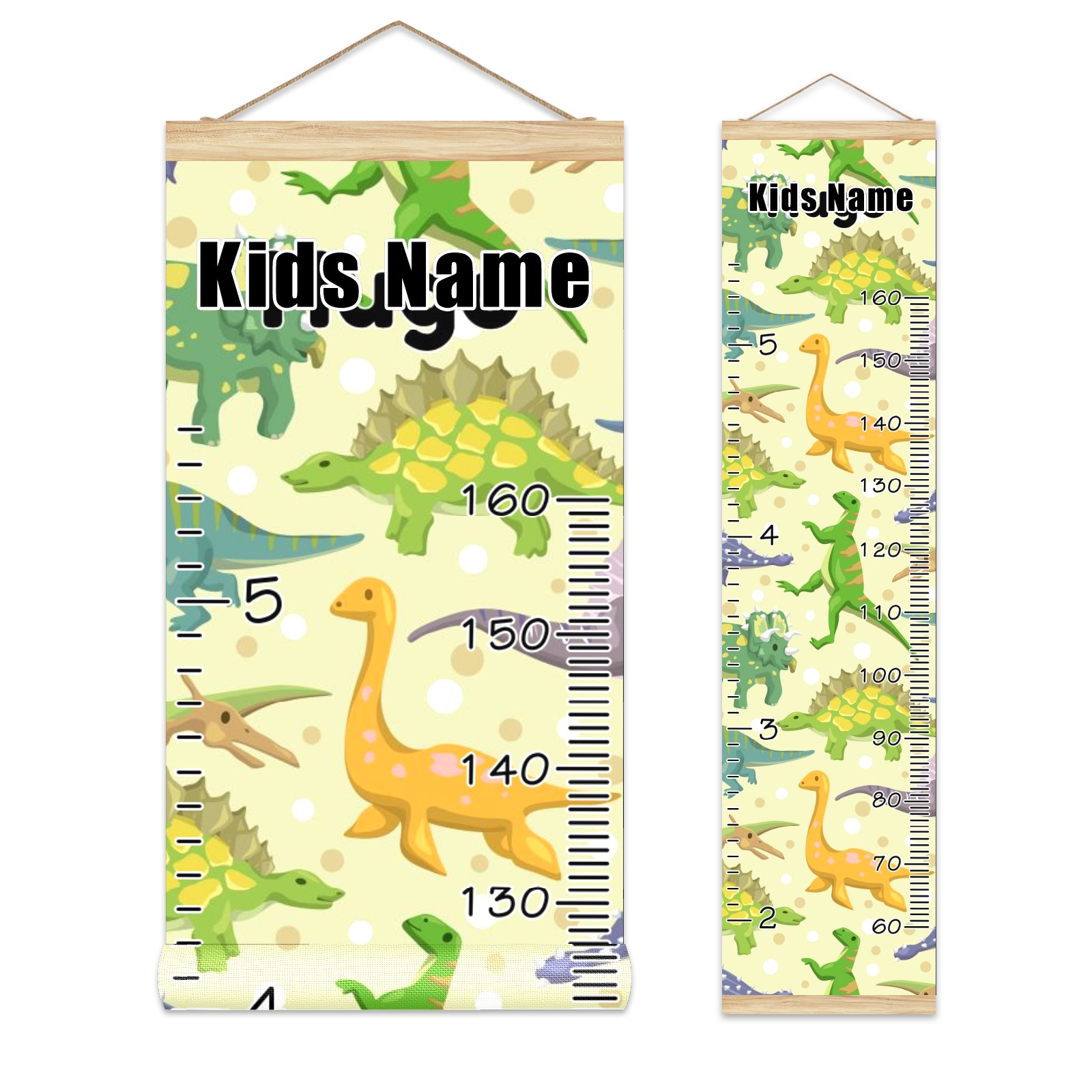 Personalized Kids Name Growth Chart Ruler for Wall Wood Frame Canvas Height Measure Chart 13.4x56 in Hanging Growth Chart Cartoon Dinosaur Animal9.15 Boys Girls Room Decor