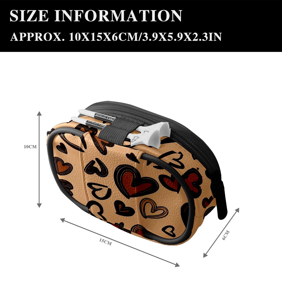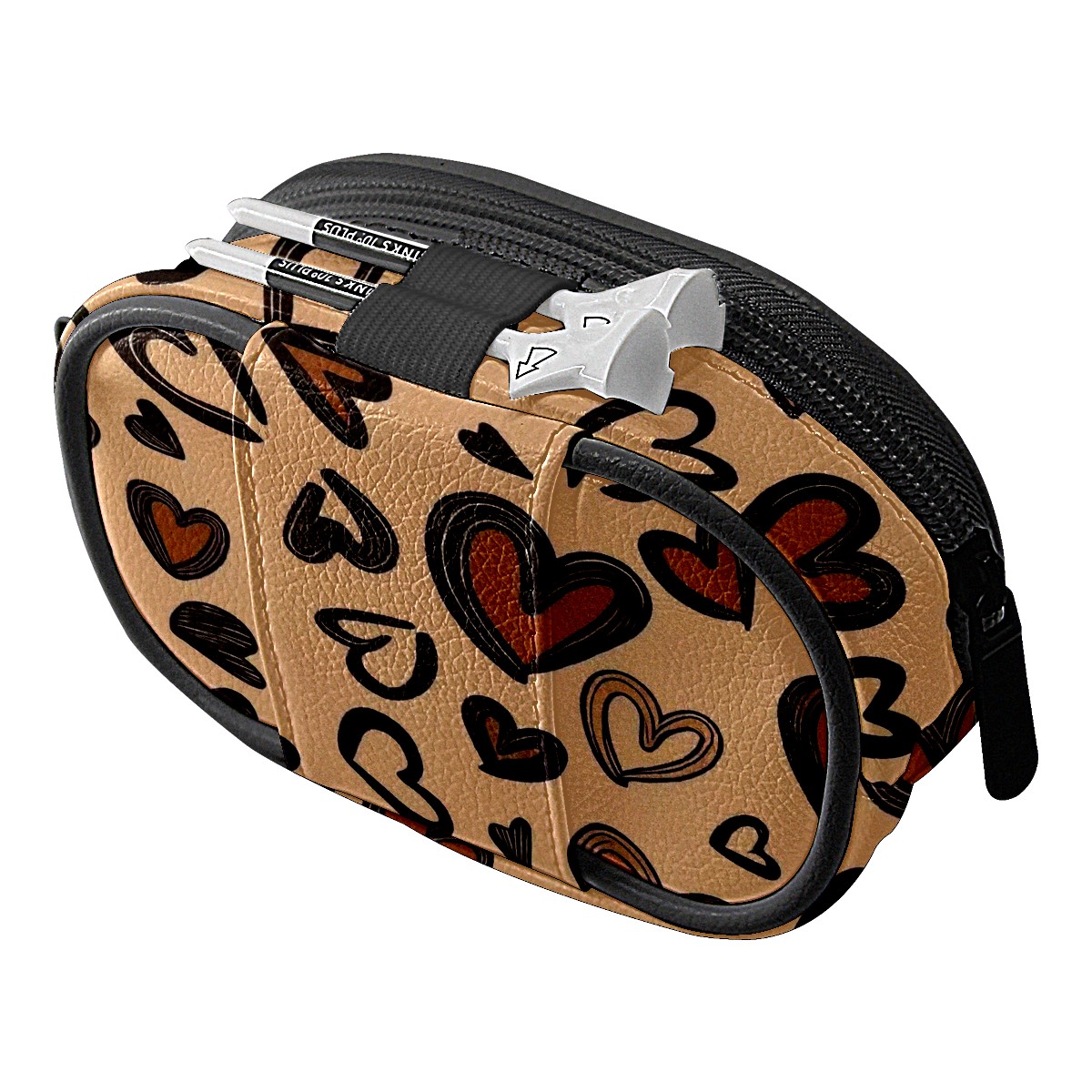 Golf Waist Bag,Premium Leather Golf Bag Can Hold 2 Golf Balls,with Hook,Valuables Bags for Men and Women Brown Love Heart