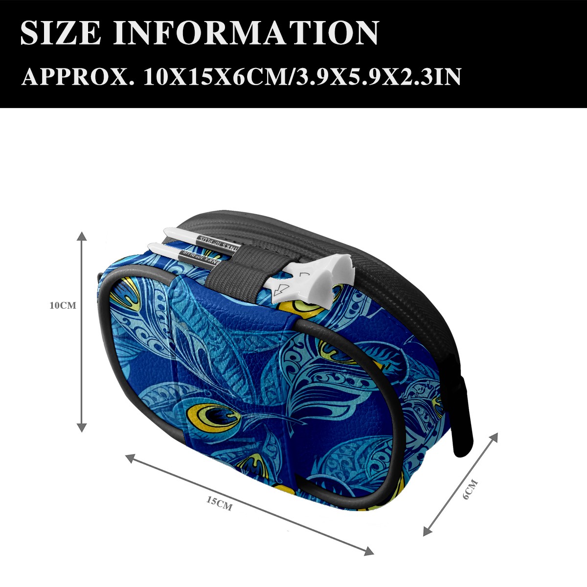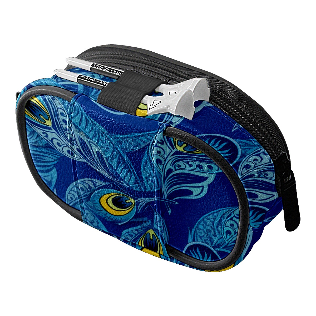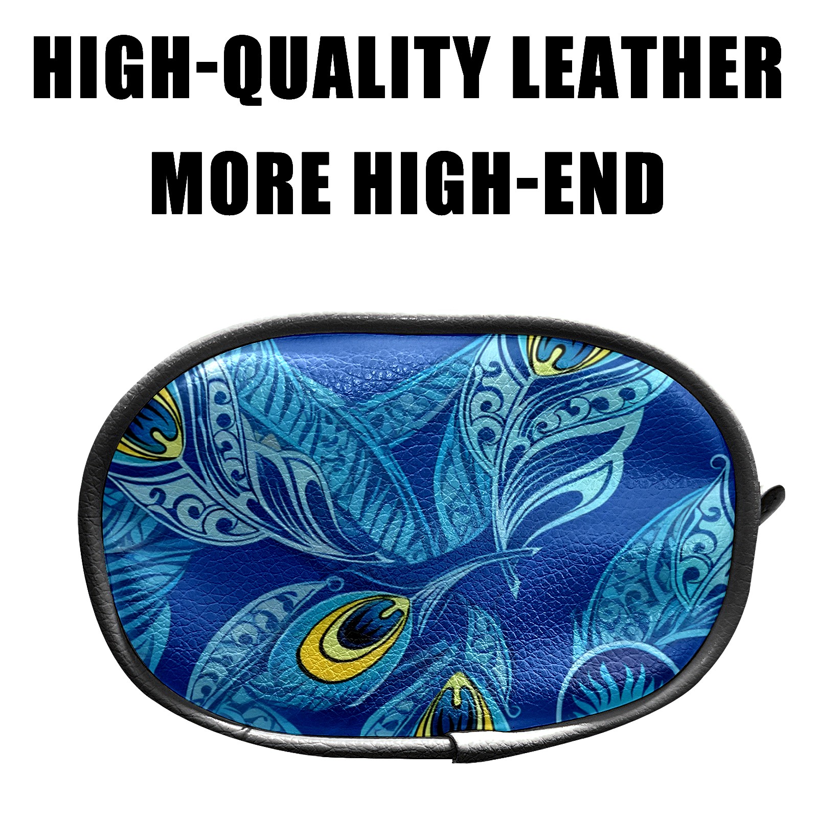 Golf Waist Bag,Premium Leather Golf Bag Can Hold 2 Golf Balls,with Hook,Valuables Bags for Men and Women Blue Peacock Feathers
