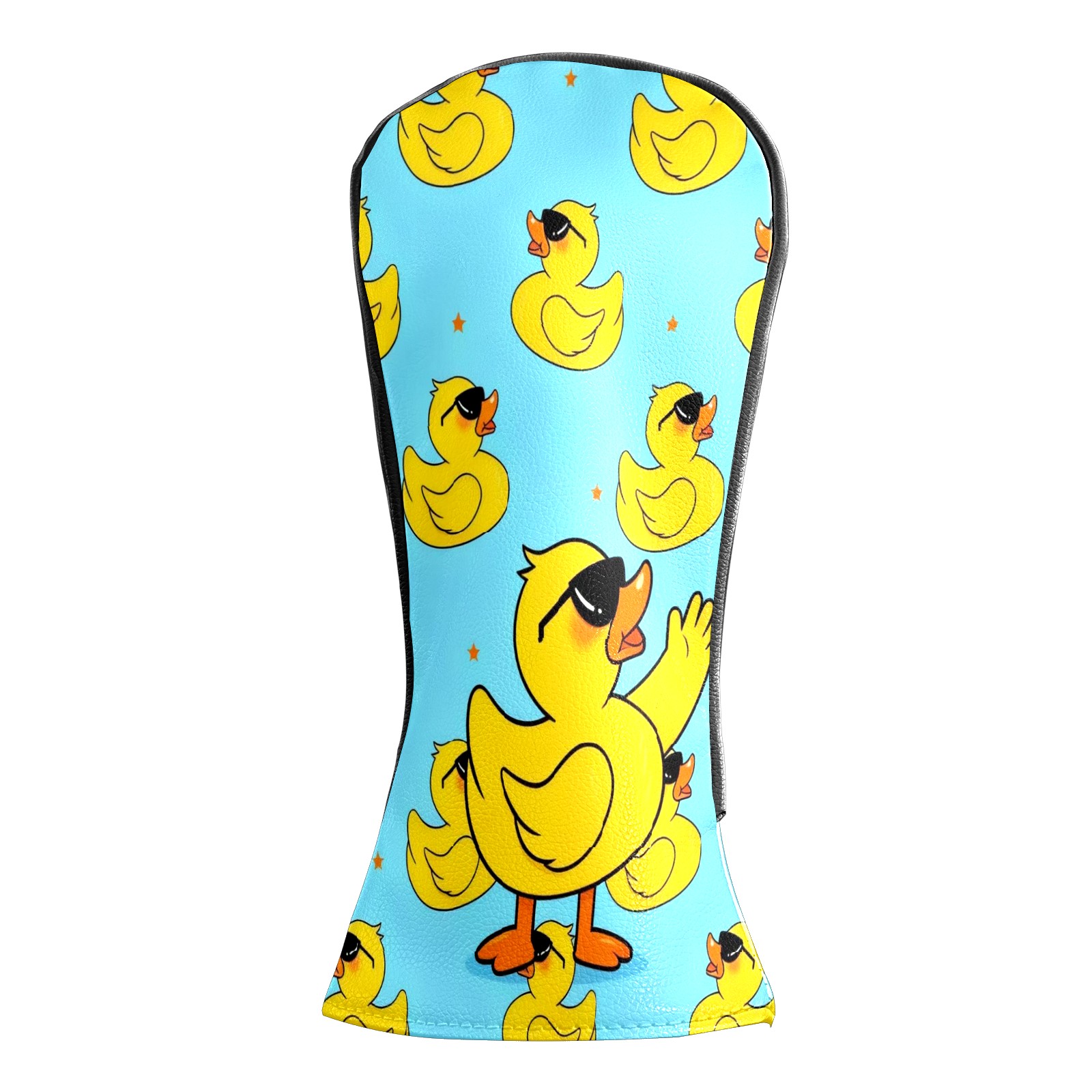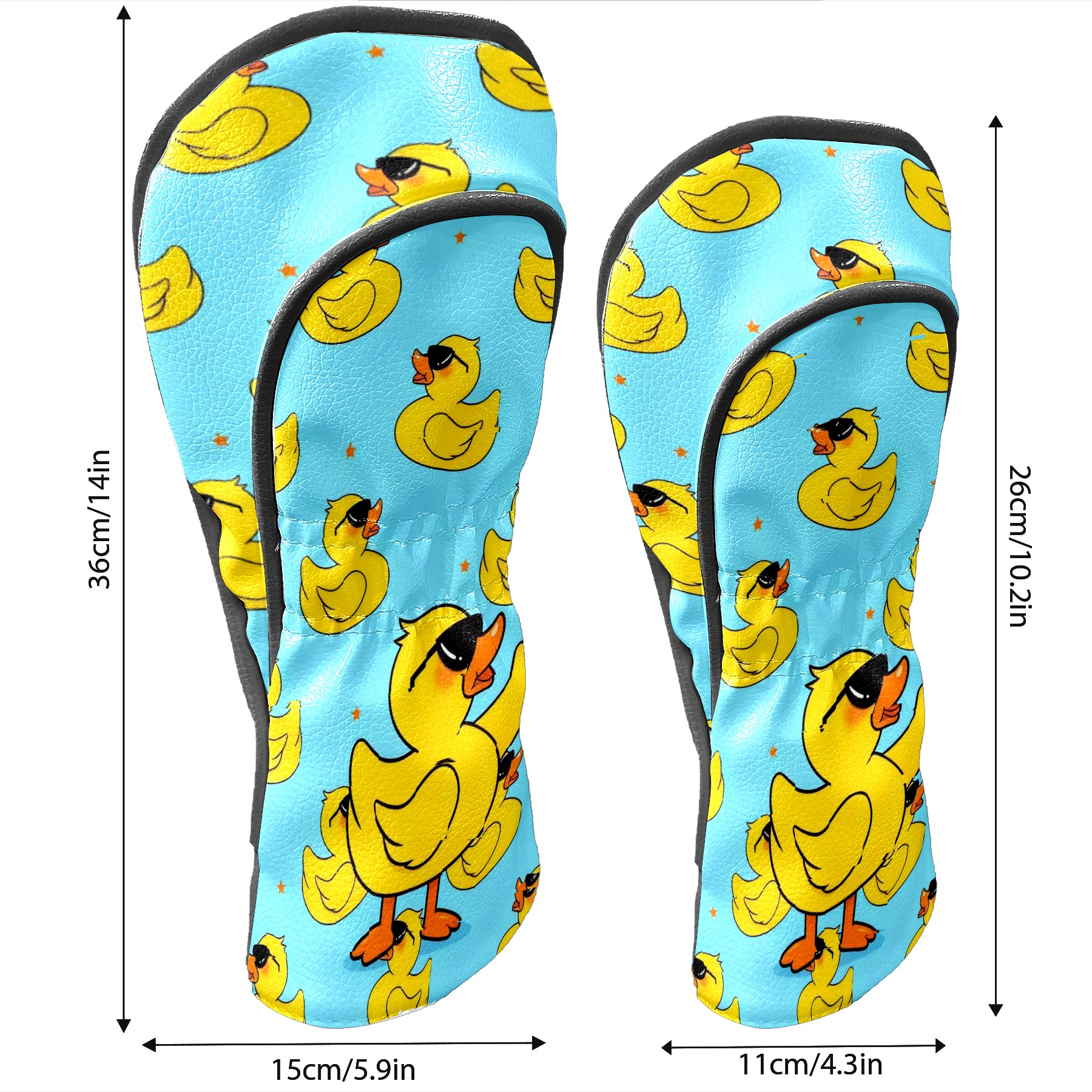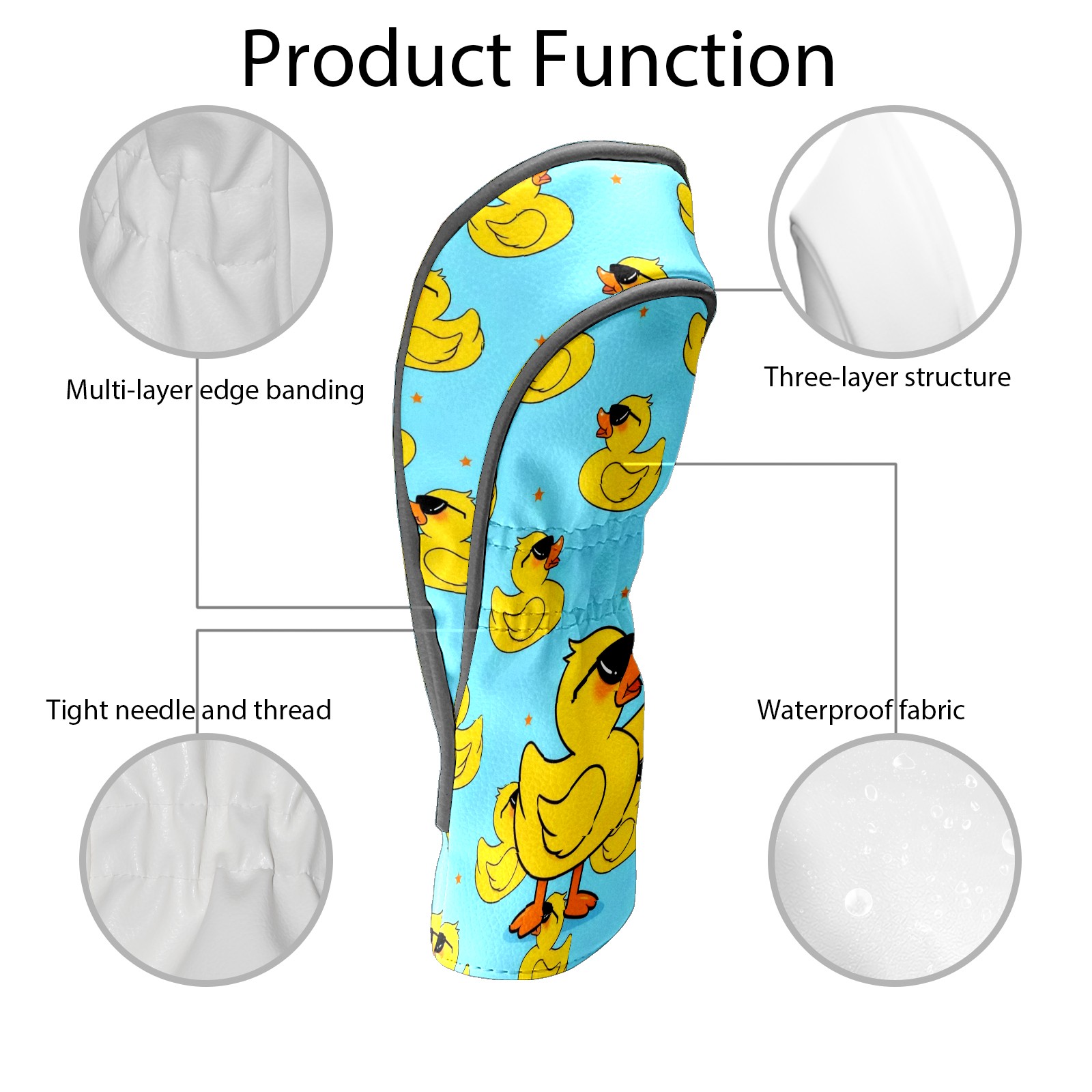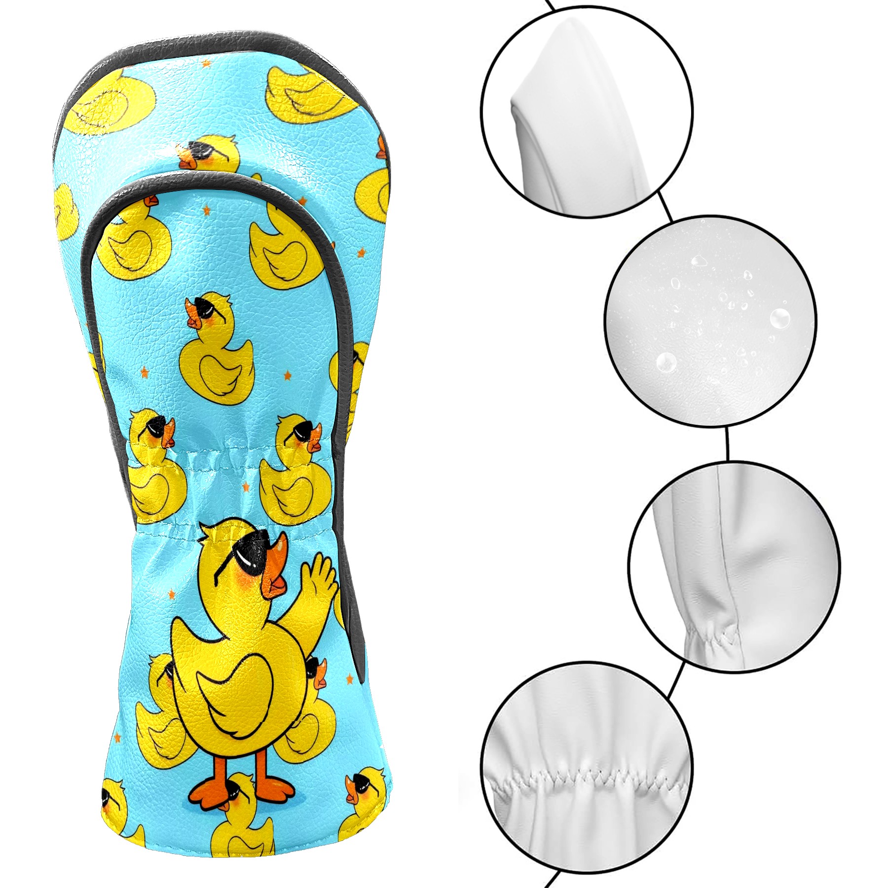 Golf Club Covers PU Leather Waterproof Golf Club Head Covers for Fairway Woods and Hybrids Cartoon Yellow Duck Unisex Suitable for Most Brands