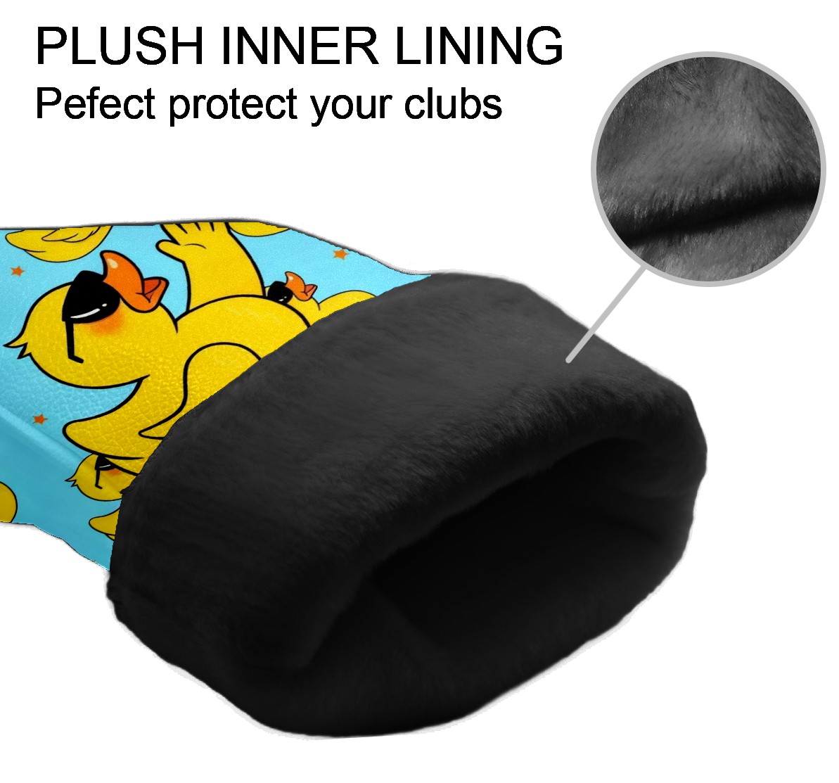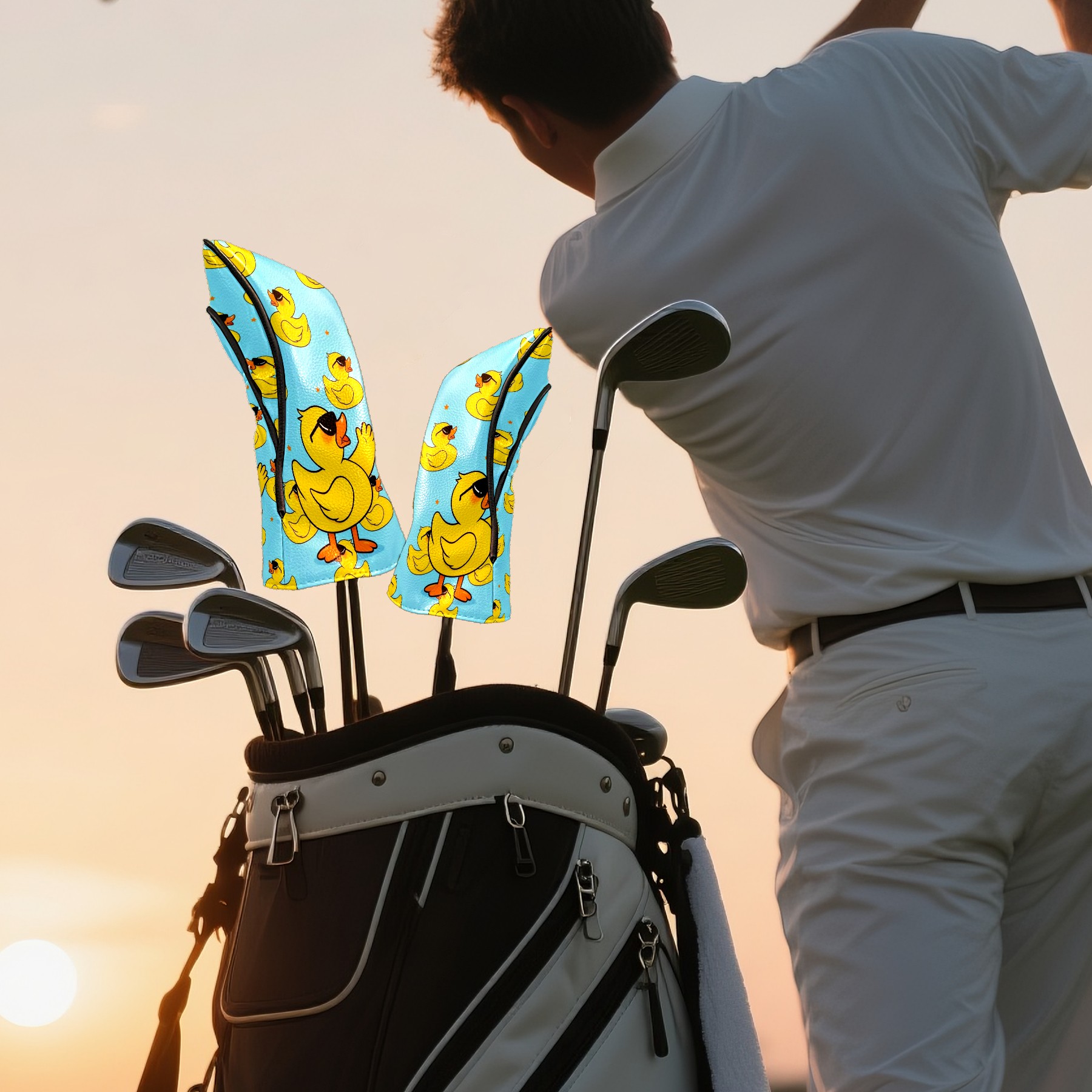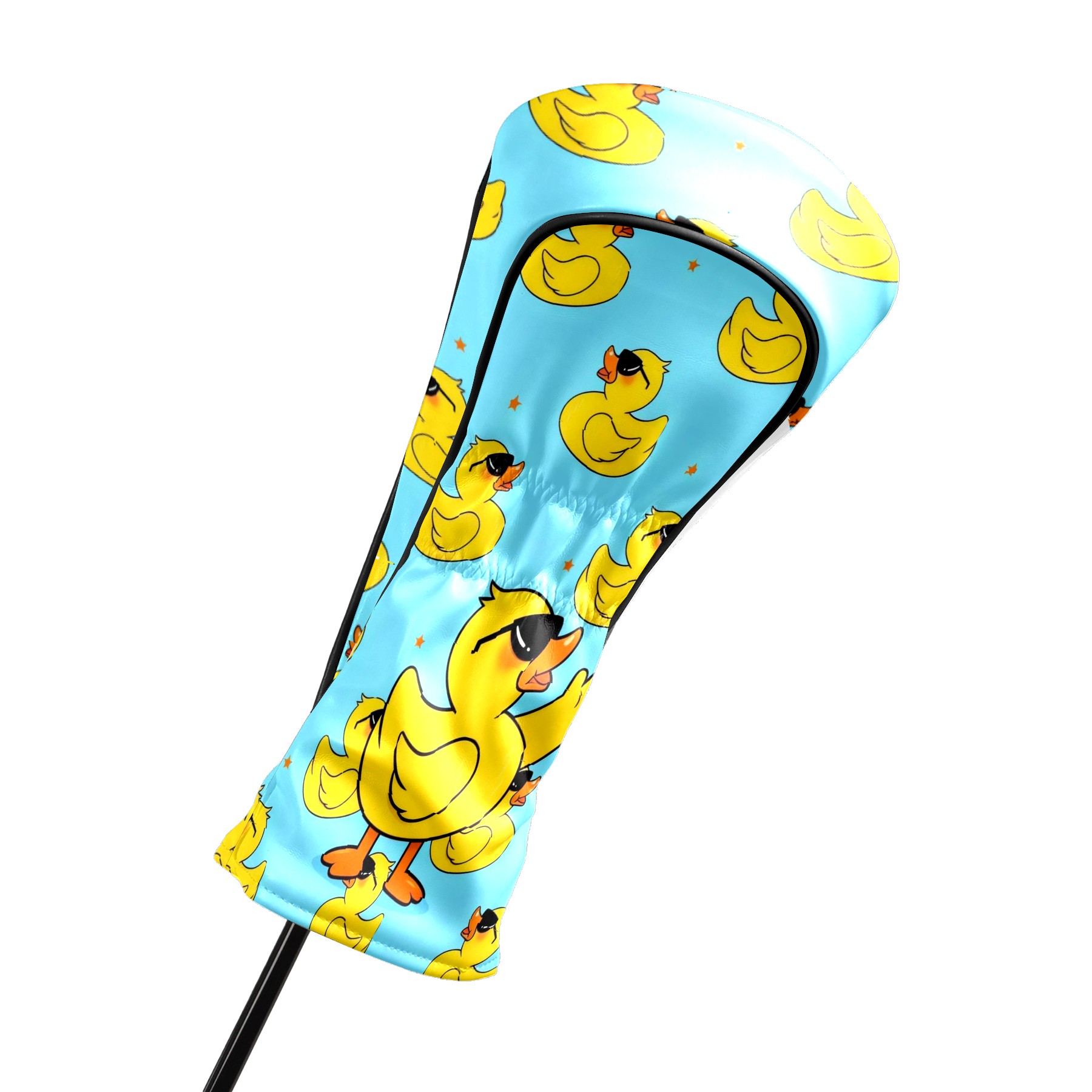 Golf Club Covers PU Leather Waterproof Golf Club Head Covers for Fairway Woods and Hybrids Cartoon Yellow Duck Unisex Suitable for Most Brands