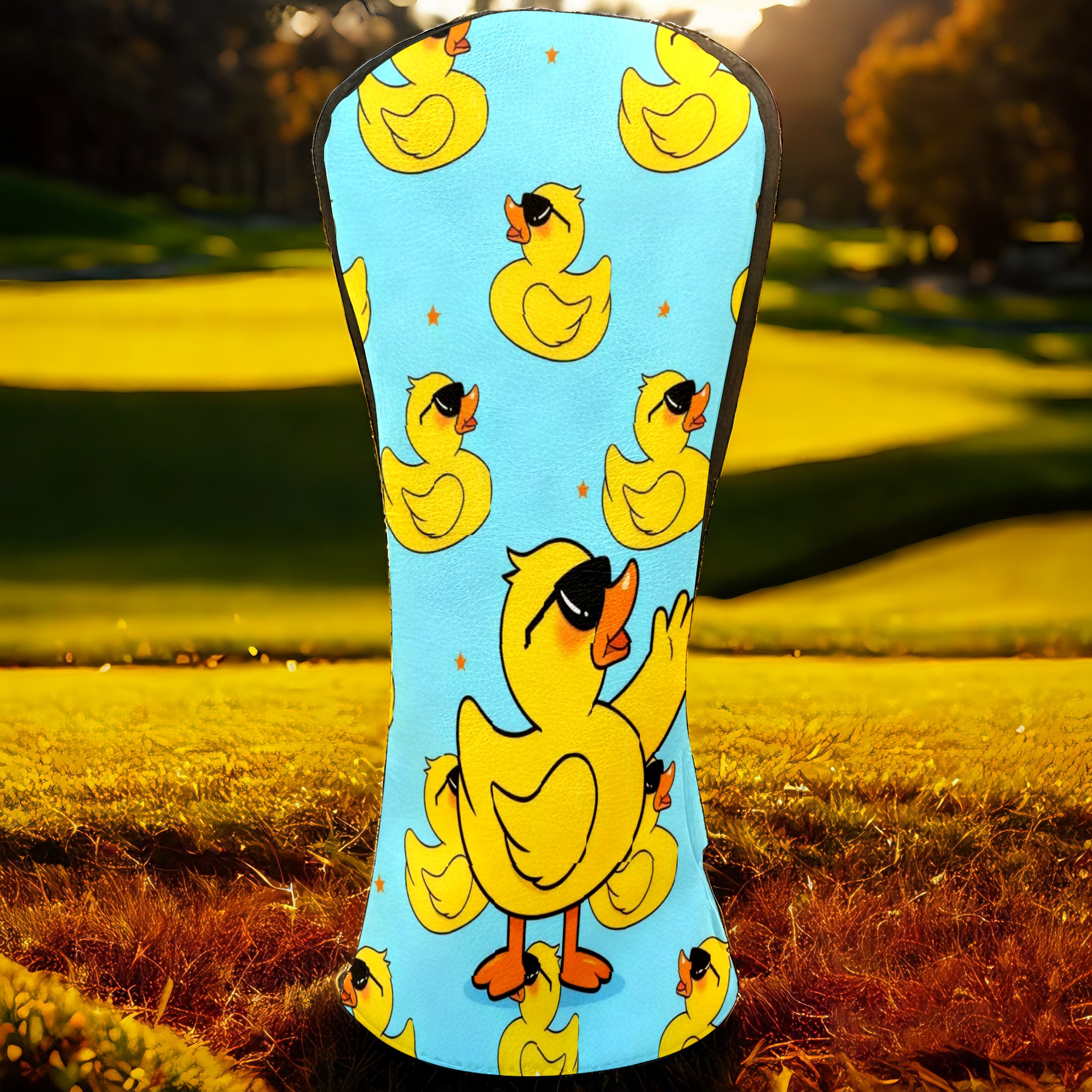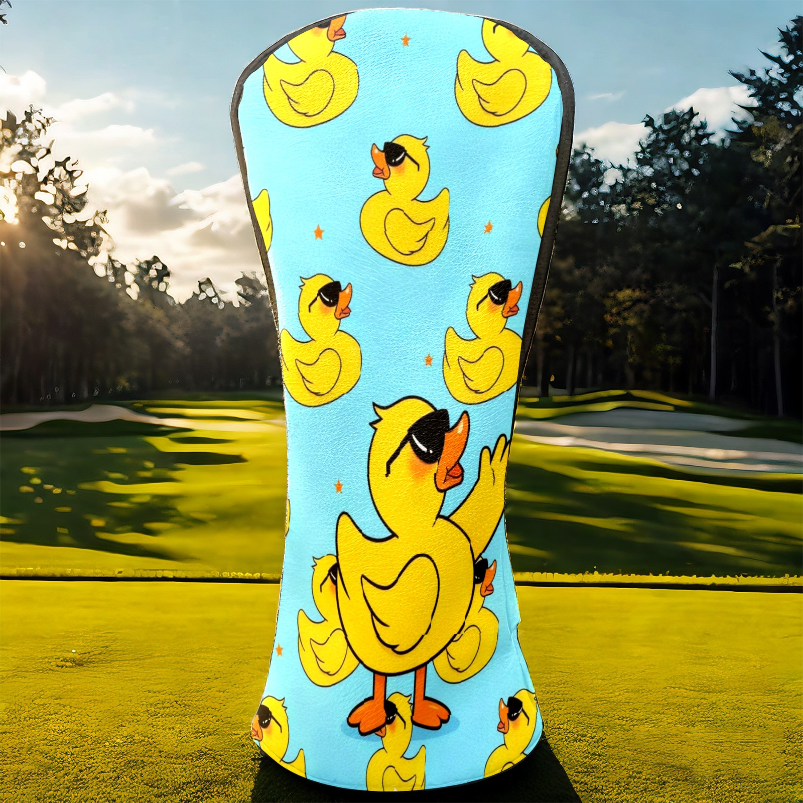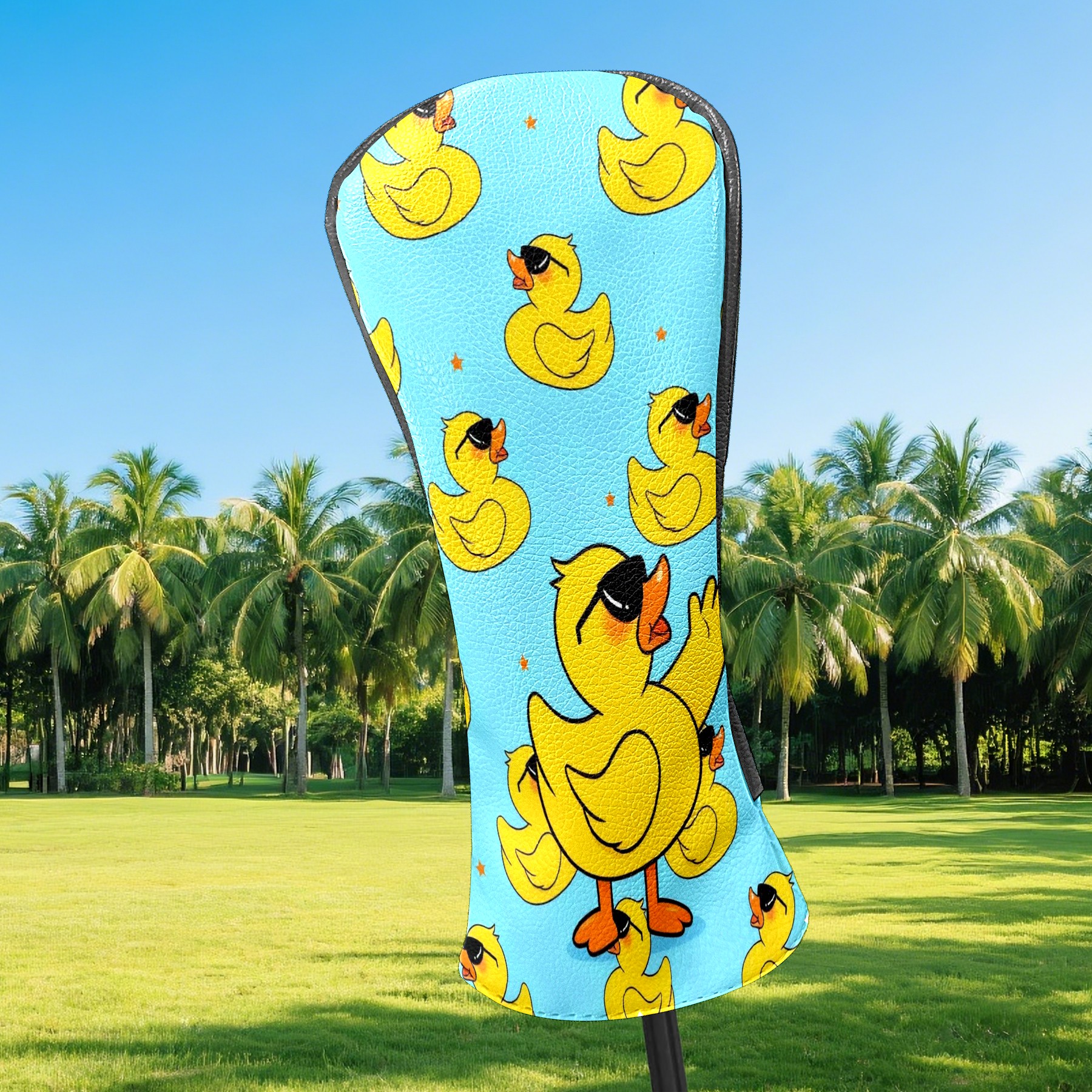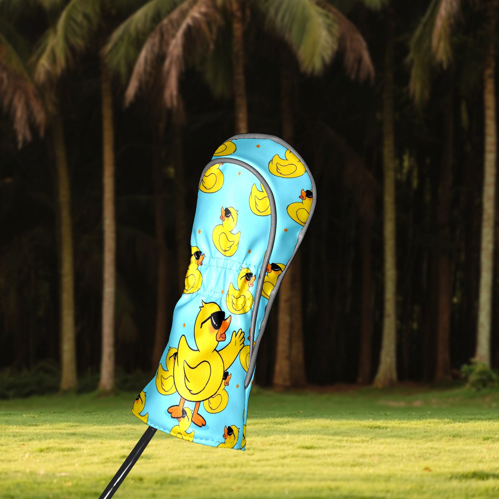 Golf Club Covers PU Leather Waterproof Golf Club Head Covers for Fairway Woods and Hybrids Cartoon Yellow Duck Unisex Suitable for Most Brands