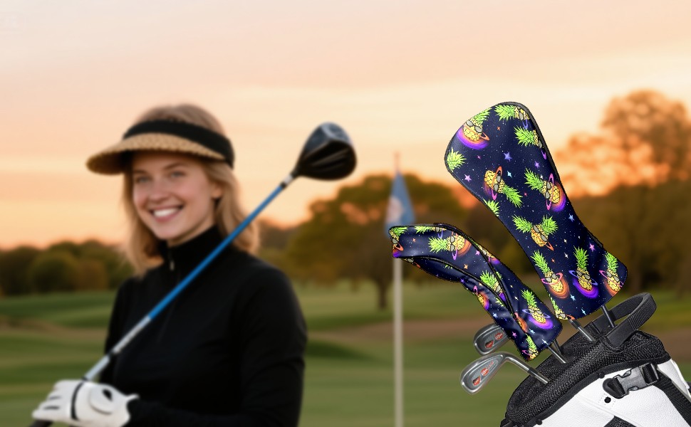 Golf Club Covers PU Leather Waterproof Golf Club Head Covers for Fairway Woods and Hybrids Pineapple Unisex Suitable for Most Brands
