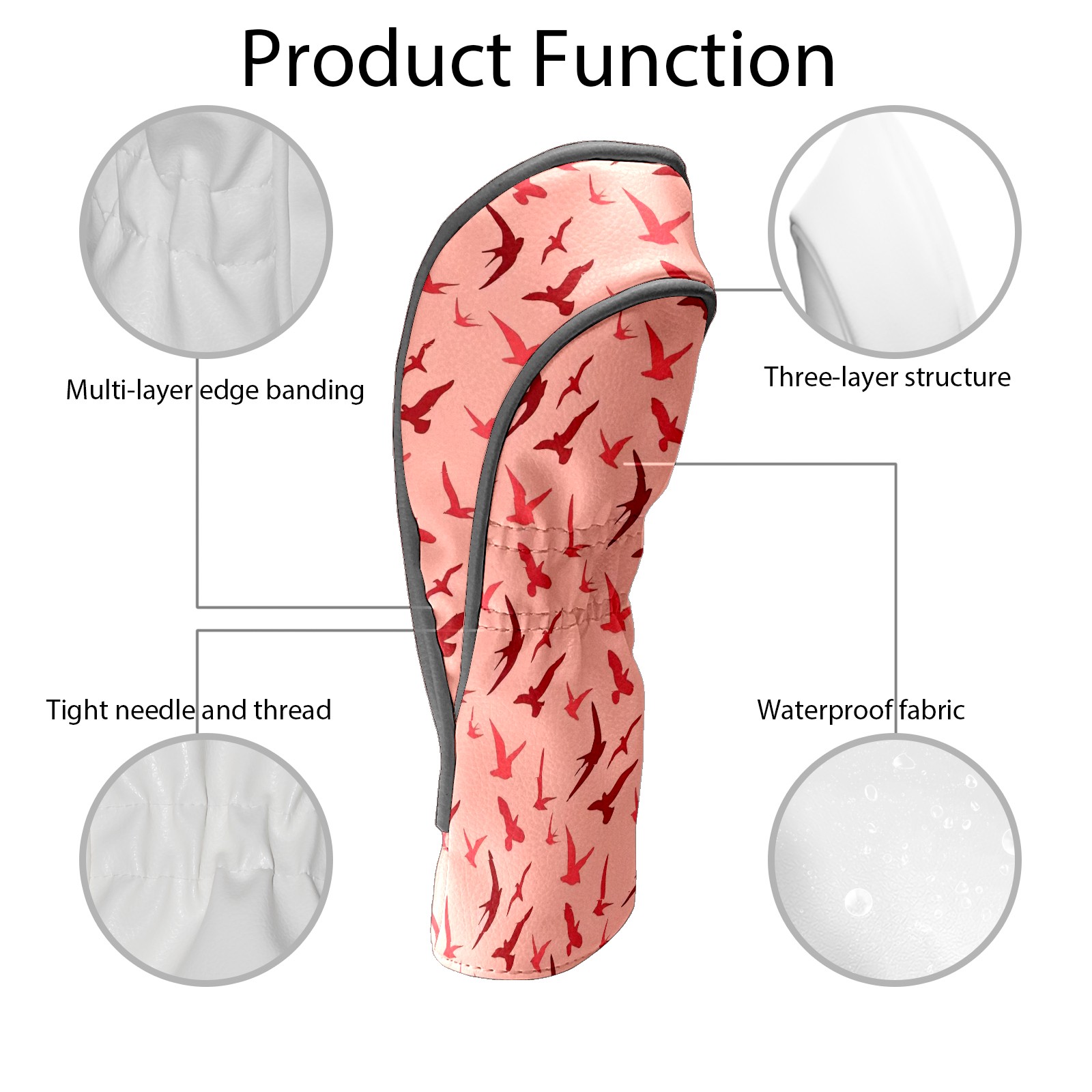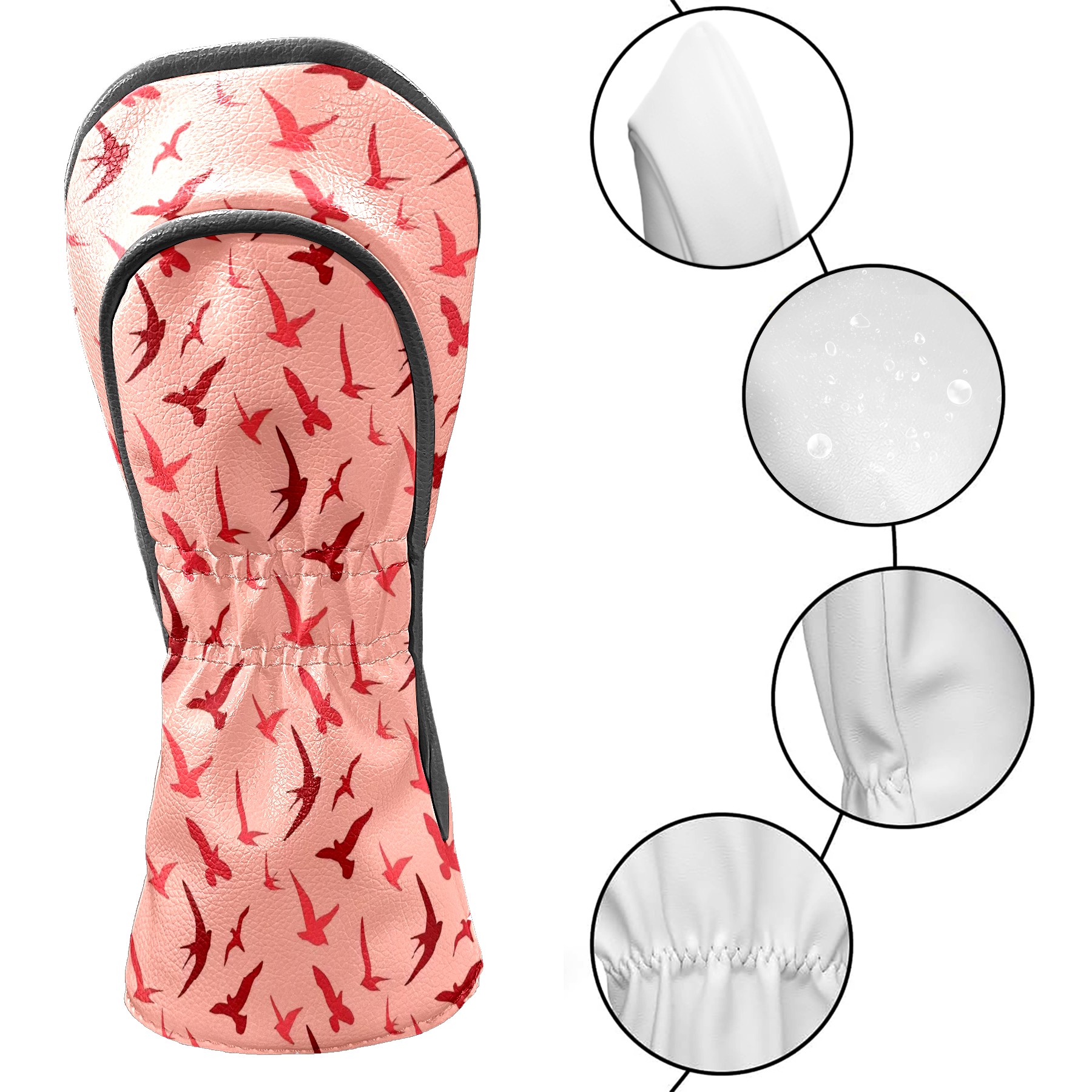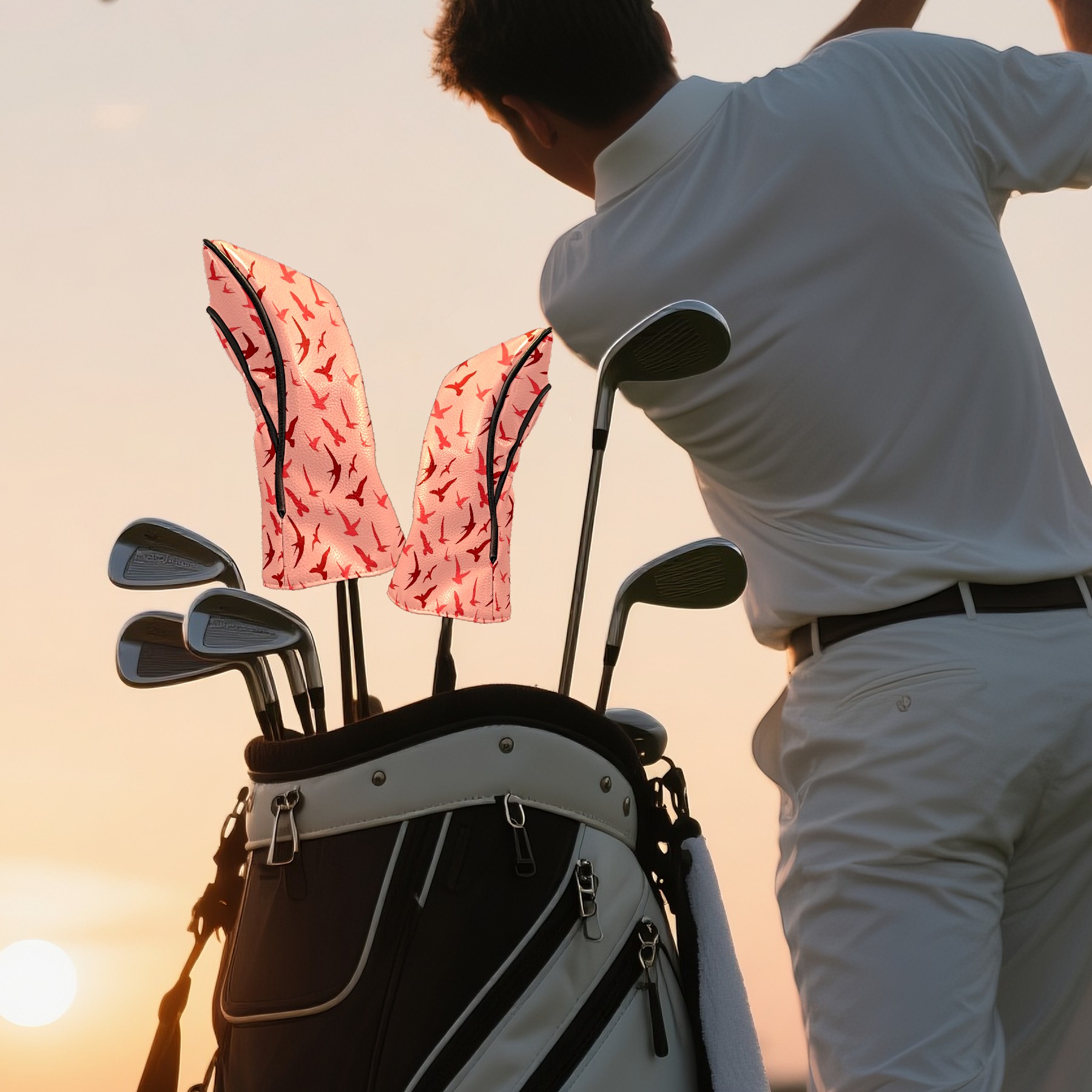 Golf Club Covers PU Leather Waterproof Golf Club Head Covers for Fairway Woods and Hybrids Flying Bird Pattern Unisex Suitable for Most Brands