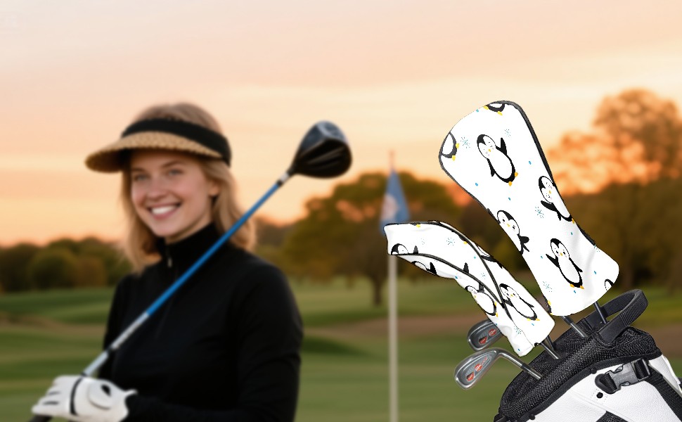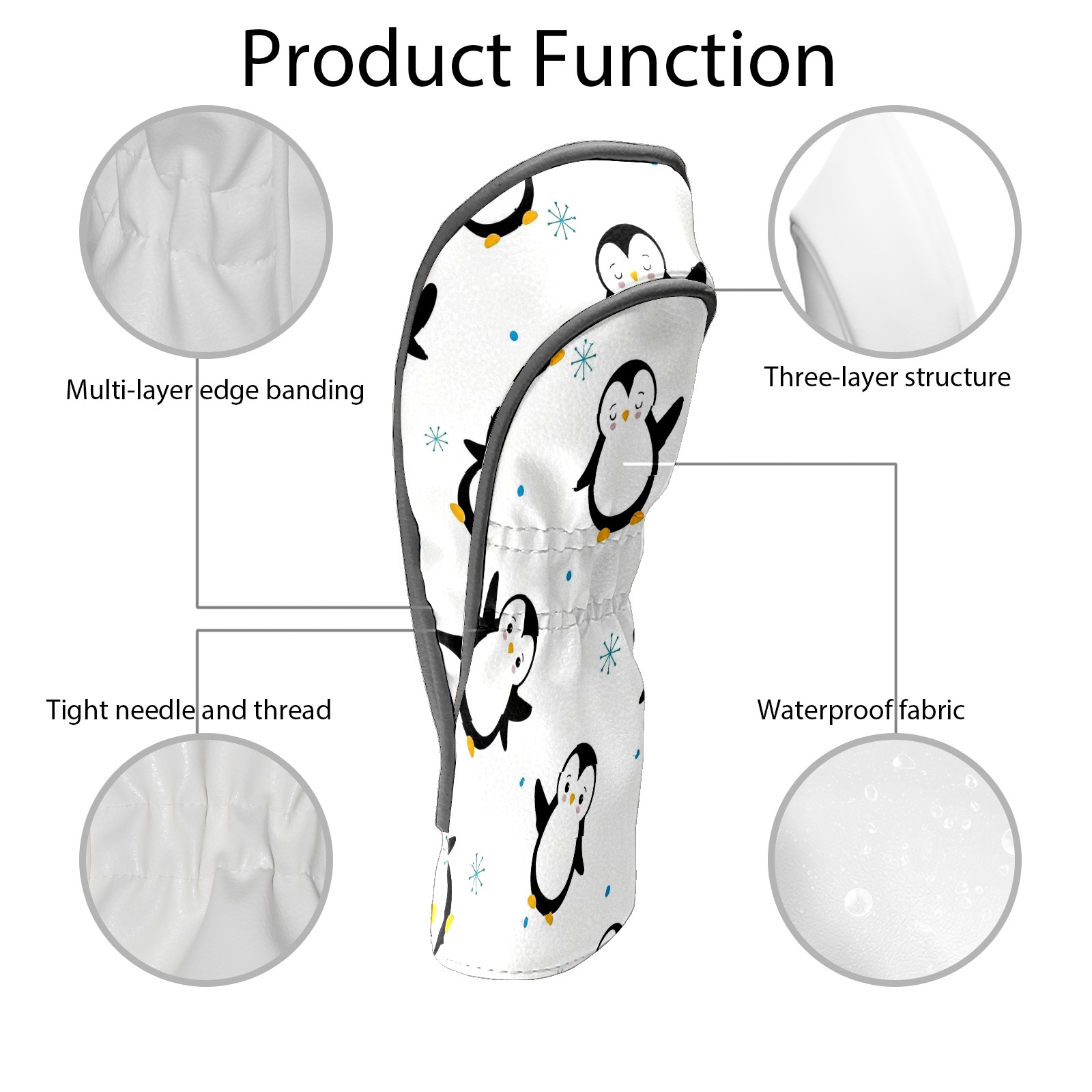 Golf Club Covers PU Leather Waterproof Golf Club Head Covers for Fairway Woods and Hybrids Penguin Unisex Suitable for Most Brands