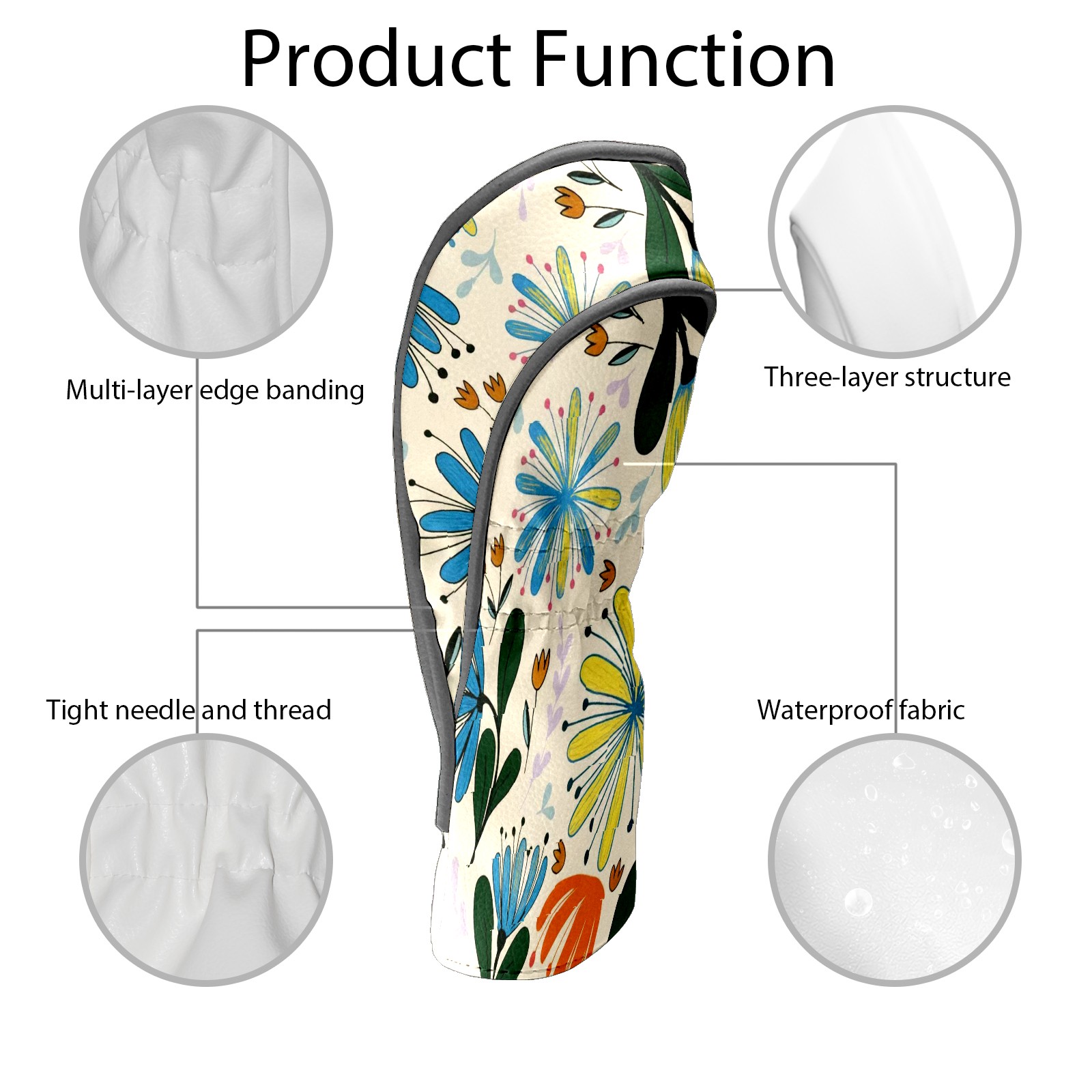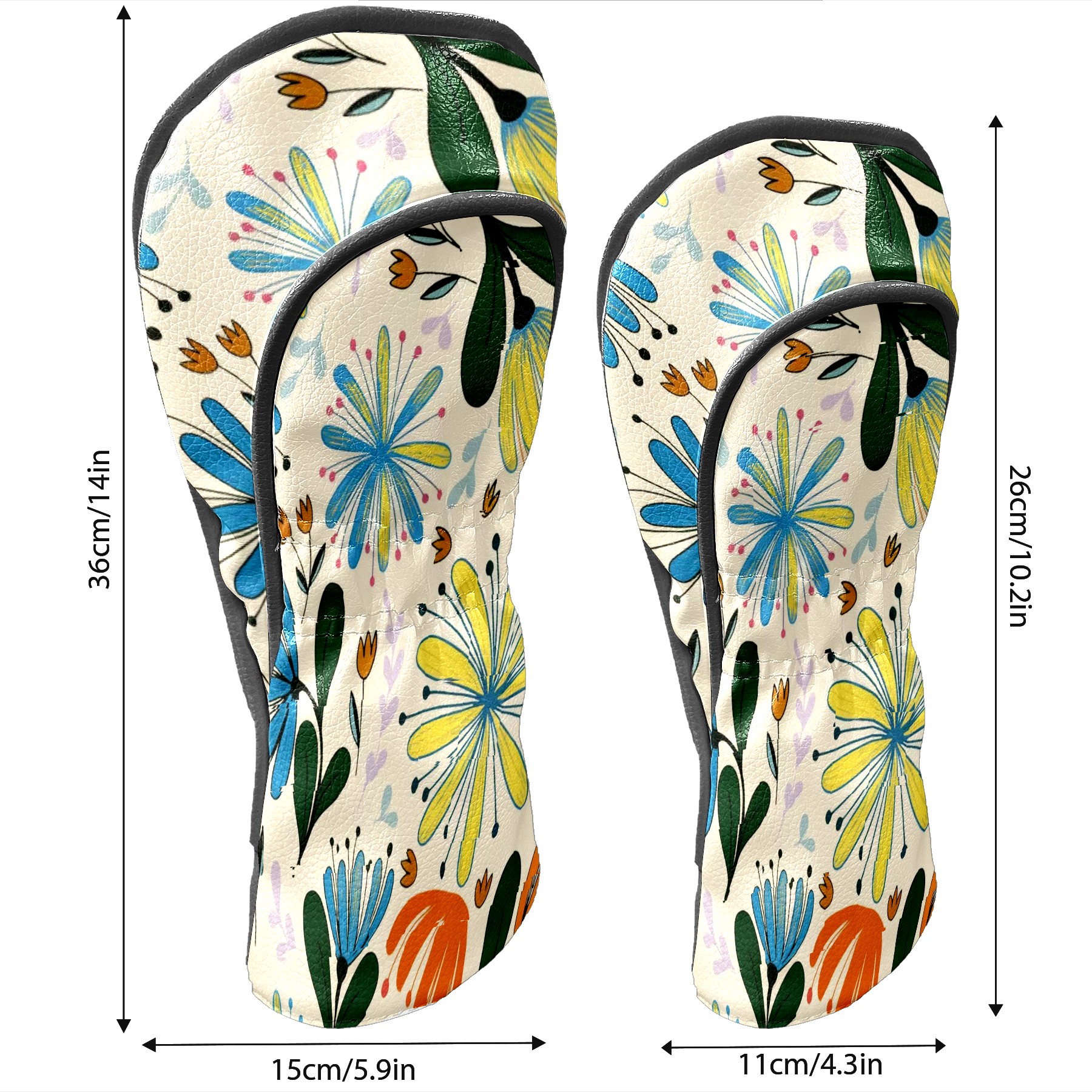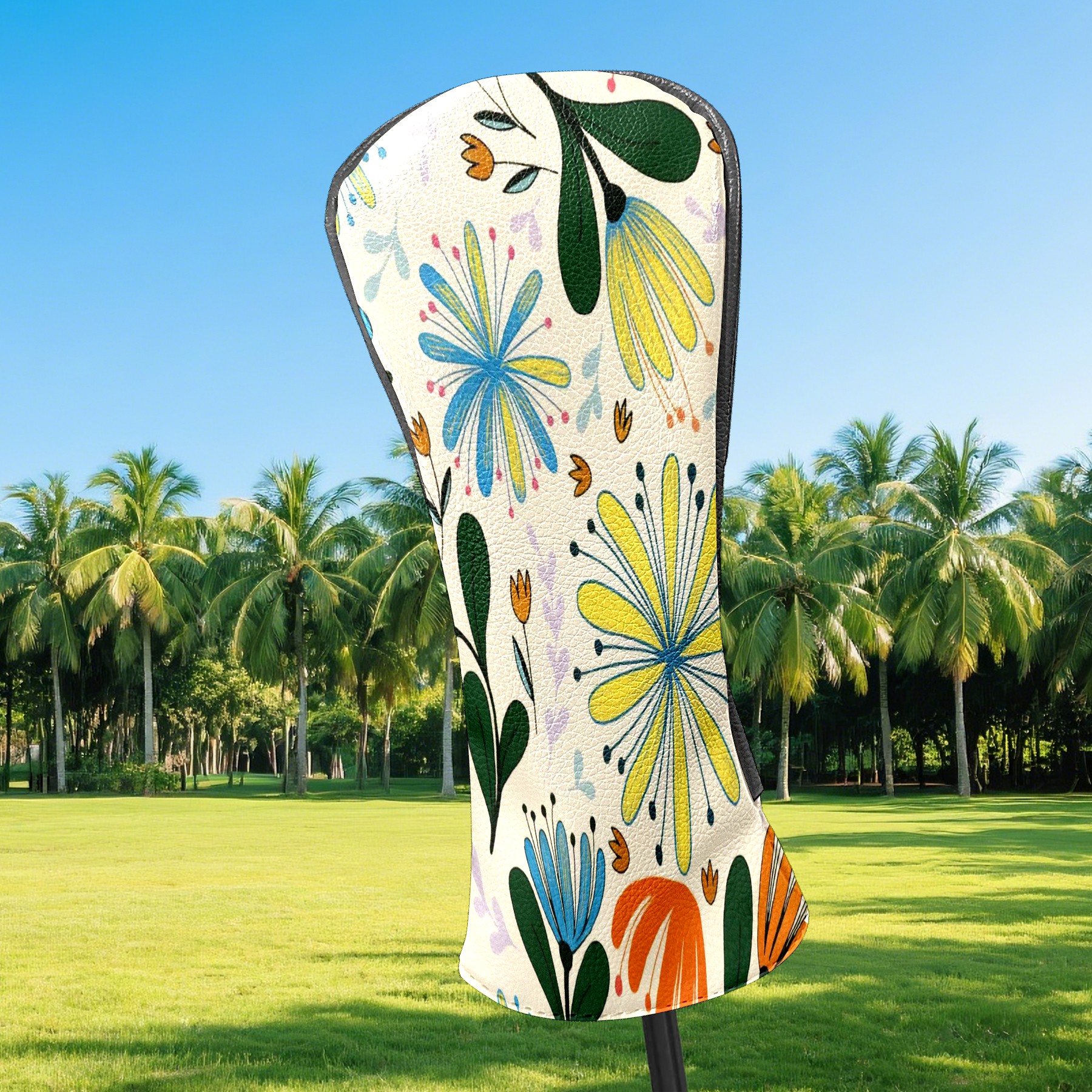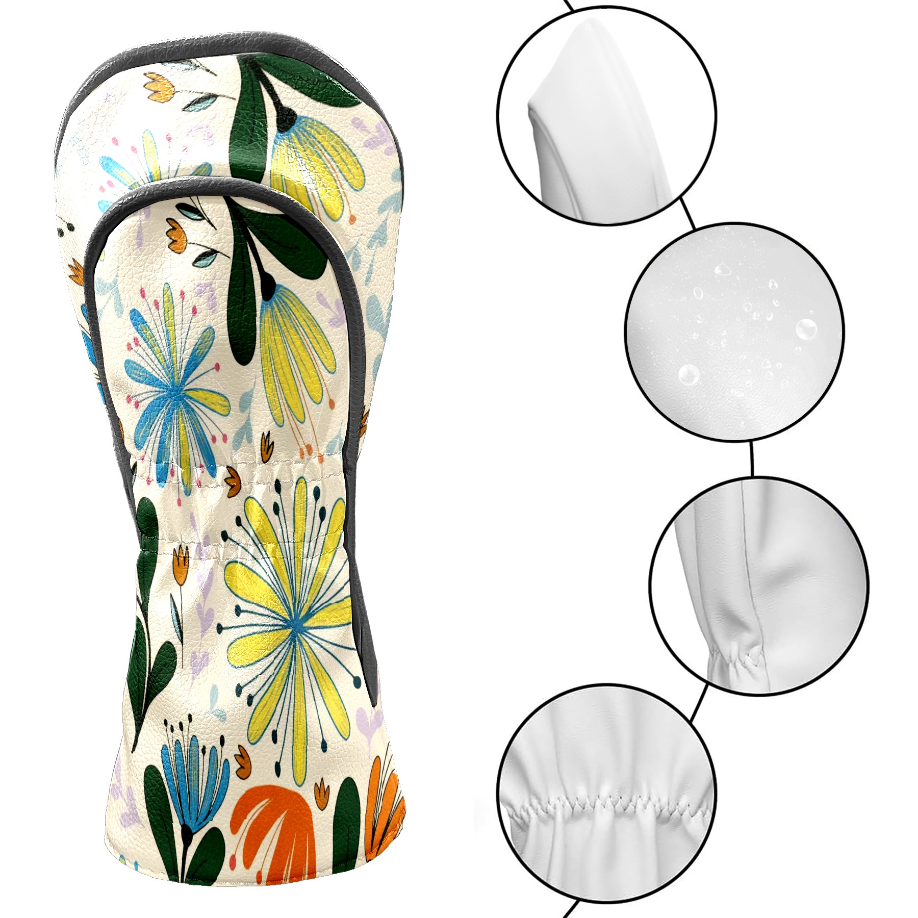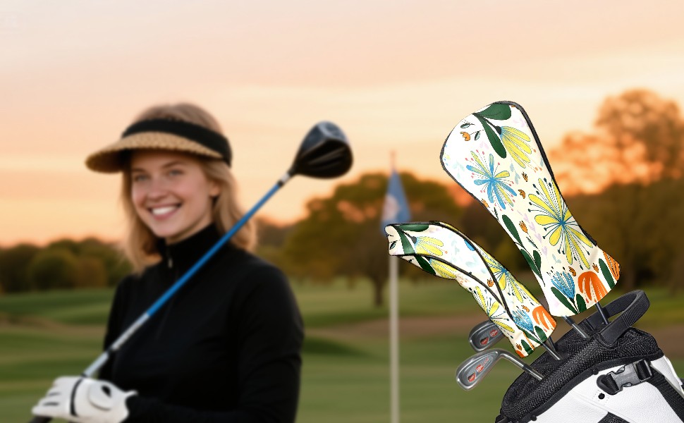 Golf Club Covers PU Leather Waterproof Golf Club Head Covers for Fairway Woods and Hybrids Colorful Flowers Unisex Suitable for Most Brands