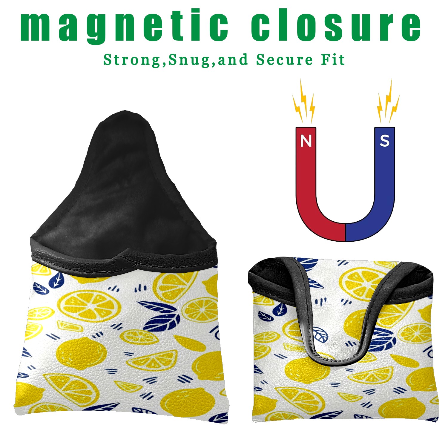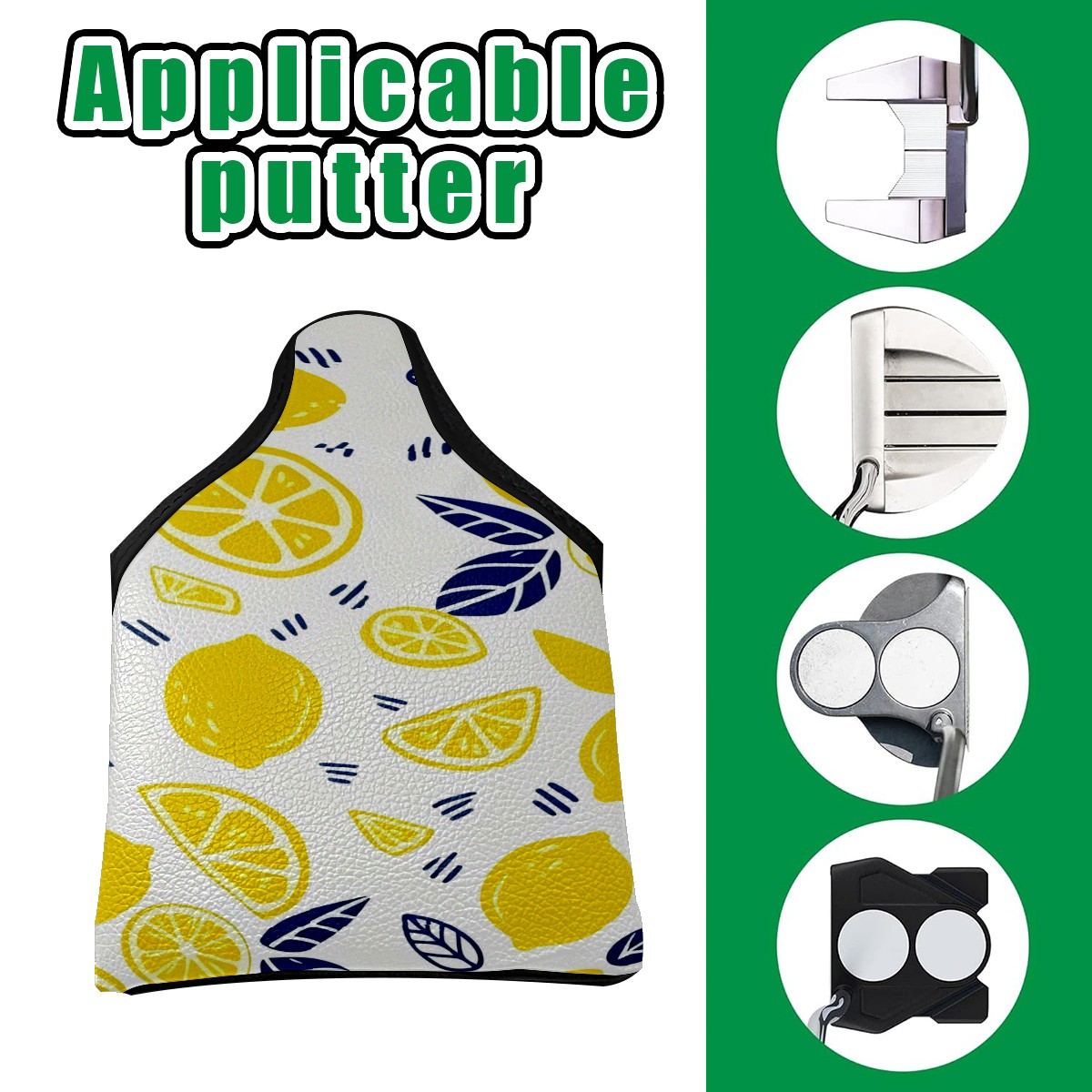 Mallet Putter Cover, PU Leather and Waterproof Golf Putter Cover, Golf Club Protective Case Fits Most Mallet Putters, Easily Slips on and Secures Lemon
