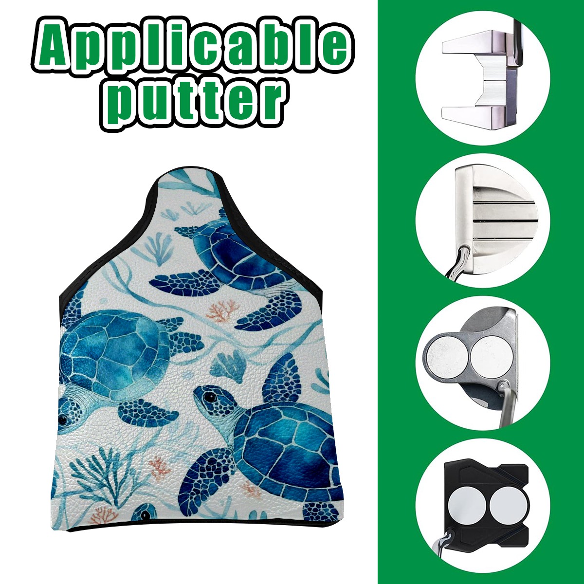 Golf Mallet Putter Cover Premium Leather Golf Putter Head Cover with Magnetic Closure Golf Cover for Men and Women Blue Turtle