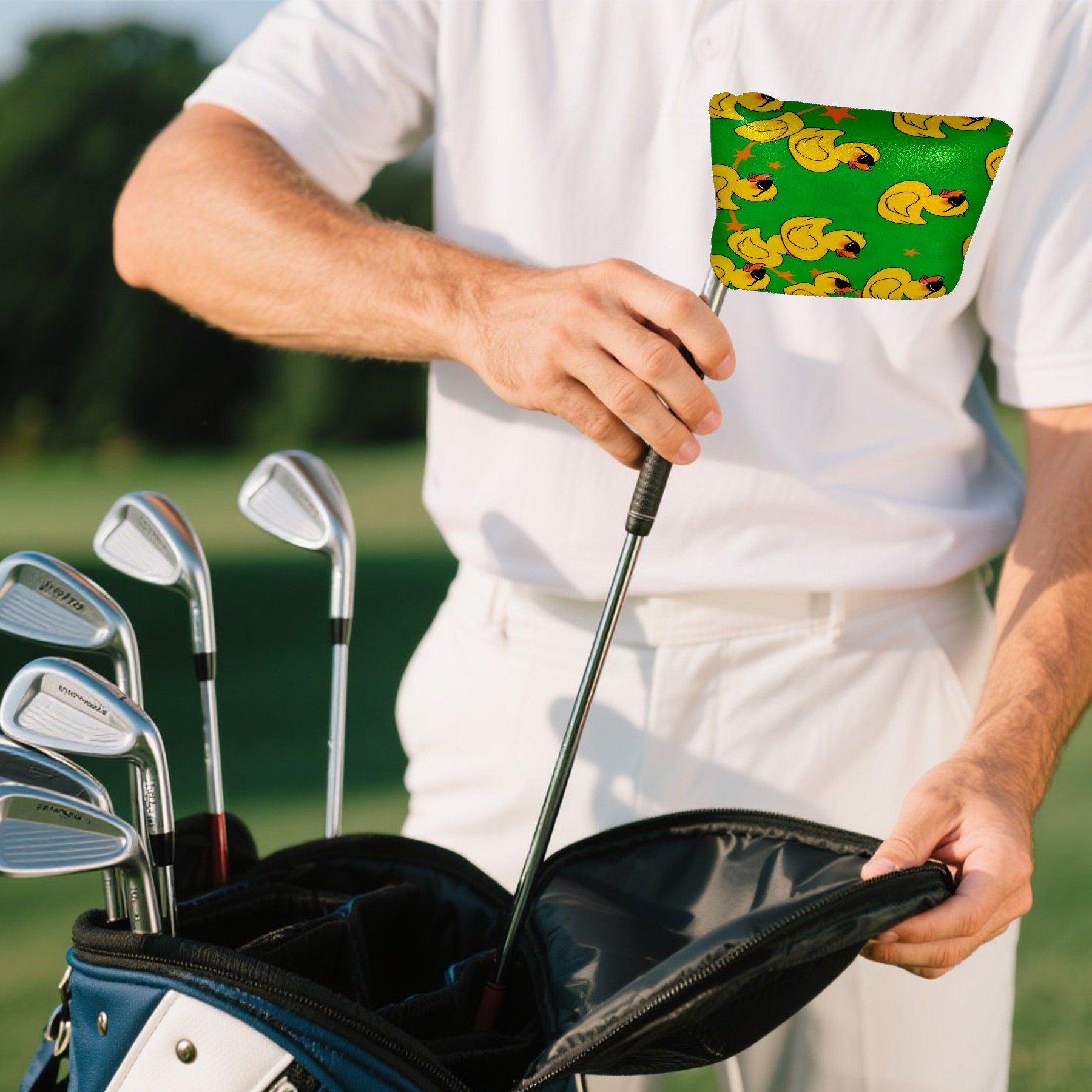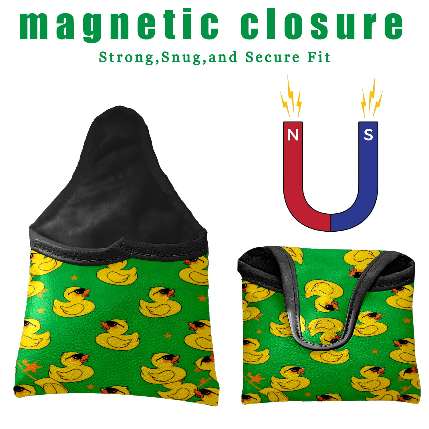 Golf Mallet Putter Cover Premium Leather Golf Putter Head Cover with Magnetic Closure Golf Cover for Men and Women Little Yellow Duck Pattern