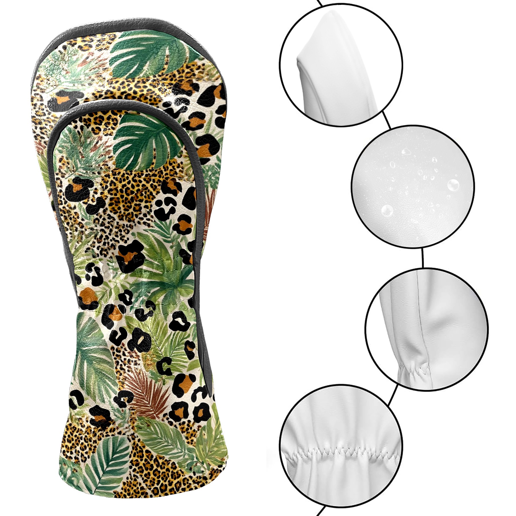 Golf Club Covers, While Palm Tree Premium PU Leather Driver Hybrid Putter Head Covers with Velvet Lining, Waterproof Golf Gifts for Men Women