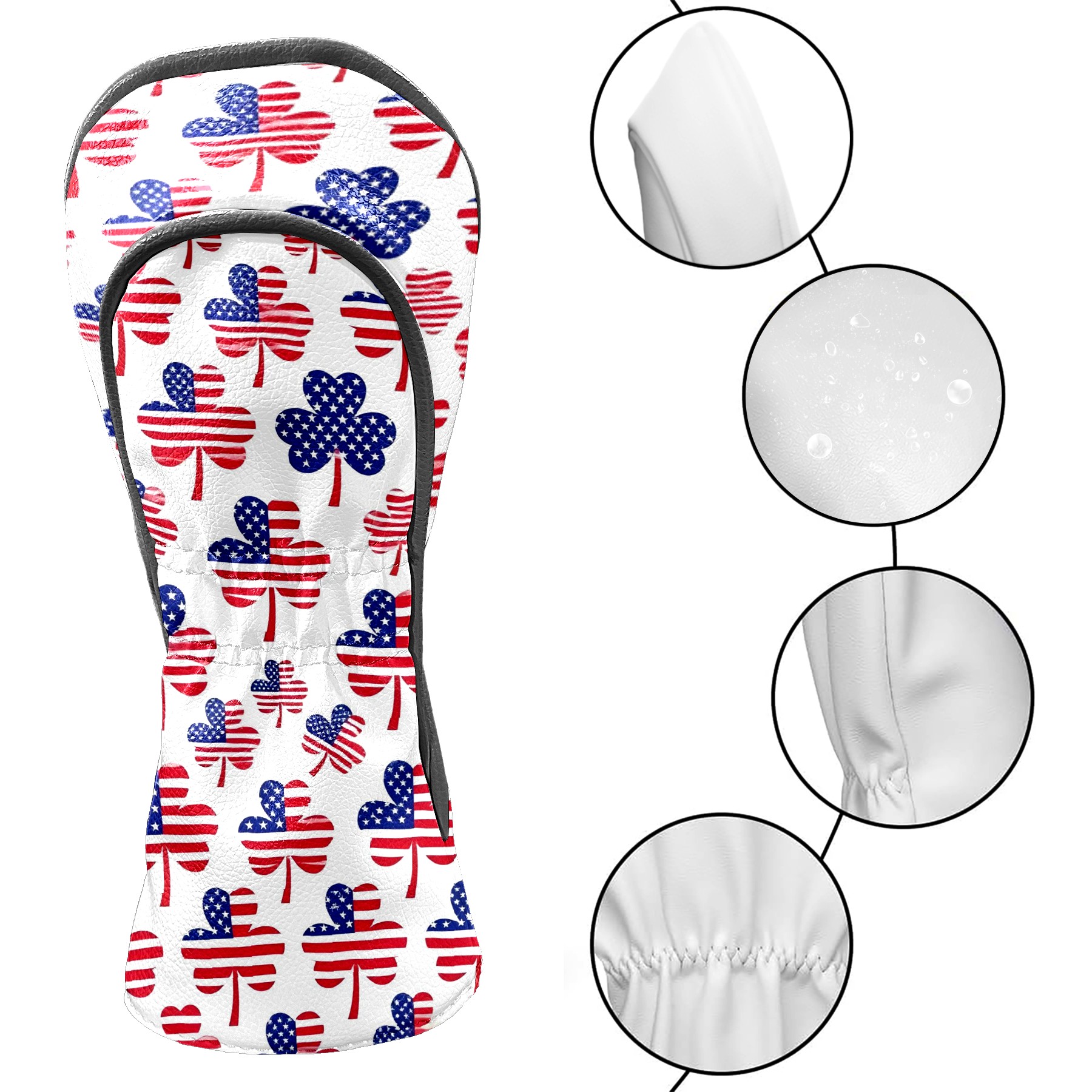 Golf Club Covers, Red Clover Premium PU Leather Driver Hybrid Putter Head Covers with Velvet Lining, Waterproof Golf Gifts for Men Women