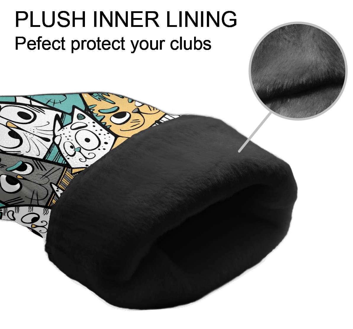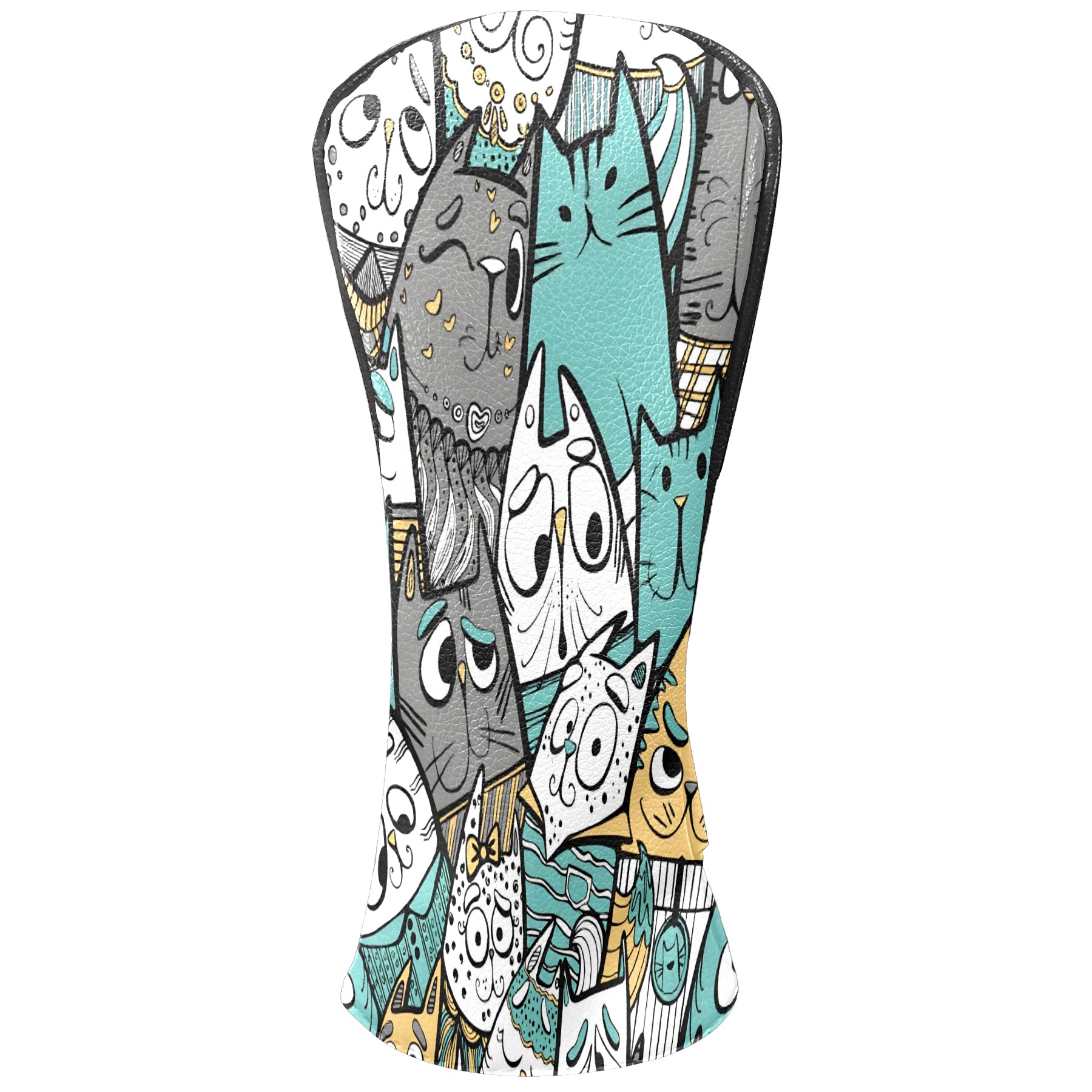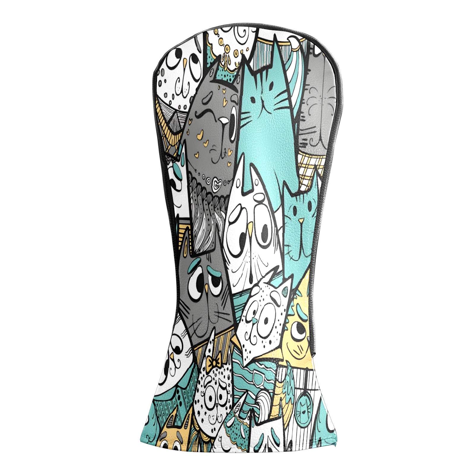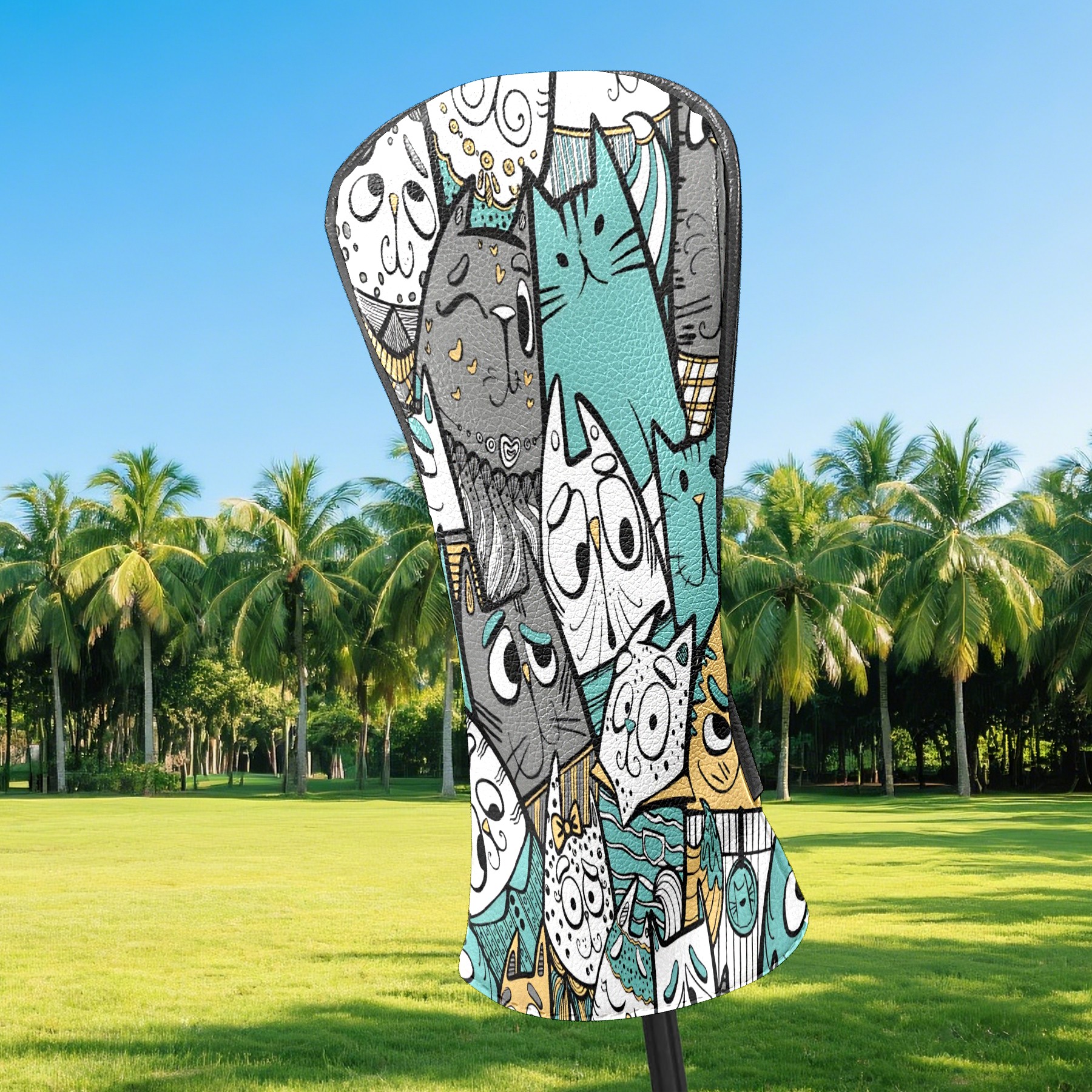 Golf Club Covers, Cat Premium PU Leather Driver Hybrid Putter Head Covers with Velvet Lining, Waterproof Golf Gifts for Men Women