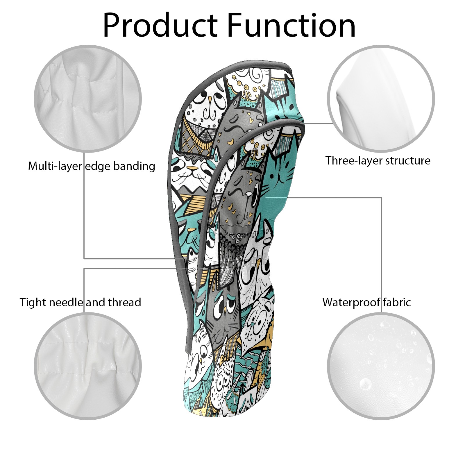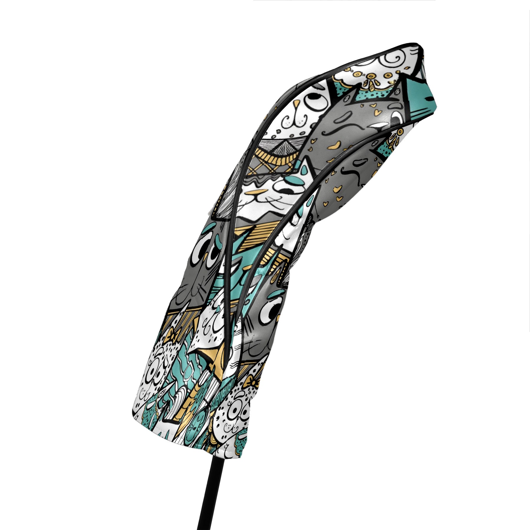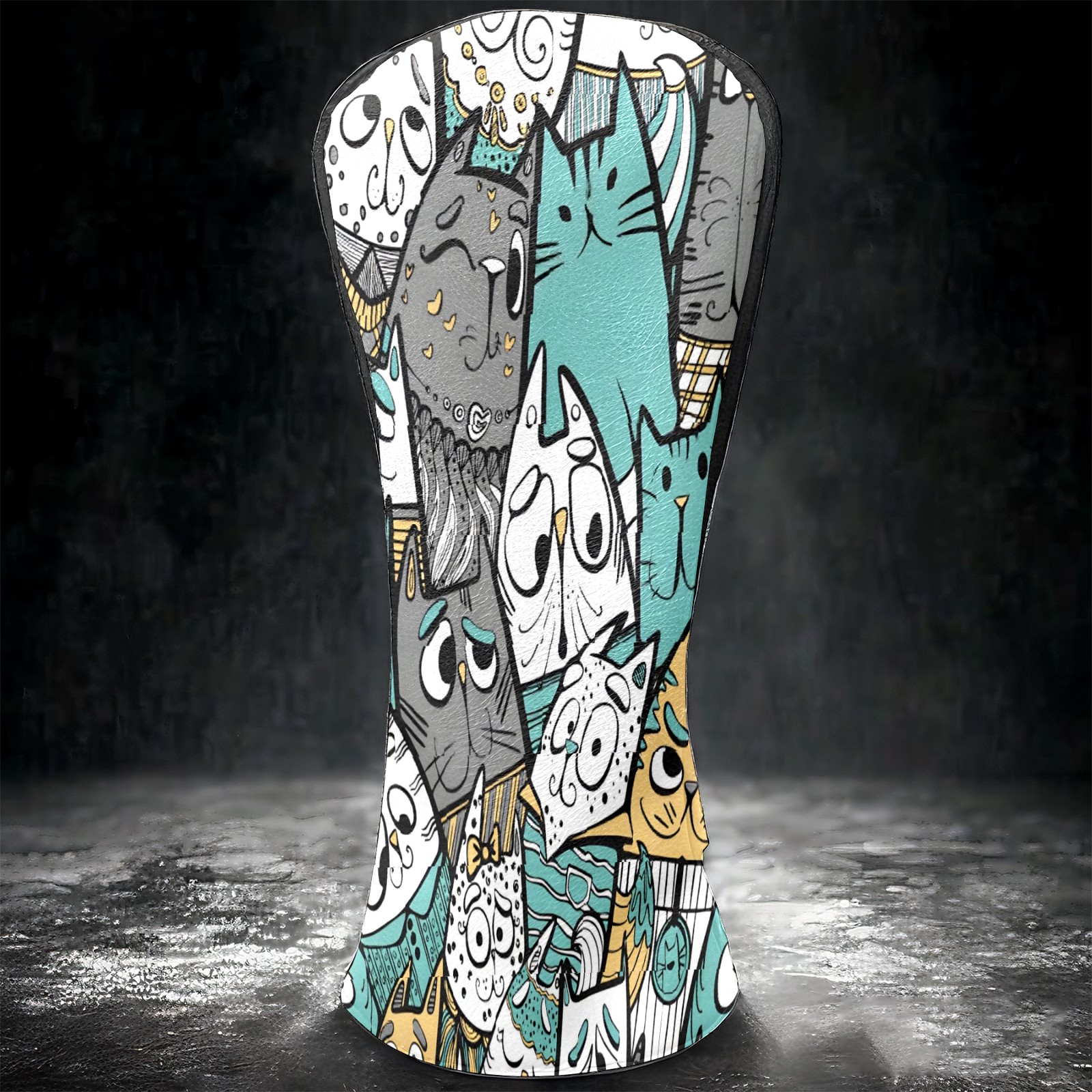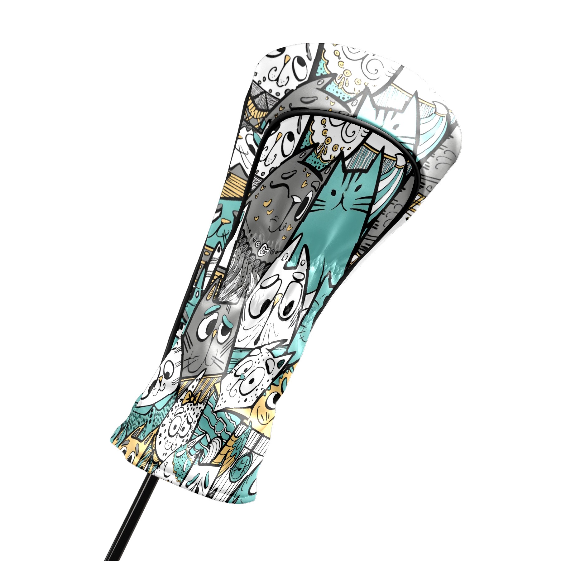 Golf Club Covers, Cat Premium PU Leather Driver Hybrid Putter Head Covers with Velvet Lining, Waterproof Golf Gifts for Men Women