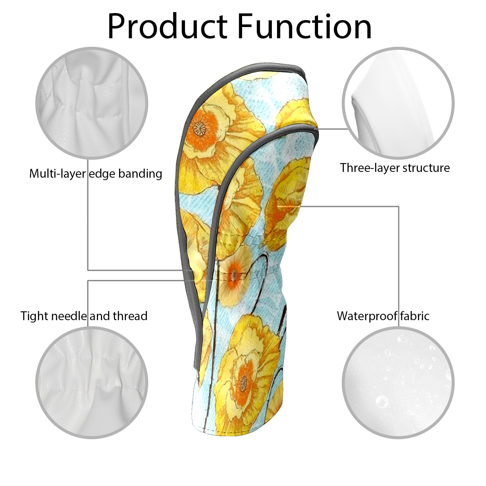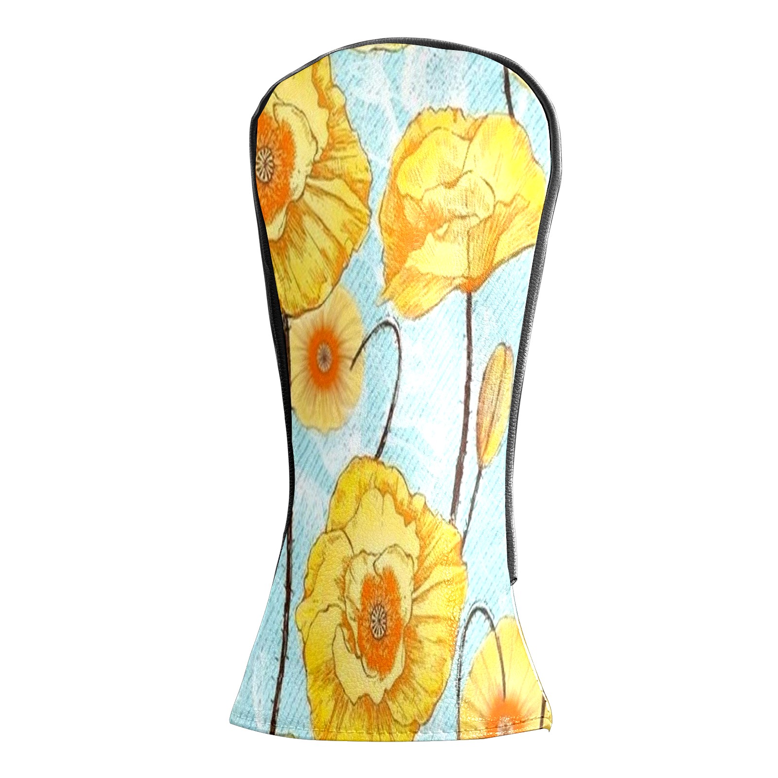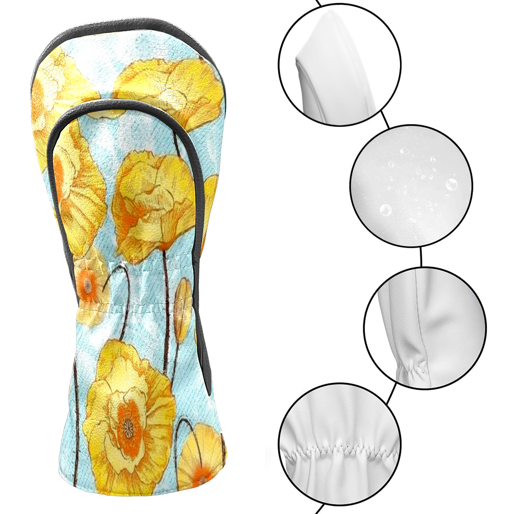 Golf Club Covers, Flower2 Premium PU Leather Driver Hybrid Putter Head Covers with Velvet Lining, Waterproof Golf Gifts for Men Women