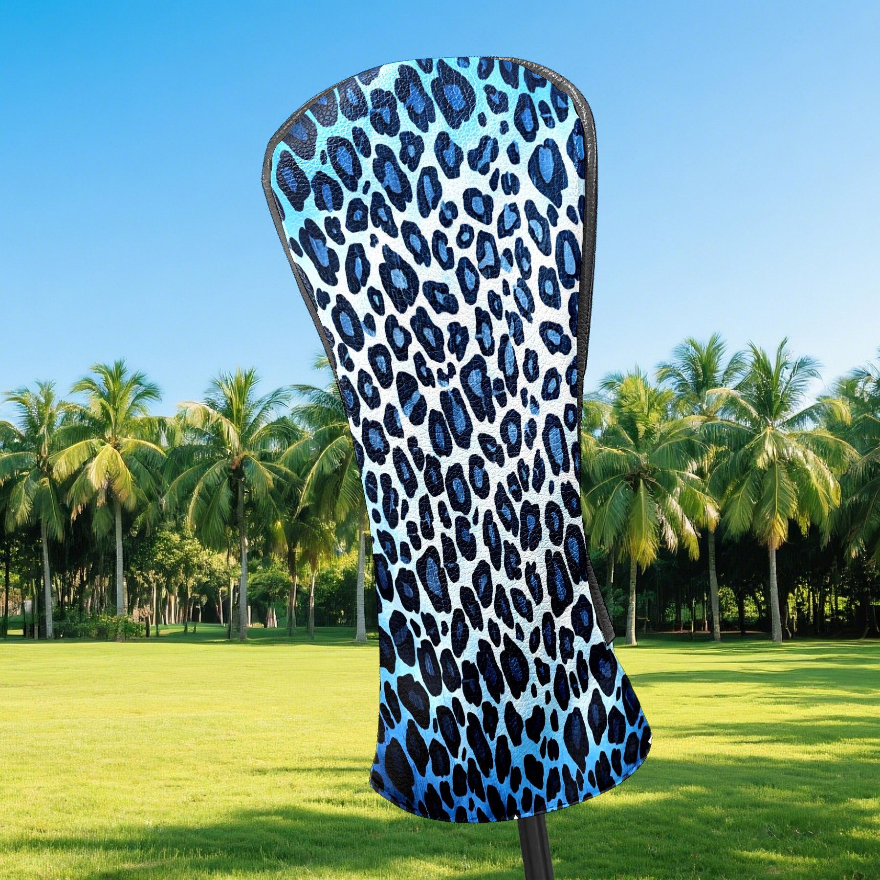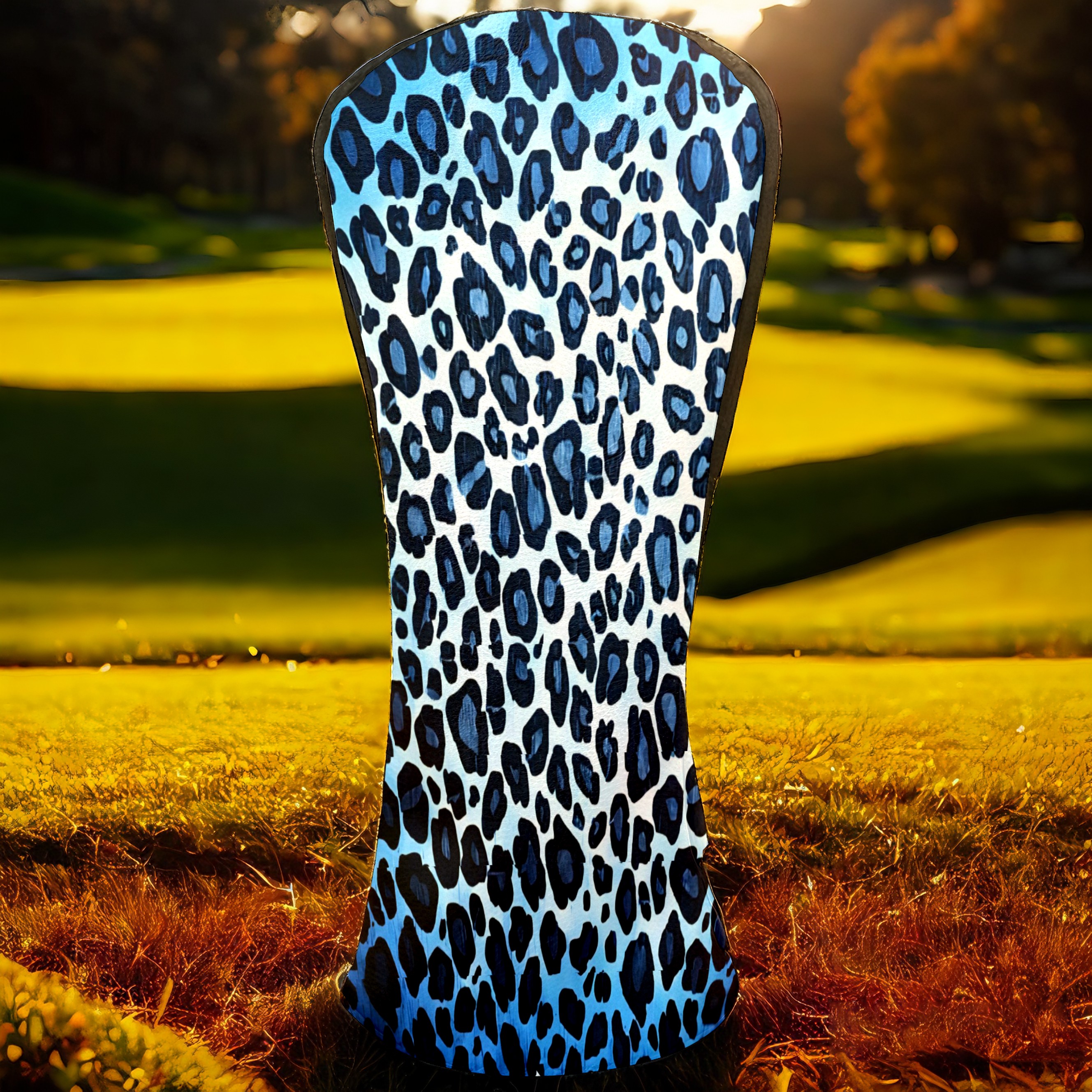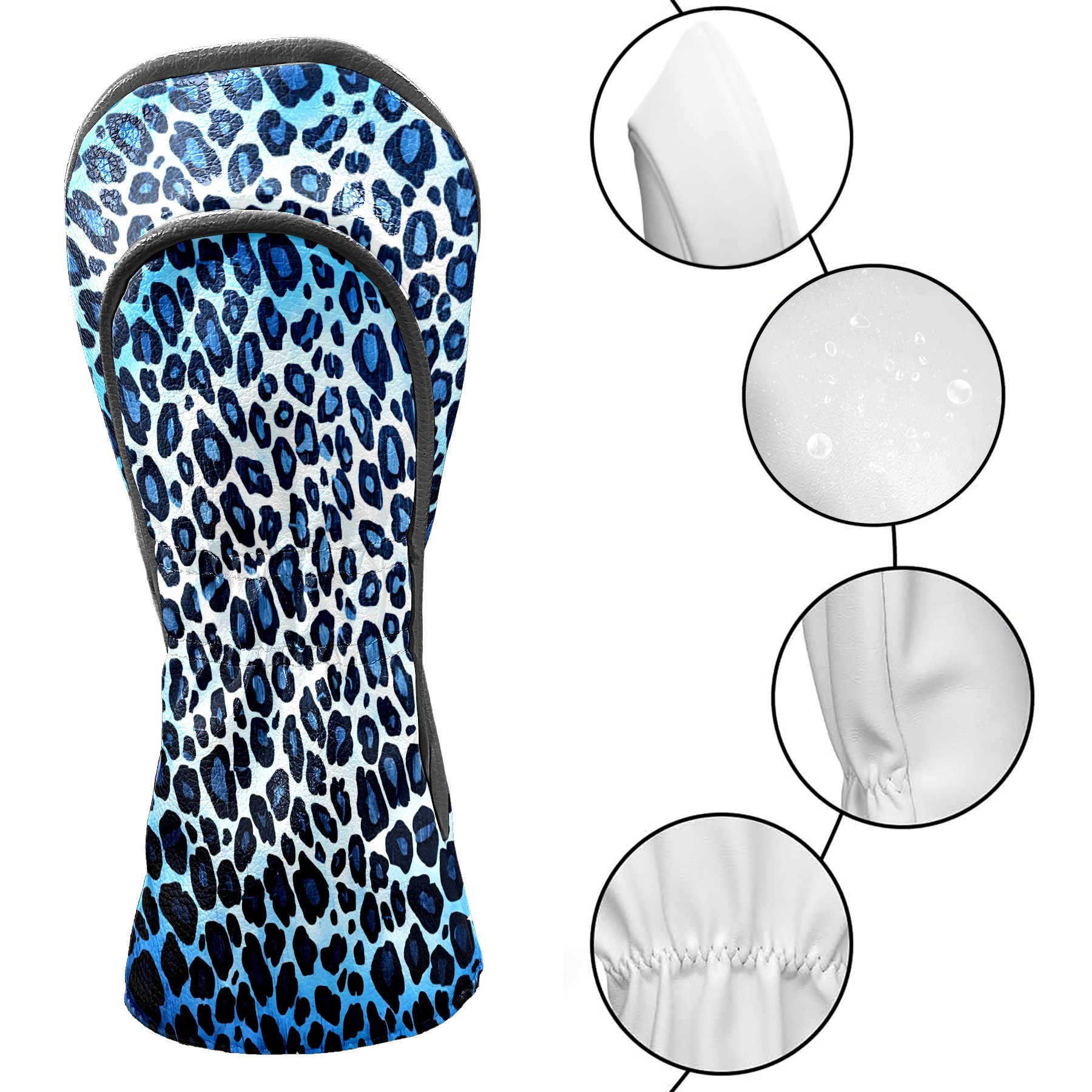 Golf Club Covers, Blue Leopard Print Premium PU Leather Driver Hybrid Putter Head Covers with Velvet Lining, Waterproof Golf Gifts for Men Women